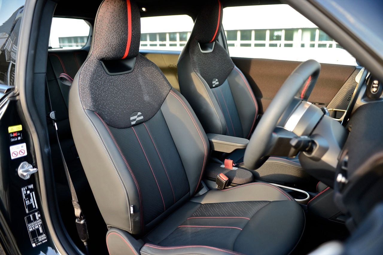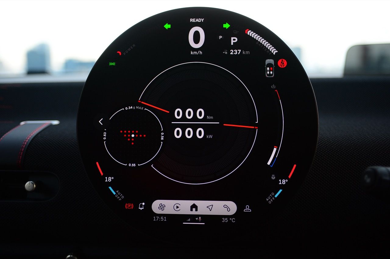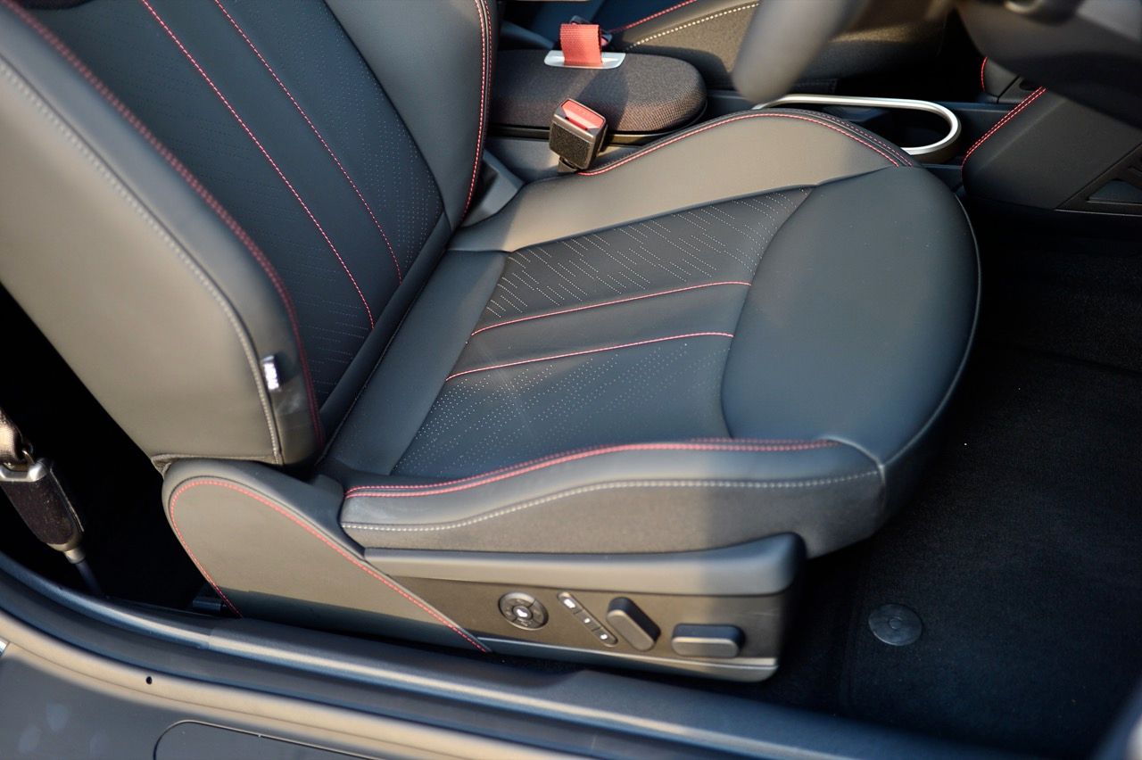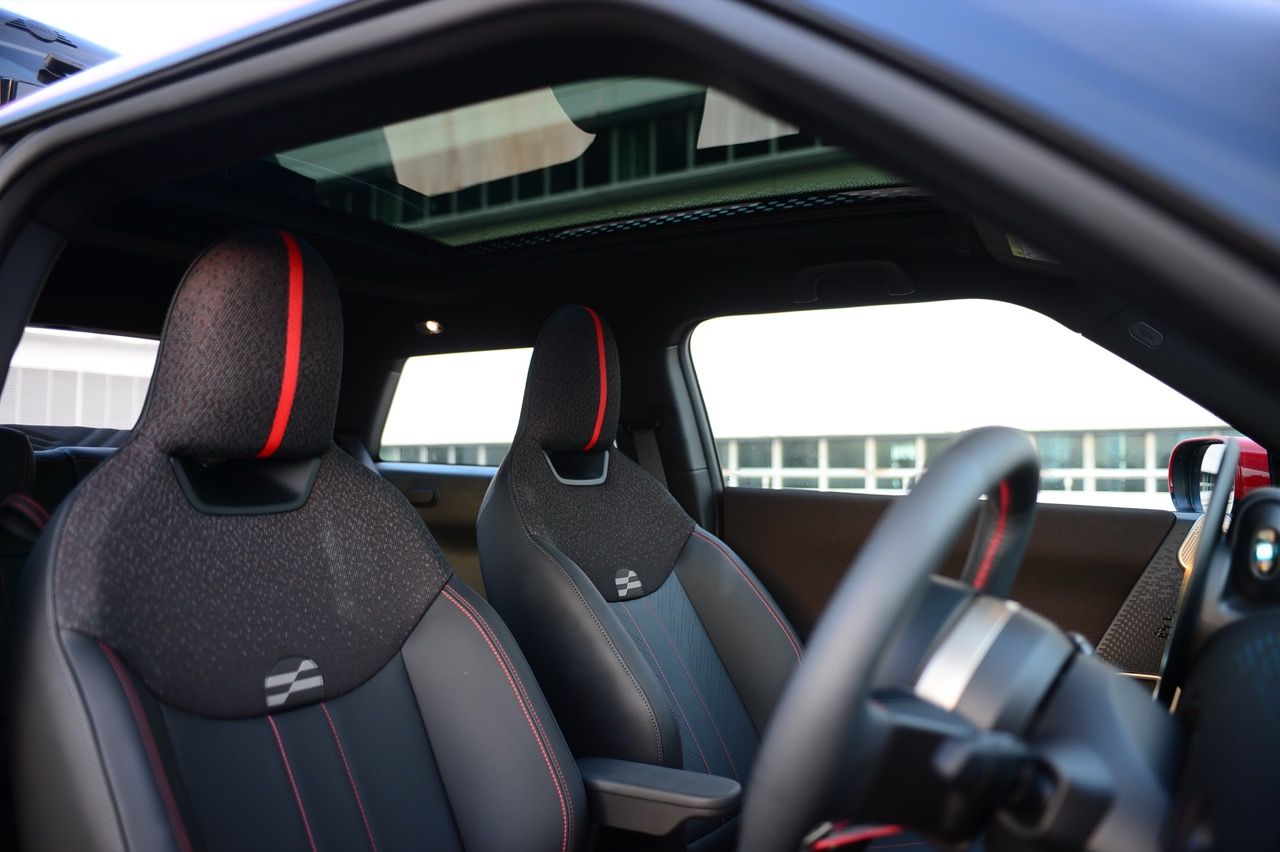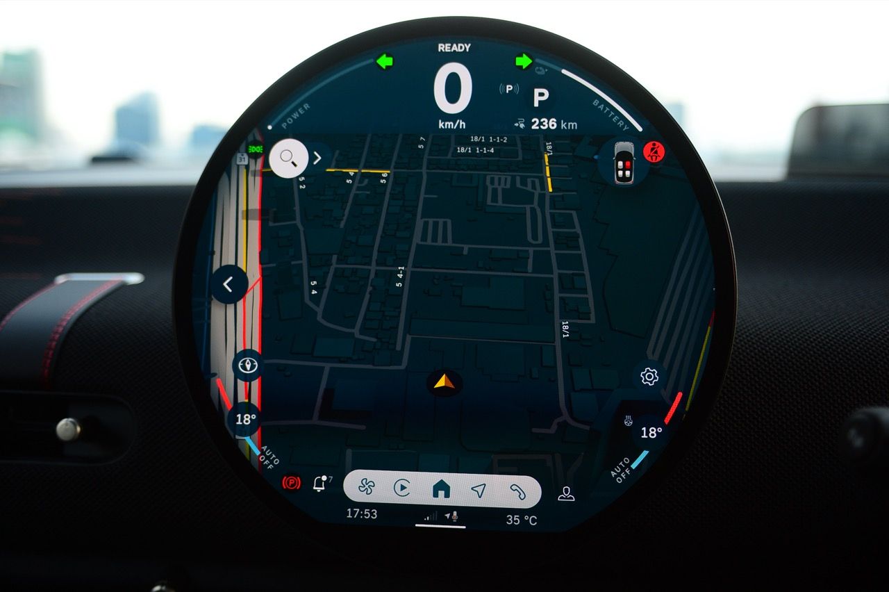 ภายในเบาะนั่งตกแต่งด้วยหนังสังเคราะห์ มีผ้าถักด้วยใยสังเคราะห์ที่เป็นมิตรกับธรรมชาติ แบบเดียวกับที่พบใน Cooper E ตกแต่งบนแผงหน้าปัดและบานประตู หน้าจอ OLED แบบวงกลมขนาด 9.4 นิ้วตรงกลางแผงหน้าปัดซึ่งให้การควบคุมอินโฟเทนเมนต์ ซึ่งก็เหมือนกับสิ่งที่คุณจะได้รับใน Cooper E ซึ่งเราชอบหน้าจอสัมผัสที่ตอบสนองได้ดี แต่เค้าโครงอาจจะทำให้สับสนได้ และเราชอบระบบควบคุมแบบกายภาพสำหรับเครื่องปรับอากาศมากกว่าภายใน มีจอแสดงผลข้อมูลความบันเทิง OLED แบบวงกลมสุดเท่บนแดชบอร์ดแบบเรียบง่ายพร้อมสวิตช์ทางกายภาพเพียงไม่กี่ตัว เบาะนั่งแบบสปอร์ตหุ้มด้วยหนังเทียมพร้อมผ้าทอที่ไหล่ ลวดลายการถักทอแบบเดียวกันยังทอดยาวไปตามความกว้างของแผงหน้าปัดและแผงประตู เพิ่มความน่ารักจัดจ้านด้วยการใช้สีแดงเพิ่มเติมอีกสองสามจุด โดยเฉพาะที่พวงมาลัย ไฟส่องสว่างรอบห้องโดยสารแบบใหม่ที่แผงหลังคาก็ยังทำให้รถดูทันสมัยขึ้นอีกตะหาก