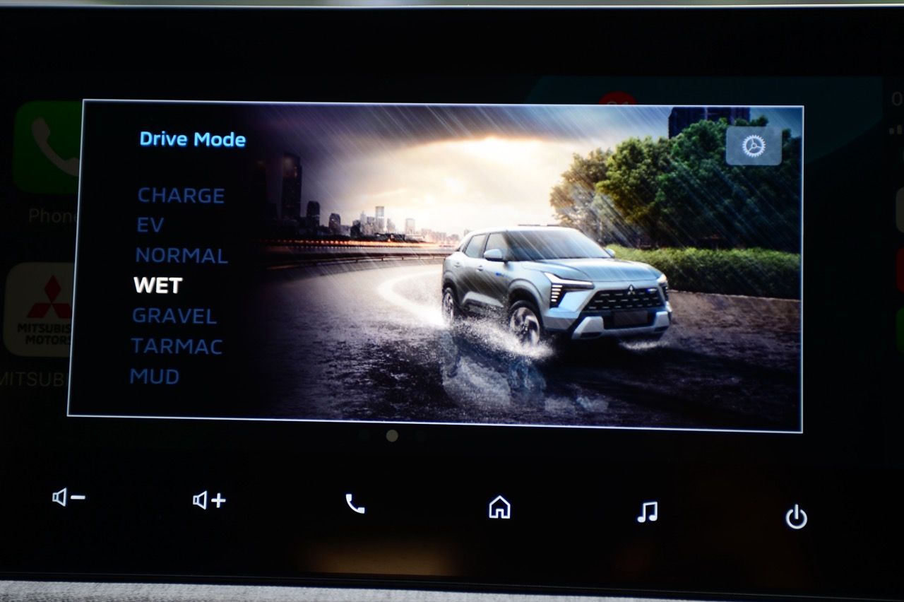 Mitsubishi จูนเครื่องยนต์ใหม่หมด ให้ตอบสนองได้สอดคล้องกับ 7 โหมดขับเคลื่อนหลัก เพื่อส่งถ่ายความเป็นไฮบริดอีโมชัน HEV e:Motion 1.6 Hybrid เครื่องยนต์เบนซินแถวเรียงสี่กระบอกสูบ รหัส 4A92 ความจุ 1.6 ลิตร 1,590 ซีซี. ระบบวาว์ลแปรผัน MIVEC กำลังสูงสุด 107 แรงม้า ที่ 6,000 รอบต่อนาที แรงบิดสูงสุด 134 นิวตันเมตร ที่ 4,500 รอบต่อนาที มอเตอร์ไฟฟ้า กำลัง 116 แรงม้า แรงบิด 255 นิวตันเมตร แบตเตอรี่ Lithium-ion ขนาดเล็กความจุแค่ 1.1 กิโลวัตต์ชั่วโมง เกียร์อัตโนมัติ 2-Speed Transaxale ขับเคลื่อนล้อหน้า โหมดการขับขี่หรือ Drive Mode มีให้เลือกเช่น Normal / Wet / Gravel / Mud / Tarmac ช่วงล่างด้านหน้า แมคเฟอร์สัน สตรัท สปริง โช้คอัพ เหล็กกันโคลง ด้านหลังทอร์ชันบีมคานแข็ง ระบบเบรก ด้านหน้าและ หลังใช้ดิสก์เบรกทั้งสี่ล้อ