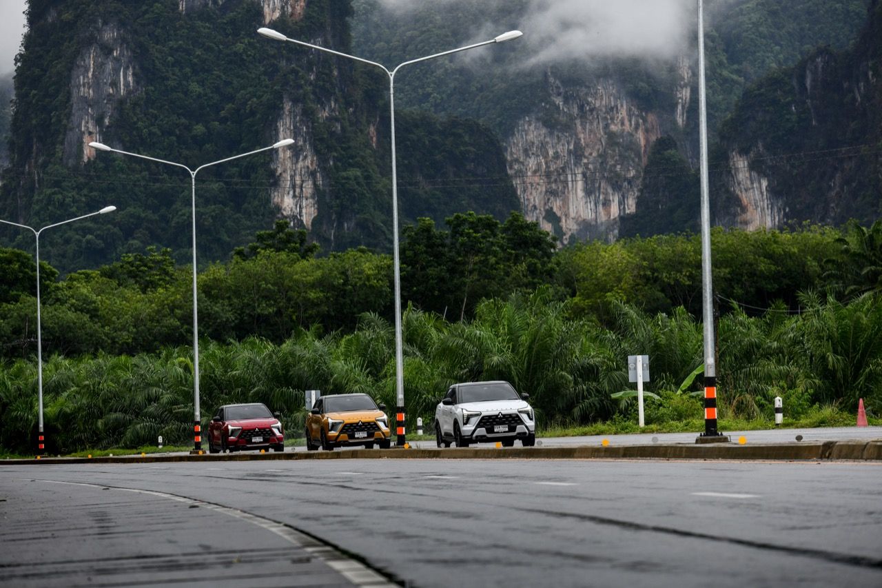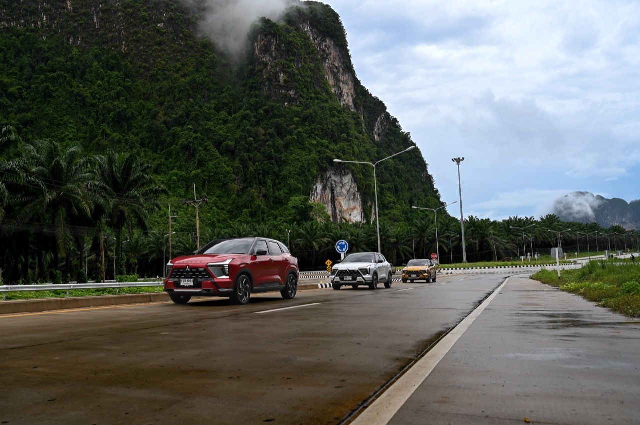 หนึ่งเดือนผ่านไป หลังจากทดสอบครั้งแรกสั้นๆในสนามปทุมธานีสปีดเวย์ Mitsubishi Motor ก็พาสื่อมวลชนสายยานยนต์บินลงใต้ไปยังจังหวัดภูเก็ตเพื่อขับทดสอบ Mitsubishi XForce บนถนนสาธารณะ โดยใช้เส้นทางหลักจากตัวเมืองภูเก็ตมุ่งหน้าไปยังอ่าวนางที่จังหวัดกระบี่ การขับทดสอบรถครอสโอเวอร์ที่กำลังทำตลาดในไทยอย่างเข้มข้นเพราะต้องเจอกับรถยนต์ไฟฟ้าจีนที่มีต้นทุนถูกกว่า XForce มียอดจองนับตั้งแต่เปิดตัวมาจนถึงปัจจุบันอยู่ที่ 3,000 คัน สำหรับรุ่นที่คนจองเยอะที่สุดก็คือ Xforce HEV ULTIMATE X รุ่นท็อปสุด ราคา 1,089,000 บาท ดูเหมือนจะแพง แต่พอเห็นของที่ใส่มาให้และได้ทดลองขับบนถนนปกติ ราคาล้านเดียวพอได้ขับทางไกลผสมกับเส้นทางวิบาก ก็ถือว่าไม่แพงมากนัก เมื่อเทียบกับสิ่งที่จะได้รับหลังจากจ่ายไปล้านนึง โดยเฉพาะโหมดขับเคลื่อนบางโหมดที่สามารถลุยทางวิบากซึ่งเต็มไปด้วยขี้โคลนขี้เลนเละเทะ บนสนามทดสอบที่จำลองสถานการณ์โหดๆหากต้องขับผ่านเส้นทางที่ถูกฝนกระหน่ำจนทำให้เปลี่ยนไปในทางที่เลวร้าย! สภาพเส้นทางแบบนั้นมีอยู่ทั่วไปหมดในช่วงฤดูฝน ไม่เว้นแม้แต่ในเขตชานเมืองที่อาจต้องวิ่งฝ่าน้ำท่วมขังหรือดินโคลนที่ปกคลุมผิวถนน