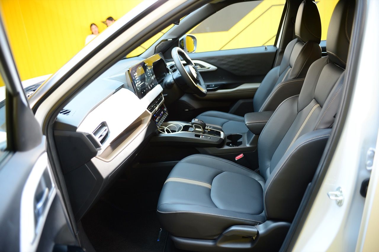 ตำแหน่งภายในห้องโดยสาร สีดำ Black / สีน้ำตาล Mocha วัสดุตกแต่งภายใน White Melange Fabric เบาะหุ้มหนังลดความร้อน Anti-Temperature Rise เบาะนั่งด้านหลัง แยกอิสระ 60 : 40 เบาะนั่งด้านหลัง ปรับเอนได้ 8 ระดับ มาตรวัด Full Digital ขนาด 8 นิ้ว หน้าจอกลาง Touchscreen ขนาด 12.3 นิ้ว รองรับ Apple CarPlay / Android Auto แบบไร้สาย