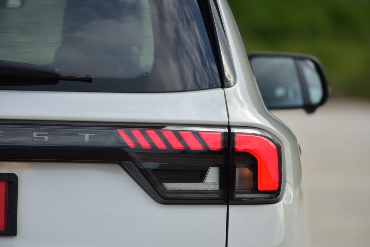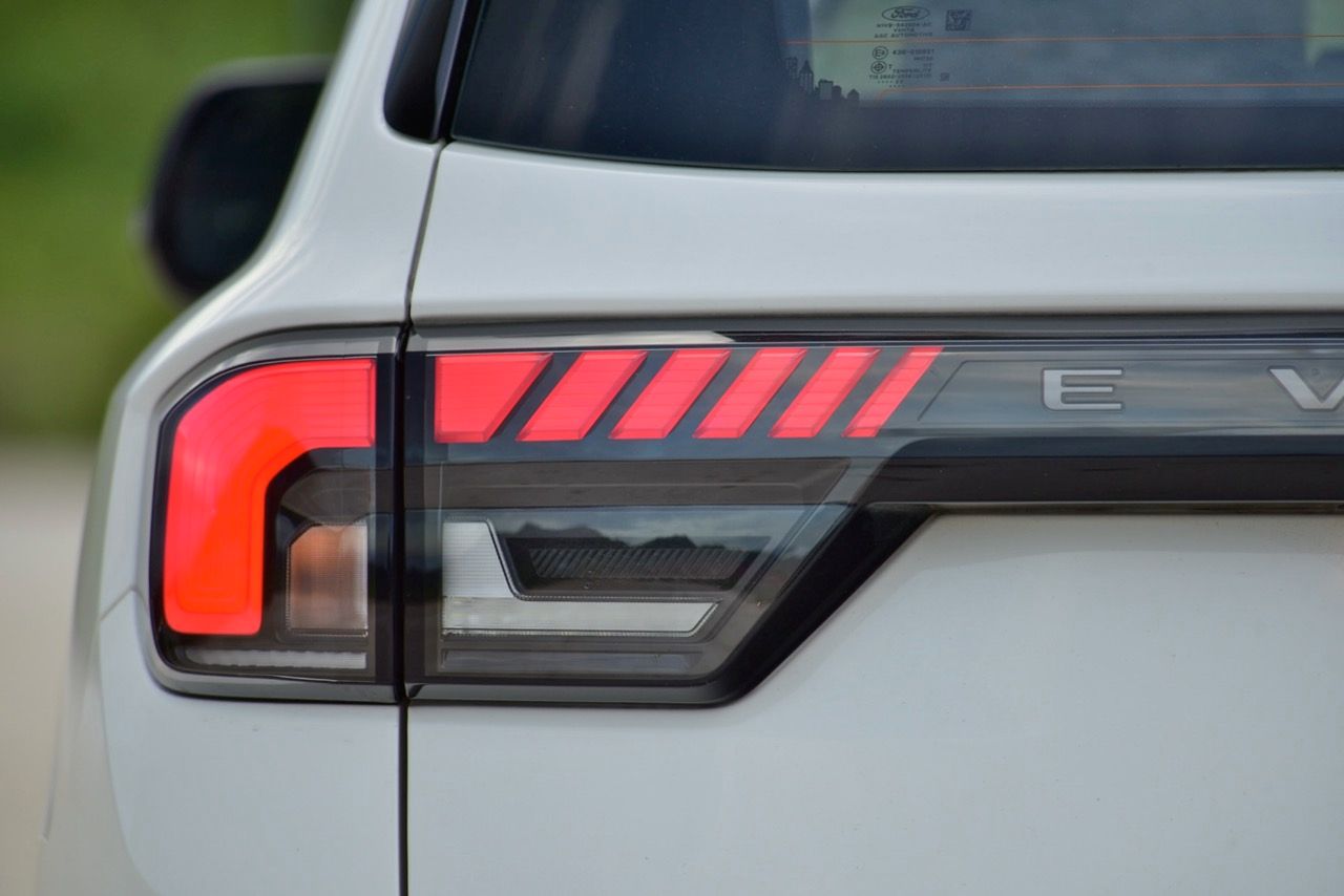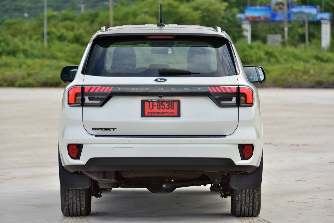 ระบบเปิด-ปิดฝาท้ายไฟฟ้า ไฟท้ายเชื่อมต่อกันทั้งซ้ายและขวาด้วยชิ้นงานพลาสติกสีดำกับตัวอักษร Everest ไฟท้ายทรงยาวหลอด LED เข้ากับสัดส่วนบั้นท้ายจากการออกแบบ เชื่อมโยงมุมมองส่วนท้ายให้มีความลงตัว ไฟท้ายของ Everest Sport ใช้หลอดไฟแบบผสม ซึ่งมีทั้งหลอดไฟท้ายแบบ LED และหลอดไฟแบบธรรมดาอยู่ภายใน ขอบด้านบนของกันชนหลัง มีพลาสติกกันกระแทกสีดำคอยป้องกันริ้วรอย เมื่อต้องยกสัมภาระเข้าออกจากห้องเก็บของส่วนท้าย กันชนหลังมีการดีไซน์แบบสองชิ้นเหมือนกันกับกันชนหน้า พร้อมพลาสติกกันกระแทกสีดำ และแผ่นพลาสติกสะท้อนแสงมัลติรีเฟคเตอร์สำหรับความปลอดภัยเมื่อจอดรถในที่มืด กล้องมองหลังติดมาให้พร้อมติดตั้งเซนเซอร์ถอยหลังแจ้งเตือนด้วยสัญญาณเสียงเมื่อถอยเข้าไปใกล้กับวัตถุกีดขวาง ด้านบนของฝาท้ายบริเวณกึ่งกลางกระจกบานฝาท้ายเป็นที่อยู่ของไฟเบรกดวงที่ 3