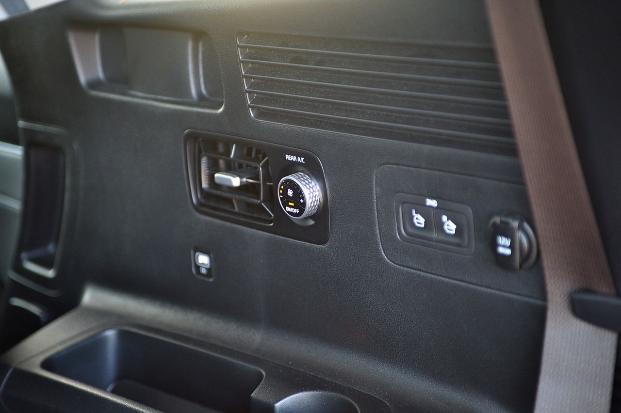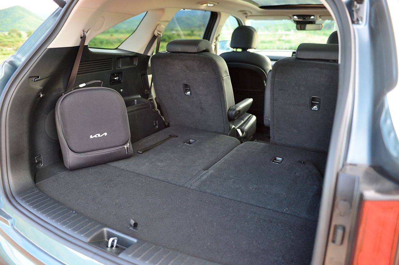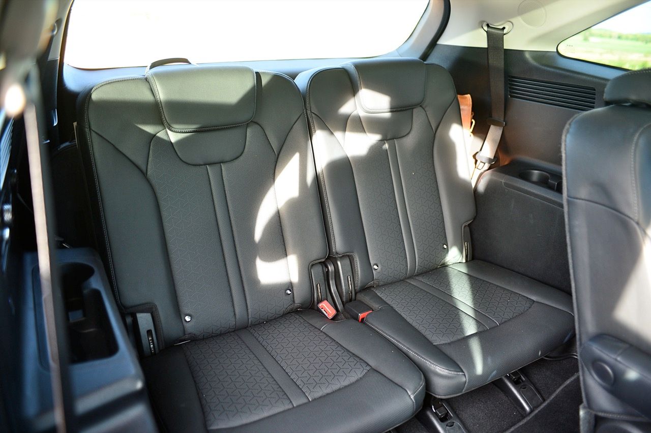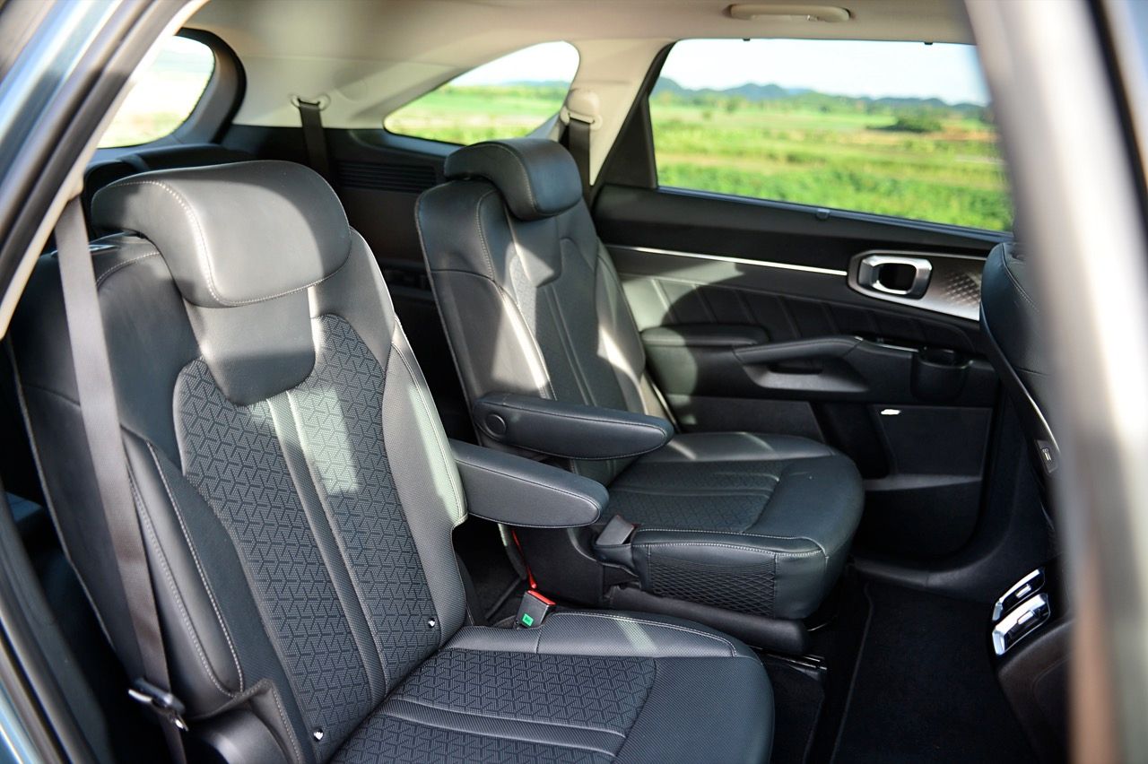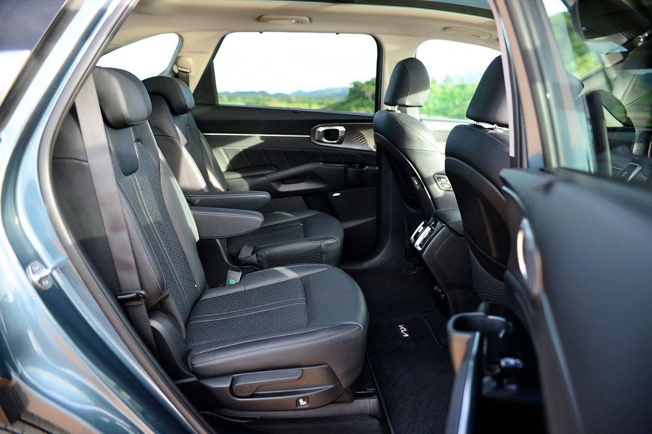 เบาะผู้โดยสารแถวกลางมีที่วางแขนตรงกลางแบบพับได้ พร้อมที่วางแก้วน้ำเพิ่มเติมบนแผงประตู ที่เก็บของเพิ่มเติม แถวสองไม่มีระบบปรับอากาศ แต่มีช่องระบายอากาศแบบปรับทิศทางได้ จุดยึดเบาะนั่งเด็ก ISOFIX ที่เบาะนั่งริมหน้าต่าง มีจุดยึดสายรัดด้านบนอีกสามจุดด้านหลัง เบาะแถวสามแค่พอใช้ได้ แต่อาจไม่มีพื้นที่มากเท่าที่ควร (ถ้าต้องการพื้นที่เยอะๆ Kia Carnival ตอบโจทย์มากกว่า เบาะหลังแถวสาม เหมาะสำหรับเด็กเล็กหรือเบาะนั่งฉุกเฉิน เบาะแถวสองสามารถพับเก็บแบบ One-Touch ได้ เพื่อเปิดพื้นที่ เข้า-ออก จากเบาะแถวสาม