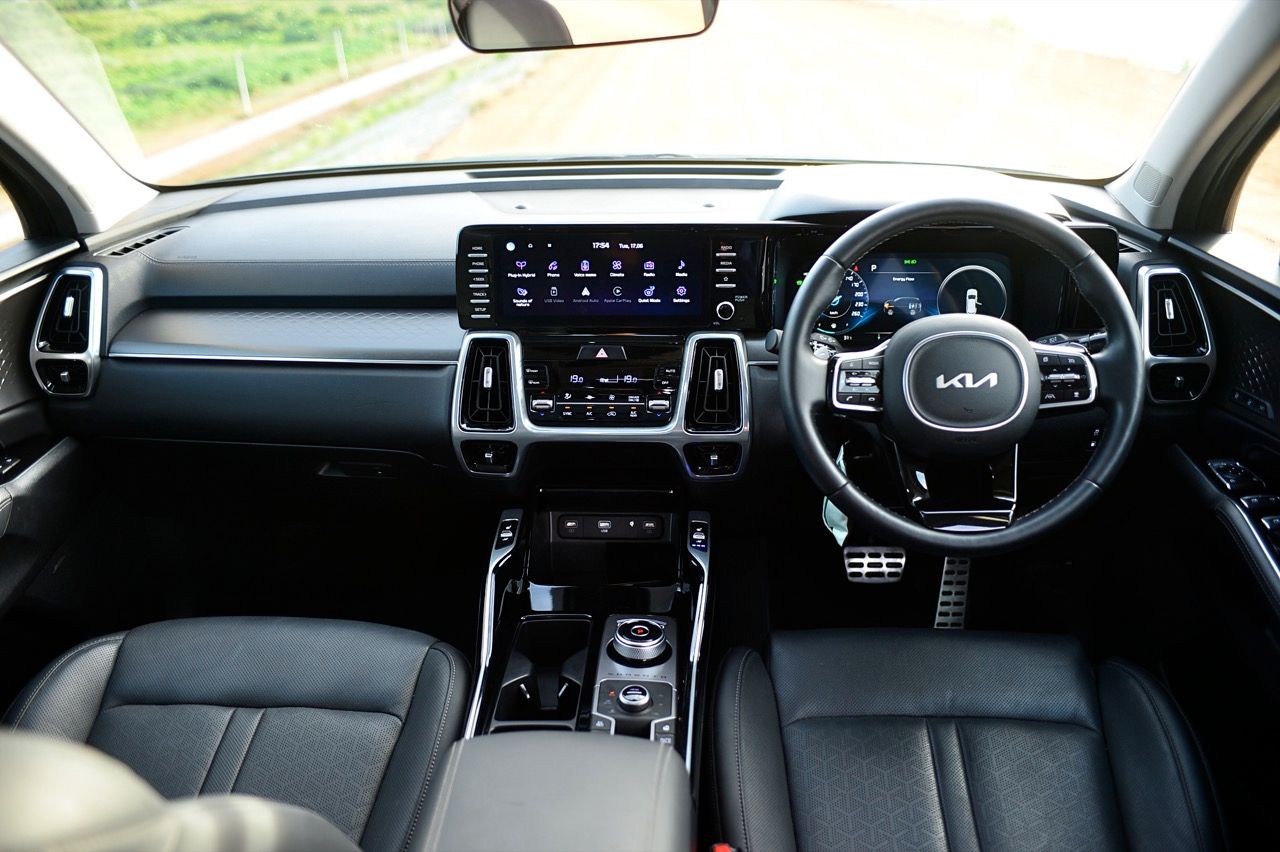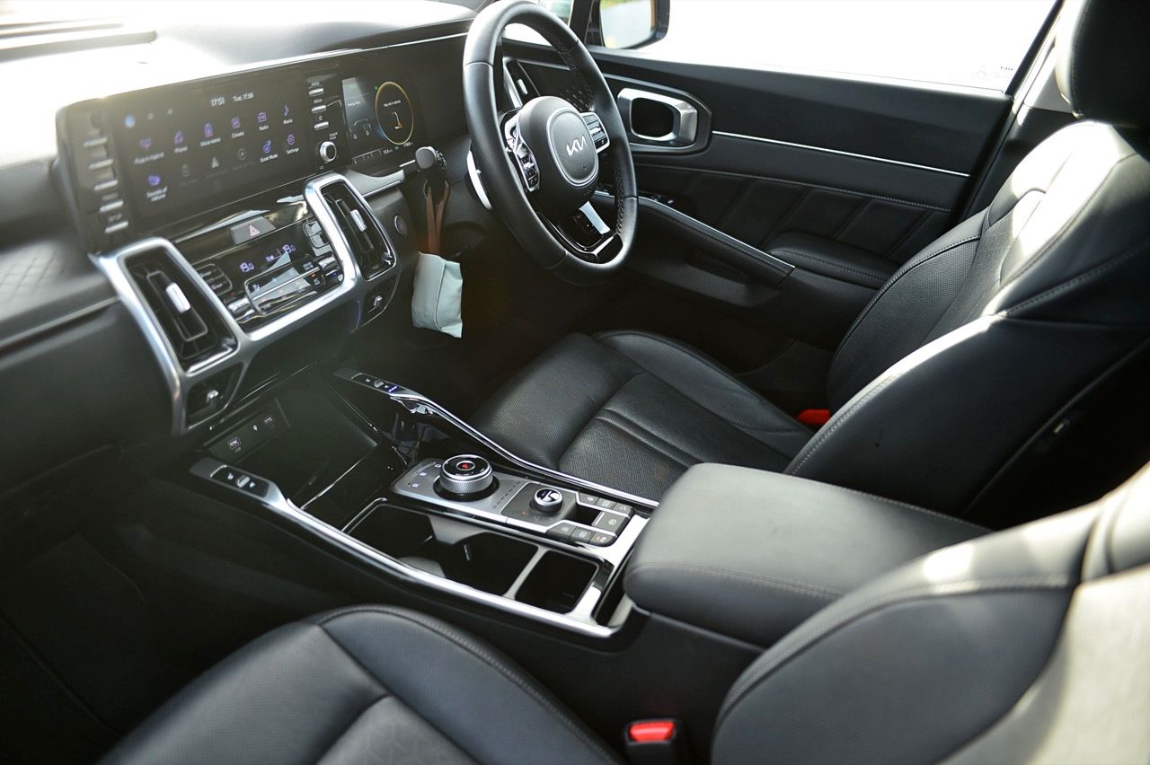 KIA Sorento PHEV ที่ผมขับทดสอบ (ราคาเริ่มต้น 2 ล้าน) มีไฟท้าย LED กระจกมองข้างปรับไฟฟ้าพร้อมระบบทำความร้อนและไฟเลี้ยว LED เบาะนั่งผู้โดยสารปรับไฟฟ้า 10 ทิศทาง, เบาะนั่งคนขับปรับไฟฟ้า 14 ทิศทาง, แผ่นกันรอยประตูอะลูมิเนียมและแป้นเหยียบแบบสปอร์ต, เบาะหนังลายนูนแบบเจาะรู, เบาะนั่งแถวที่สองพร้อมระบบทำความร้อน/เย็น, พวงมาลัยหุ้มหนัง, ไฟ LED ภายในห้องโดยสาร, ตกแต่งภายในด้วยวัสดุโลหะ, ซันรูฟแบบพาโนรามาพร้อมม่านบังแดดไฟฟ้า, ม่านบังแดดหน้าต่างแถวที่สอง และเบาะนั่งคู่หน้าแบบมีช่องระบายอากาศ มาตรวัดดิจิทัล ระบบตรวจจับจุดบอดที่ใช้กล้องรุ่นใหม่ ซันรูฟแบบพาโนรามา