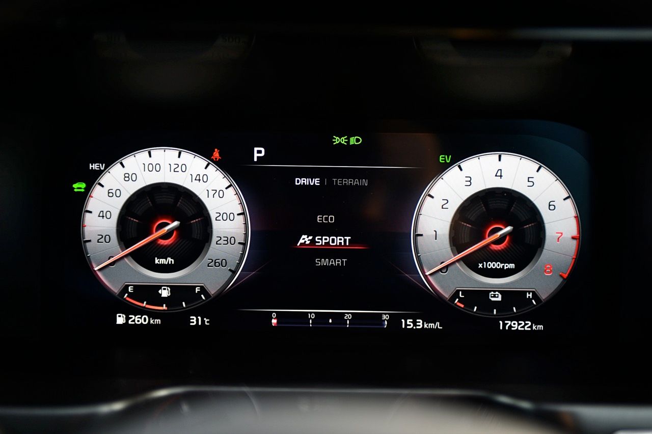 สมรรถนะของ KIA Sorento PHEV โหมด Sport และ Eco จะแตกต่างกันอย่างชัดเจน รวมถึงการใช้พลังไฟจากแบตเตอรี่หมดเร็วแน่ๆ หากเพลินในโหมดสูงสุด ขณะที่โหมด Smart ให้ความสมดุลระหว่างสมรรถนะของทั้งมอเตอร์และเครื่องยนต์ หรือเลือกใช้โหมด EV อย่างเดียวได้จนกว่าแบตเตอรี่จะหมดที่ระยะทางประมาณ 50 กิโลเมตร หรือใช้โหมดผสมผสานไฮบริดเพื่อประหยัดเชื้อเพลิง ข้อดีอย่างหนึ่งของ Sorento PHEV เหนือคู่แข่งคือ มันใช้ระบบส่งกำลังแบบเกียร์อัตโนมัติ 6 สปีด แทนที่จะเป็นระบบเกียร์ CVT ที่ออกแนวย้วยๆ น่ารำคาญ เกียร์ 6 สปีด เรียงอัตราทดมาให้ขับขี่ได้อย่างนุ่มนวล การควบคุมรถไม่ว่าจะเป็นในเมือง หรือบนทางหลวงข้ามจังหวัดเมื่อถนนเต็มไปด้วยโค้ง ถือว่าทำออกมาได้ดีสำหรับรถยนต์ขนาดใหญ่น้ำหนักเฉียดๆ 2 ตัน