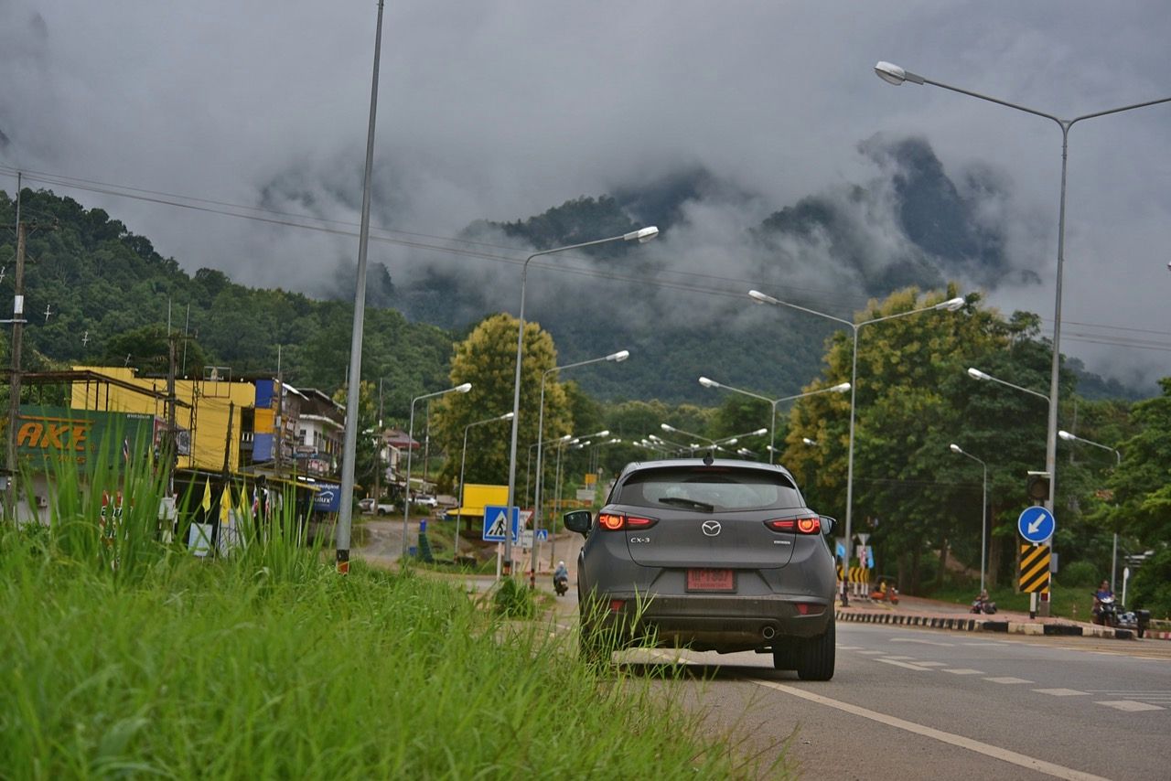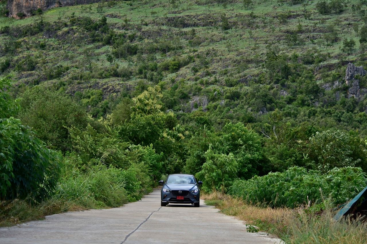 ขับทางไกลจากกรุงเทพมหานครไปยังอำเภอทองผาภูมิ ระบบส่งกำลังหรือเกียร์ถือเป็นหัวใจหลักในการถ่ายเทแรงบิดลงไปยังเพลาขับเคลื่อน เกียร์ที่ใช้ใน Mazda CX-3 จากเทคโนโลยี SKYACTIV Drive ของ Mazda ด้วยเกียร์อัตโนมัติแบบ 6 สปีด มีการนำเอาจุดเด่นของเกียร์อัตโนมัติแบบทอร์คคอนเวอร์เตอร์มาปรับปรุง เพื่อทำให้เกียร์มีการตัดต่อที่นุ่มนวล กระชับและไหลลื่นว่องไวเทียบเคียงกับเกียร์อัตโนมัติแบบทวินคลัตช์ และความนวลในการเปลี่ยนเกียร์คล้ายกับเกียร์อัตโนมัติแบบ CVT ชุดเกียร์ออโต้ 6 สปีด ทำงานเชื่อมต่อกับระบบประหยัดพลังงาน i-ELOOP ระบบจะดับเครื่องยนต์เมื่อจอดรอสัญญาณไฟ และสั่งให้เครื่องยนต์สตาร์ตอย่างรวดเร็วอีกครั้งใน 0.35 วินาที ในเครื่อง SKYACTIV-G ระบบ i-ELOOP หรือ Auto-start/stop แตกต่างจากรถยนต์ทั่วไปที่มีและใช้ระบบนี้ ตัวคาปาซิเตอร์ถูกติดตั้งอยู่ในเครื่องเป็นอุปกรณ์เสริมการทำงานของแบตเตอรี่ในการเก็บกระแสไฟฟ้าและป้อนกระแสไฟฟ้าให้กับระบบไฟทั้งหมดของตัวรถเมื่อ i-ELOOP ทำงาน การกักเก็บกระแสไฟฟ้าเกิดขึ้นในขั้นตอนของการเบรก ชะลอความเร็วโดยชุดไดชาร์จจะผลิตกระแสไฟป้อนกลับคืนสู่ระบบเฉพาะสภาพการขับขี่แบบในเมือง ส่วนสภาพการขับขี่ปกติ ไดชาร์จจะลดการทำงานลงเพื่อลดภารกรรมให้กับเครื่องยนต์ i-ELOOP ทำให้ประหยัดเชื้อเพลิง