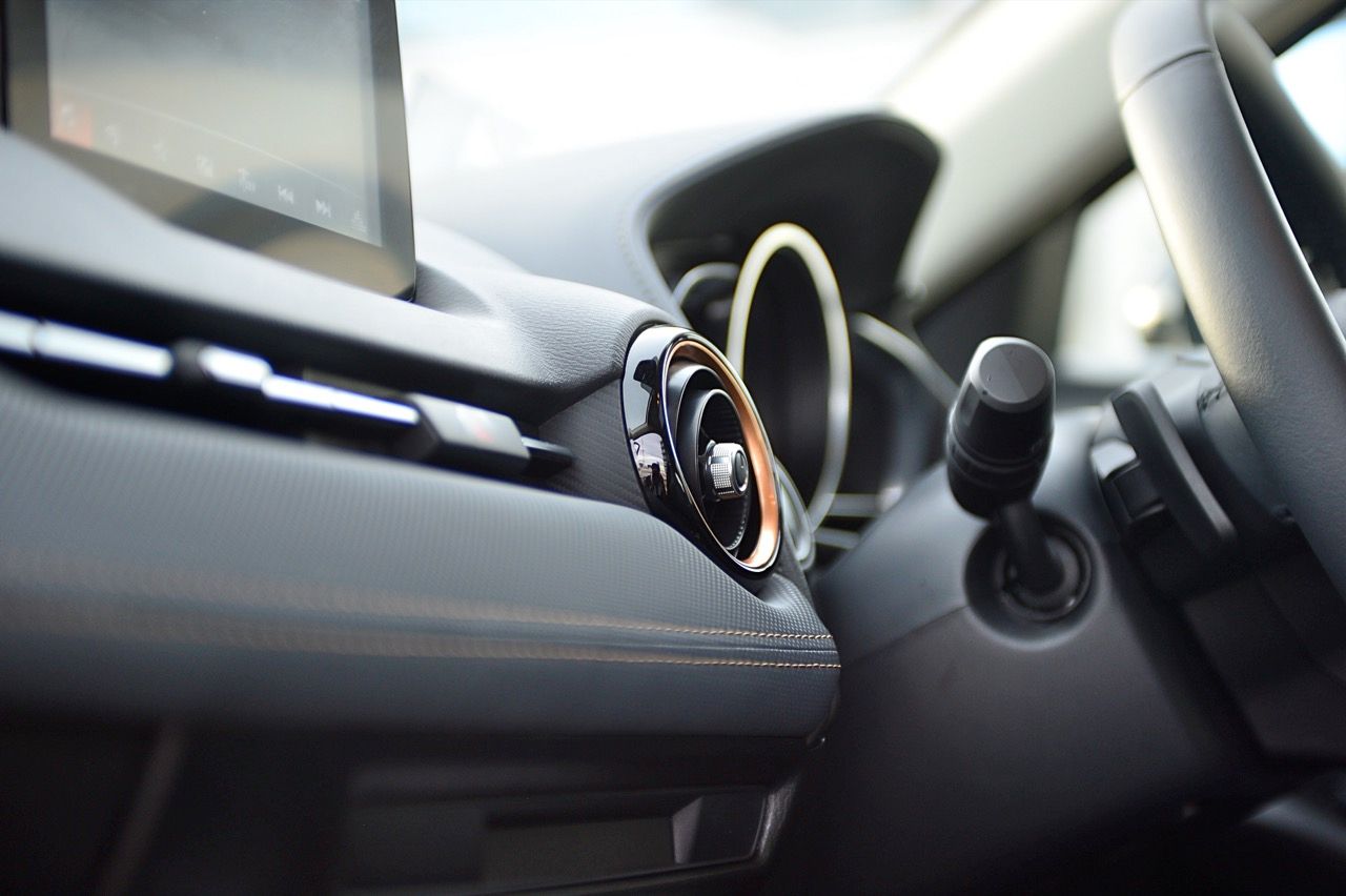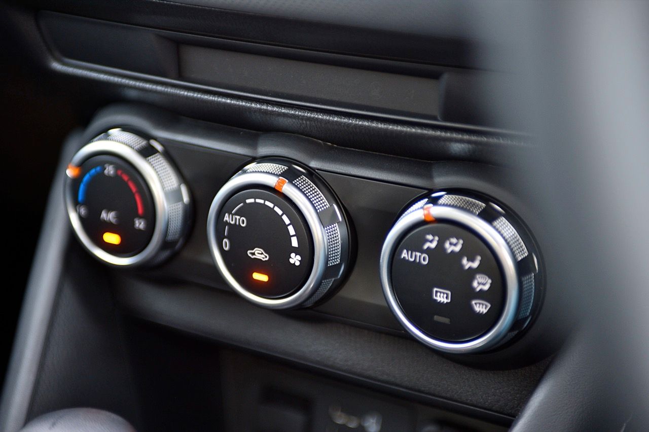 พวงมาลัยยังมีสวิตช์รับ หรือวางโทรศัพท์ไร้สาย ปุ่มควบคุมเครื่องเสียงและสวิตช์ควบคุมความเร็วอัตโนมัติ Adaptive Cruise Control ซุ้มเกียร์ล้อมกรอบด้วยงานพลาสติกสีเงิน ส่วนคันเกียร์หุ้มด้วยหนังแท้ พร้อมหัวเกียร์แบบครึ่งหนังครึ่งโลหะสีเงิน เกียร์ของ Mazda CX-3 เป็นเกียร์อัตโนมัติ 6 สปีดแบบทอร์คคอนเวอร์เตอร์ สามารถตบคันเกียร์ไปที่ด้านขวาสำหรับการชิฟเกียร์ด้วยตัวเองผ่านการโยกคันเกียร์ หรือกดเปลี่ยนตำแหน่งเกียร์ที่แป้น Paddle Shift ถัดจากงานซุ้มเกียร์ที่ลงตัว เป็นที่อยู่ของสวิตช์ควบคุมจอภาพแสดงผล ซึ่งใช้ควบคุมปรับตั้งค่าต่างๆ ของตัวรถ รวมถึงปุ่มควบคุมระดับเสียงของลำโพง Bose ระบบเครื่องเสียงพร้อมลำโพงคุณภาพสูง 7 ตำแหน่ง สวิตช์ควบคุมอุณหภูมิแบบสามปุ่มหมุน ออกแบบให้ใช้งานง่าย ด้วยรูปแบบกับผิวสัมผัสที่ดี สวิตช์ปรับอุณหภูมิทรงกลมสามวง เข้ากับแผงคอนโซลจากงานดีไซน์ที่ลงตัว