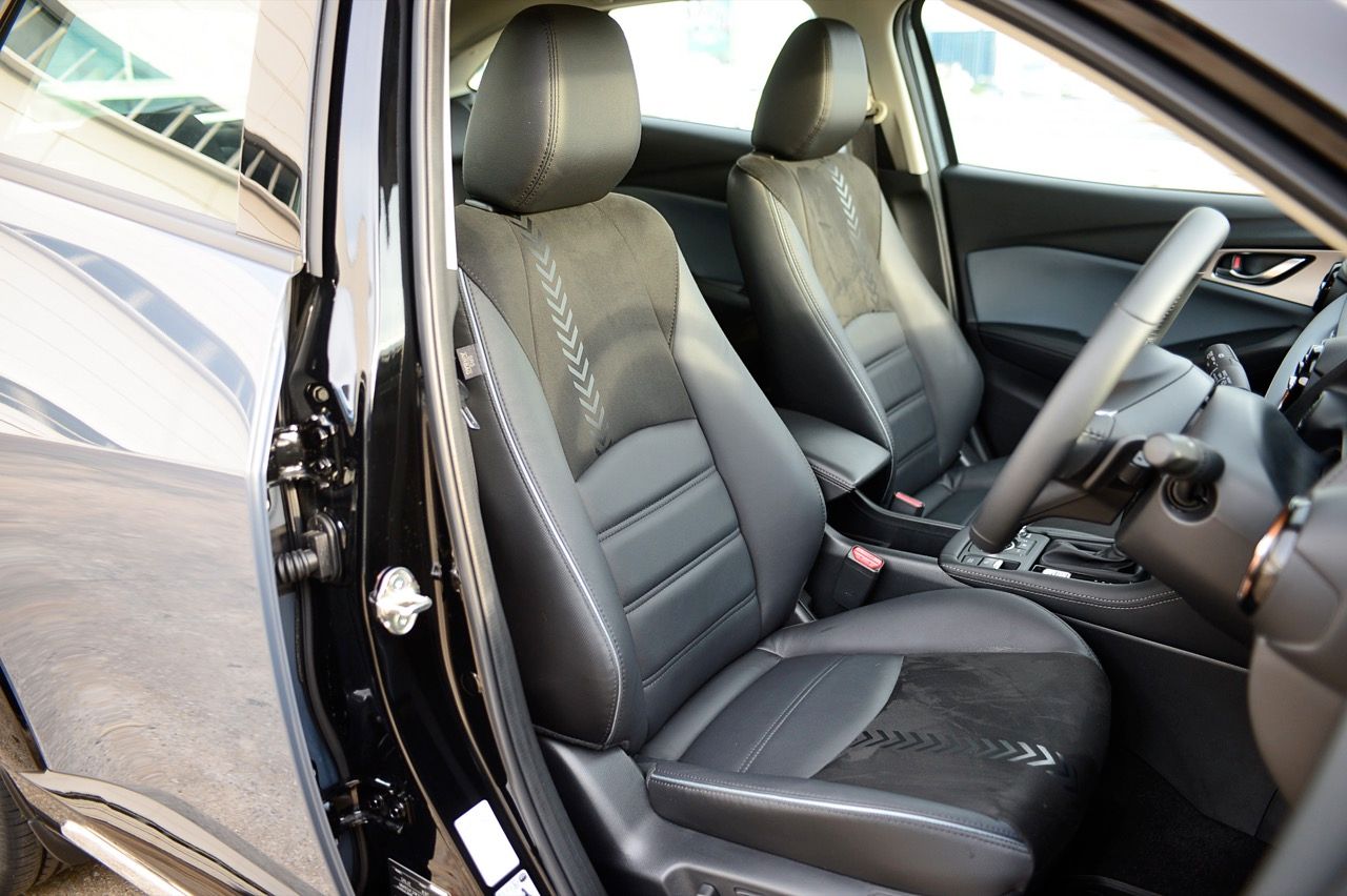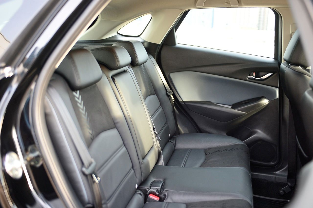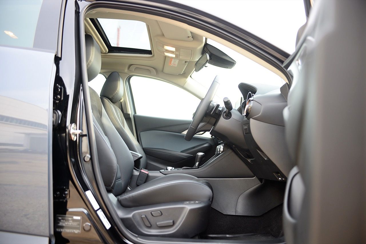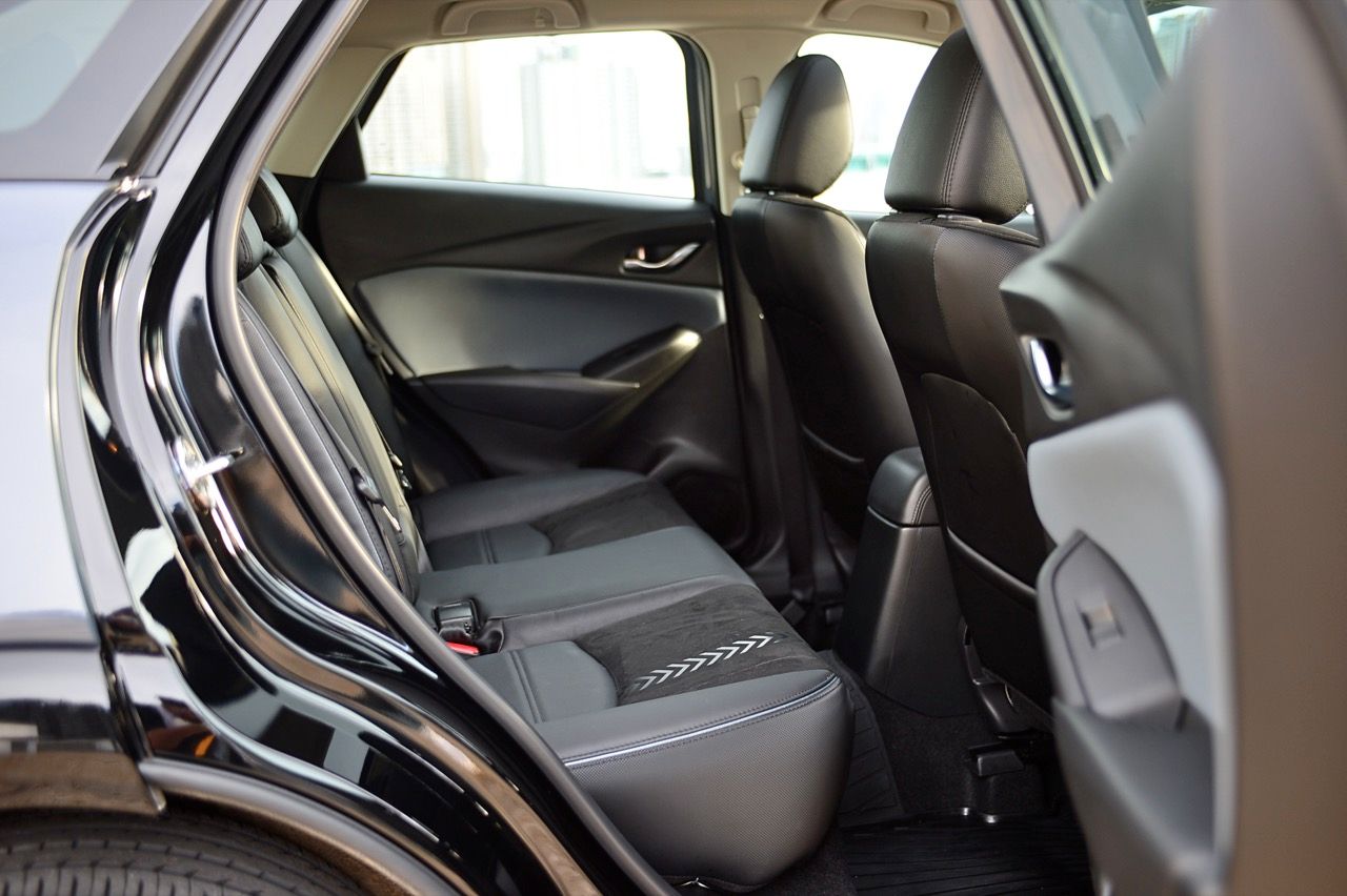 การแชร์ชิ้นส่วนภายในร่วมกับ Mazda 2 เพื่อลดต้นทุน แดชบอร์ด คอนโซล ช่องแอร์ งานพลาสติกและหนัง ยังสื่อให้เห็นถึงความตั้งใจในการออกแบบ CX-3 2.0 SIGNATURE ใส่ใจในรายละเอียดแบบลงลึก เบาะโดยสารตัดเย็บอย่างประณีต เบาะหนังของรุ่นท็อปยังมีการแยกใช้วัสดุหนังสองแบบเพื่อเพิ่มเติมความหรูหราให้กับห้องโดยสาร พวงมาลัยแบบสามก้าน พร้อมสวิตช์ควบคุมการทำงานของระบบต่างๆ หุ้มด้วยหนังแท้พร้อมรอบวงที่ออกแบบมาเป็นพิเศษ ขนาดของพวงมาลัยนั้นไม่ใหญ่หรือเล็กจนเกินไป รุ่นสูงสุดของ Mazda CX-3 SkyActiv-G 2.0. มีพวงมาลัยแบบสปอร์ตติดตั้งแป้นเปลี่ยนเกียร์ Paddle Shift ซึ่งนับเป็นอีกหนึ่งรุ่นที่มีอุปกรณ์ช่วยขับที่มีความครบและใช้งานง่าย