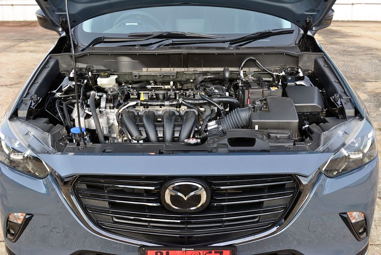 เครื่องยนต์เบนซิน SKYACTIV-G ขนาด 2.0 ลิตร ปริมาตรความจุ 1,998 ซีซี แบบแถวเรียงสี่กระบอกสูบ 16 วาล์ว พร้อมกลไกวาล์วแปรผัน ใช้อัตราส่วนกำลังอัดสูงมากถึง 14.0:1 ขับเคลื่อนล้อหน้า มีกำลังในรูปแรงม้าสูงสุดที่ 156 แรงม้า ที่ 6,000 รอบต่อนาที กับแรงบิด 204 นิวตันเมตร ที่ 2,800 รอบต่อนาที อัตราสิ้นเปลืองเชื้อเพลิงเฉลี่ยในและนอกเมืองแบบผสมทำได้ที่ 13.5 กิโลเมตรต่อลิตร ค่าการปล่อย Co2 ที่ 137 กรัม ต่อระยะทาง 1 กิโลเมตร มาตรฐานมลพิษ EURO -5 เกียร์อัตโนมัติ Skyactiv Drive 6 สปีด ช่วงล่างหน้าแบบแมคเฟอร์สัน สตรัท สปริง โช้คอัพและเหล็กกันโคลง ด้านหลังแบบทอร์ชันบีม ดิสเบรกสี่ล้อ จานดิสเบรกหน้าแบบมีช่องระบายความร้อน รุ่นปรับโฉมของ CX-3 ฝาครอบเครื่องยนต์ถูกเอาออกไปเรียบร้อย
