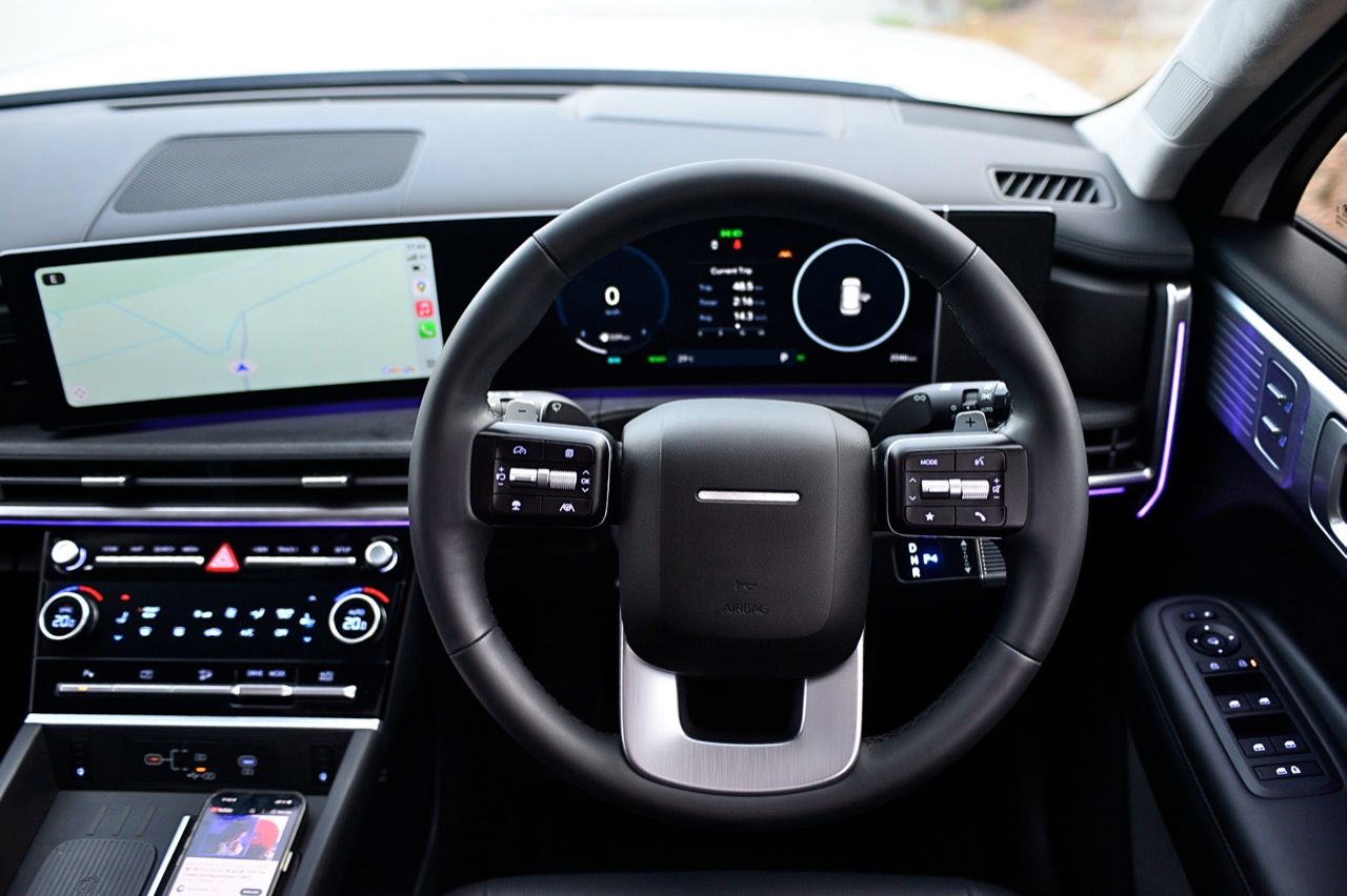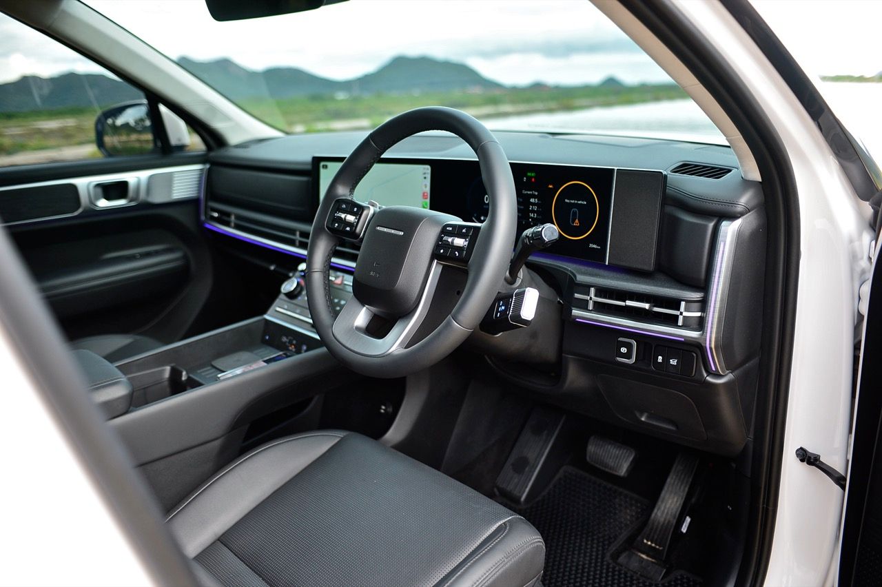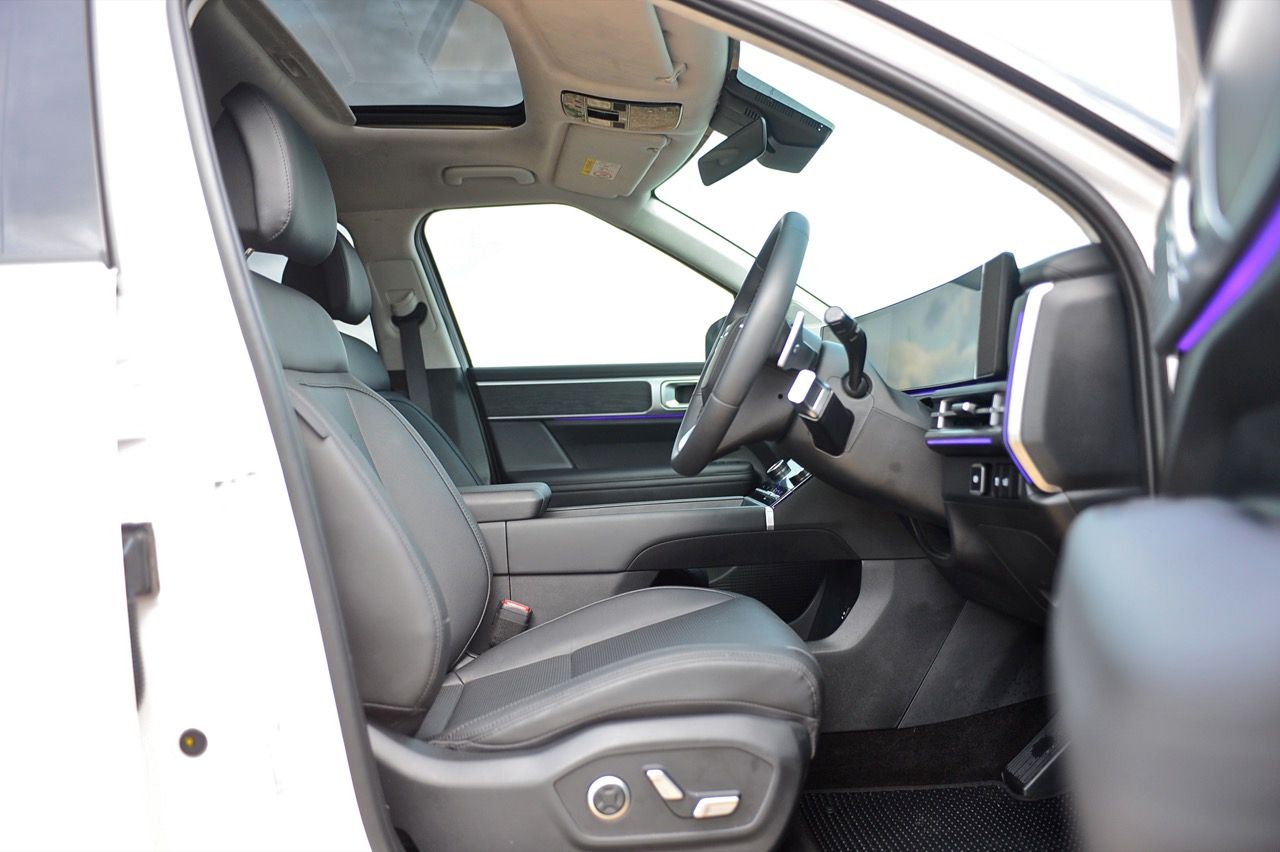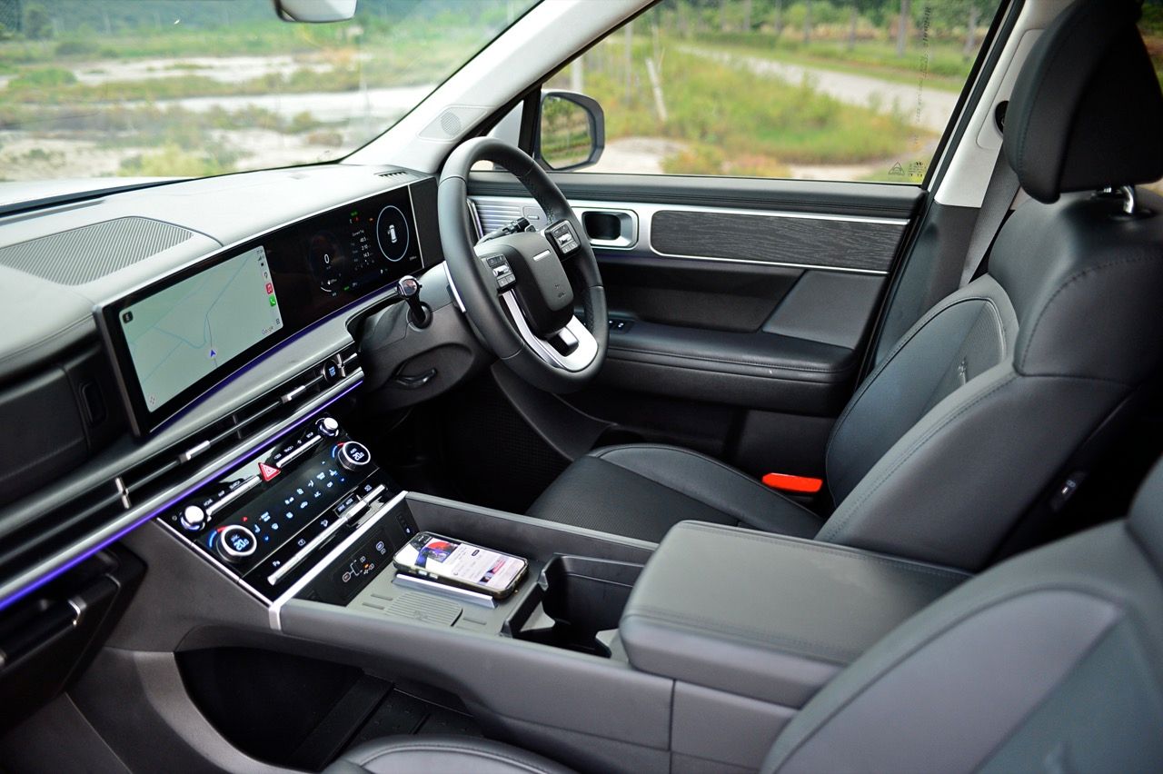 ราคา 1.74 ล้านบาทของ Hyundai Santa Fe รุ่นสูงสุดที่ขายในไทยและใช้การนำเข้าจากเวียดนามจึงไม่ใช่รถราคาประหยัด มันแพงกว่ารถไฟฟ้าจีนหรือ PPV ดีเซลอย่างเห็นได้ชัด แต่ด้วยขนาดที่ใหญ่กว่า เครื่องยนต์ไฮบริดทำงานได้อย่างยอดเยี่ยม ที่สำคัญกว่านั้น Santa Fe ให้ฟิลลิ่งการขับขี่ที่ดีพอๆ กับ Volvo XC90 หรือ BMW X3 ในบางสถานการณ์ แต่ราคาถูกกว่ามาก Hyundai ปรับแต่งช่วงล่างและสัมผัสของพวงมาลัยใน new Santa Fe ได้อย่างยอดเยี่ยม การตกแต่งภายในยังให้ความรู้สึกหรูหรามีระดับ แต่ยังคงความสะดวกสบายและใช้งานได้จริง ชุดแอร์แยกจากหน้าจอพร้อมปุ่มและสวิชท์ควบคุมที่ใช้งานง่าย ปุ่มปรับกระจกมองข้างยังมีให้ใช้งานเหมือนเดิมไม่ได้เอาไปยัดไว้ในจอ เบาะไฟฟ้าคนขับ มีตำแหน่งท่านั่งที่ดี เบาะปรับได้หลากหลาย เบาะนั่งแสนสบายเหมาะสำหรับการเดินทางไกลจากการะบายความร้อนตัวเบาะด้วยแอร์ พวงมาลัยเองก็หนาจับถนัดมือ ปุ่มกดทำจากวัสดุที่แข็งแรง การเปลี่ยนเกียร์เดินหน้า ถอยหลัง ให้ความรู้สึกนุ่ม คันเกียร์แบบก้านบิดอยู่ในตำแหน่งด้านขวาของคอพวงมาลัยเหมือนกับ Mercedes-Benz ใช้งานง่าย แต่แรกๆ ก็ต้องสร้างความคุ้นชินกันสักพัก เดี๋ยวเดียวคุณจะชอบความสะดวกของเกียร์แบบใหม่ของ Hyundai ที่มีอยู่ในแบรนด์ตราดาวมานานแล้ว