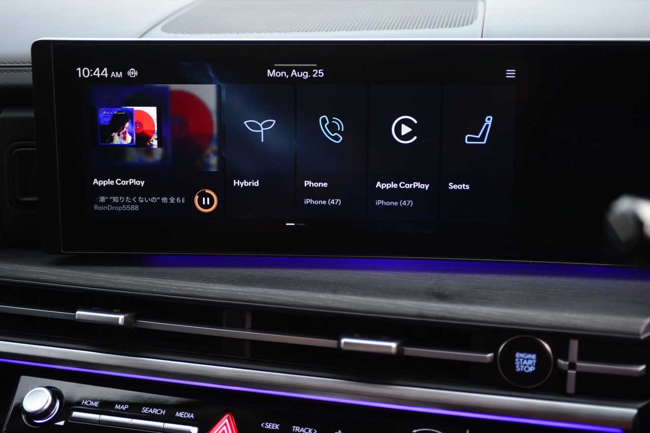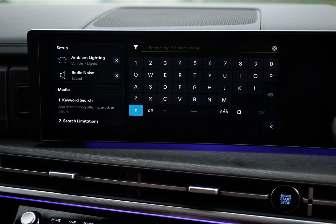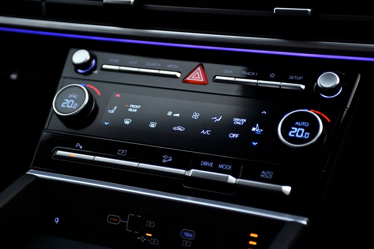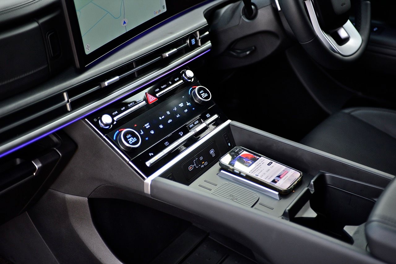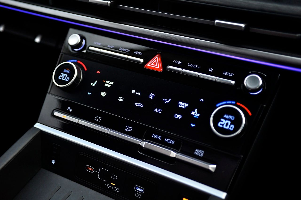 หน้าจอขนาด 12.3 นิ้วสองจอที่บรรจุแผงหน้าปัดและอินโฟเทนเมนต์ของผู้ขับขี่นั้นดูสะอาดตาและอ่านง่าย พร้อมหน้าปัดที่เรียบง่ายให้ผู้ขับขี่อ่านได้ ตัวอินโฟเทนเมนต์เองก็ไม่ได้ใช้งานง่ายนัก เนื่องจากมีเมนูมากมายและการจัดวางตัวเลือกที่ไม่สมเหตุสมผล ทำให้ประสบการณ์การใช้งานค่อนข้างยุ่งยาก อย่างไรก็ตาม คำวิจารณ์นี้สามารถเกิดขึ้นได้กับรถยนต์ฮุนไดเกือบทุกรุ่น (รวมถึง Kia และ Genesis) เนื่องจากใช้ระบบเดียวกัน ปุ่มควบคุมขนาดใหญ่ช่วยชดเชยการเข้าถึงหน้าจออินโฟเทนเมนต์ ได้อย่างรวดเร็ว พื้นที่เก็บของมีมากพอๆกับห้องใต้หลังคาเลยทีเดียว มีช่องเก็บของที่ประตูด้านหน้า ขนาดกำลังพอเหมาะ (ซึ่งใหญ่กว่าที่เห็นในภาพ) พื้นที่เก็บของขนาดใหญ่ใต้คอนโซลกลาง และช่องเก็บของที่เท้าแขนตรงกลางขนาดใหญ่ ติดตั้งที่ชาร์จโทรศัพท์ไร้สายไว้ที่คอนโซลกลาง รายละเอียดเล็กๆ น้อยๆ ทำให้ภายในห้องโดยสารมีความสะดวกสบาย ไม่ว่าจะเป็นพื้นที่เก็บของบนแผงคอนโซลด้านบนสำหรับผู้โดยสาร ช่องเก็บของใต้แท่นชาร์จไร้สาย สำหรับร้อยสายไฟในกรณีที่โทรศัพท์ไม่สามารถชาร์จแบบไร้สายได้ และช่องเก็บของที่เท้าแขนตรงกลางที่สามารถเปิดออกได้ทั้งผู้โดยสารด้านหน้าและด้านหลัง