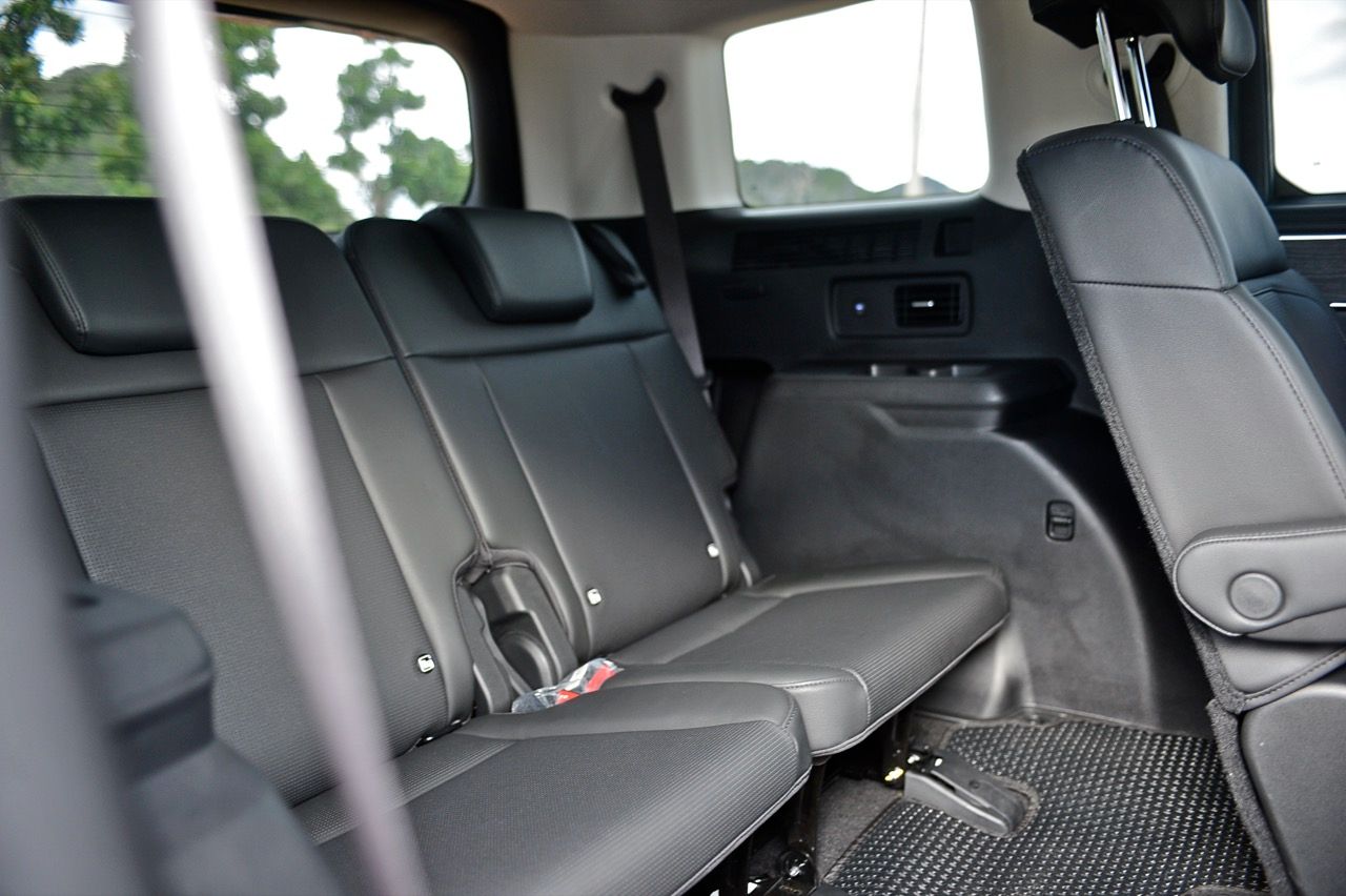 ในส่วนของเบาะผู้โดยสารตอนหลัง เบาะแถวสองดูหรูหราโอ่อ่าใช้ได้ ปรับด้วยไฟฟ้า มีที่วางแก้วสองช่องและพื้นที่เก็บของขนาดใหญ่ ช่องชาร์จไฟ เบาะแถวกลางมีพื้นที่กว้างขวางสำหรับผู้ใหญ่ที่นั่งหลังคนขับแล้วตัวสูง การออกแบบทำให้ง่ายต่อการเข้า-ออกเบาะแถวสามด้วยเบาะแถวสองแบบปรับไฟฟ้า ผู้ใหญ่สามารถนั่งแถวสามได้ มีพื้นที่เหนือศีรษะมากพอและยังมีที่วางแก้วและช่องชาร์จไฟ พื้นที่เก็บสัมภาระท้ายหากไม่พับเบาะคู่หลังสุดแถวสามก็จะมีที่เก็บของไม่มาก เมื่อพับเบาะ รุ่นไฮบริดจะมีพื้นที่ 628 ลิตร เมื่อพับเบาะ พื้นที่เก็บสัมภาระท้ายรถจะเพิ่มขึ้นเป็น 1,949 ลิตร