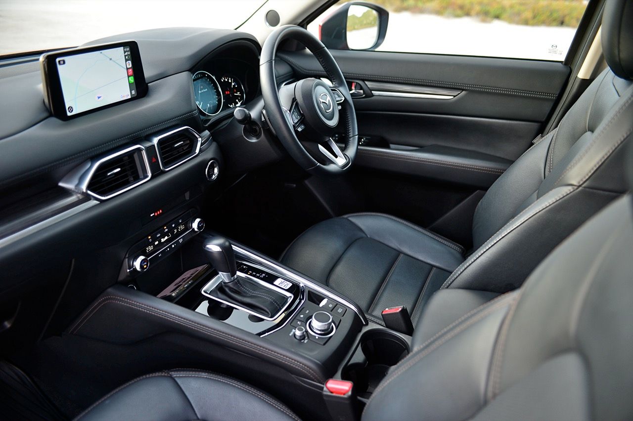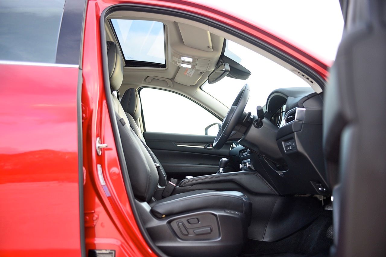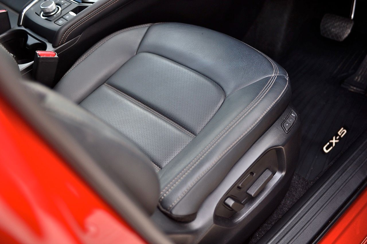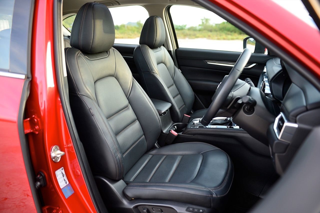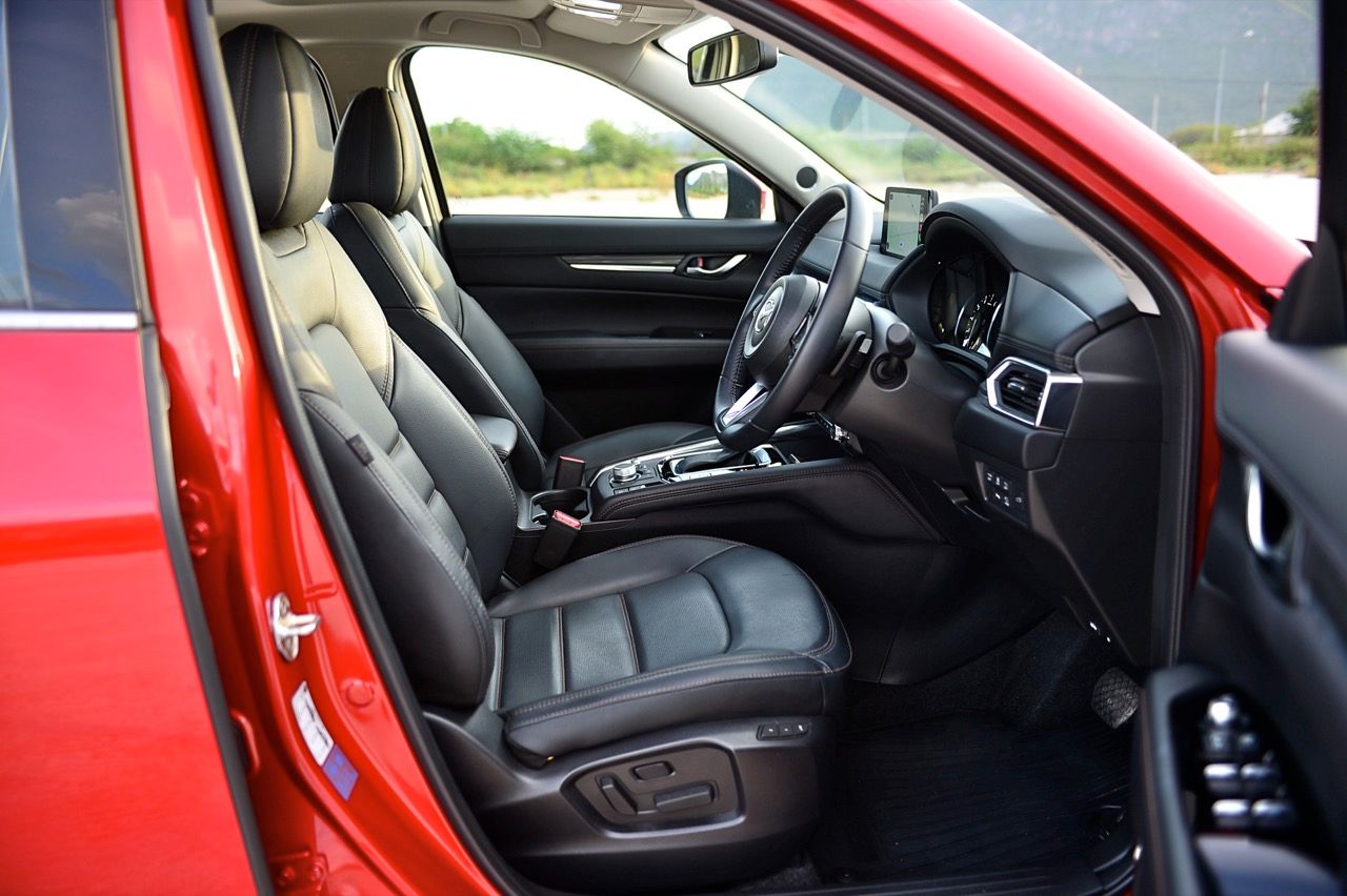 CX-5 2.0 SP เบนซินตัวท็อป เครื่องเสียง BOSE ระบบไฟอัตโนมัติที่ทำงานได้จริงและไว สอดรับกับสภาพเส้นทางที่มืดมิดเมื่อขับตอนกลางคืนบนถนนที่ปราศจากแสงไฟ การทำงานในระบบอัตโนมัติของไฟหน้า สามารถลดหรือยกไฟสูงได้ว่องไว ไม่ไปแยงตารถที่แล่นสวนมา ไฟหน้าอัตโนมัติยังสามารถปรับแสงไม่ให้ไปรบกวนสายตาของรถรอบข้าง กำลังในการส่องสว่างเห็นได้ชัดเจนไกลถึง 450 เมตร จุดอื่นๆ ที่ถือว่าให้มาครบก็มีเบาะคู่หน้าปรับไฟฟ้า ปุ่มควบคุมจอภาพ control panel ที่มีแค่ยี่ห้อเดียวในรถญี่ปุ่น รุ่นเบนซินไม่มีแป้นเปลี่ยนตำแหน่งเกียร์โดยใช้การผลักคันเกียร์มาทางด้านขวาเพื่อเข้าสู่โหมดแมนวล เบรกมือไฟฟ้า กับ Auto Brake Hold ระบบปรับตั้งความเร็วอัตโนมัติ Cruise Control ฝาท้ายไฟฟ้า และพื้นที่เบาะหลังที่ค่อนข้างกว้างขวางนั่งสองคนสบายๆสำหรับการเดินทางไกล