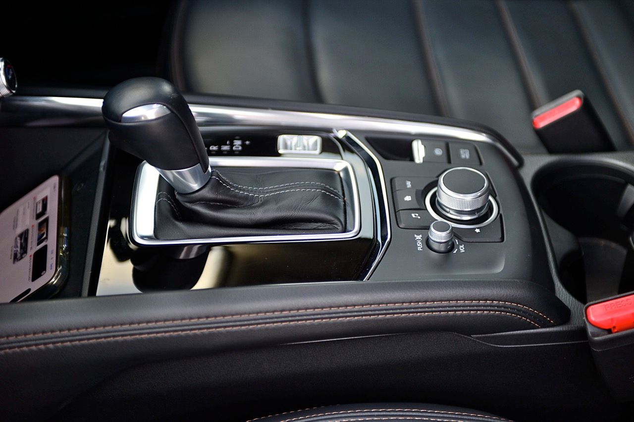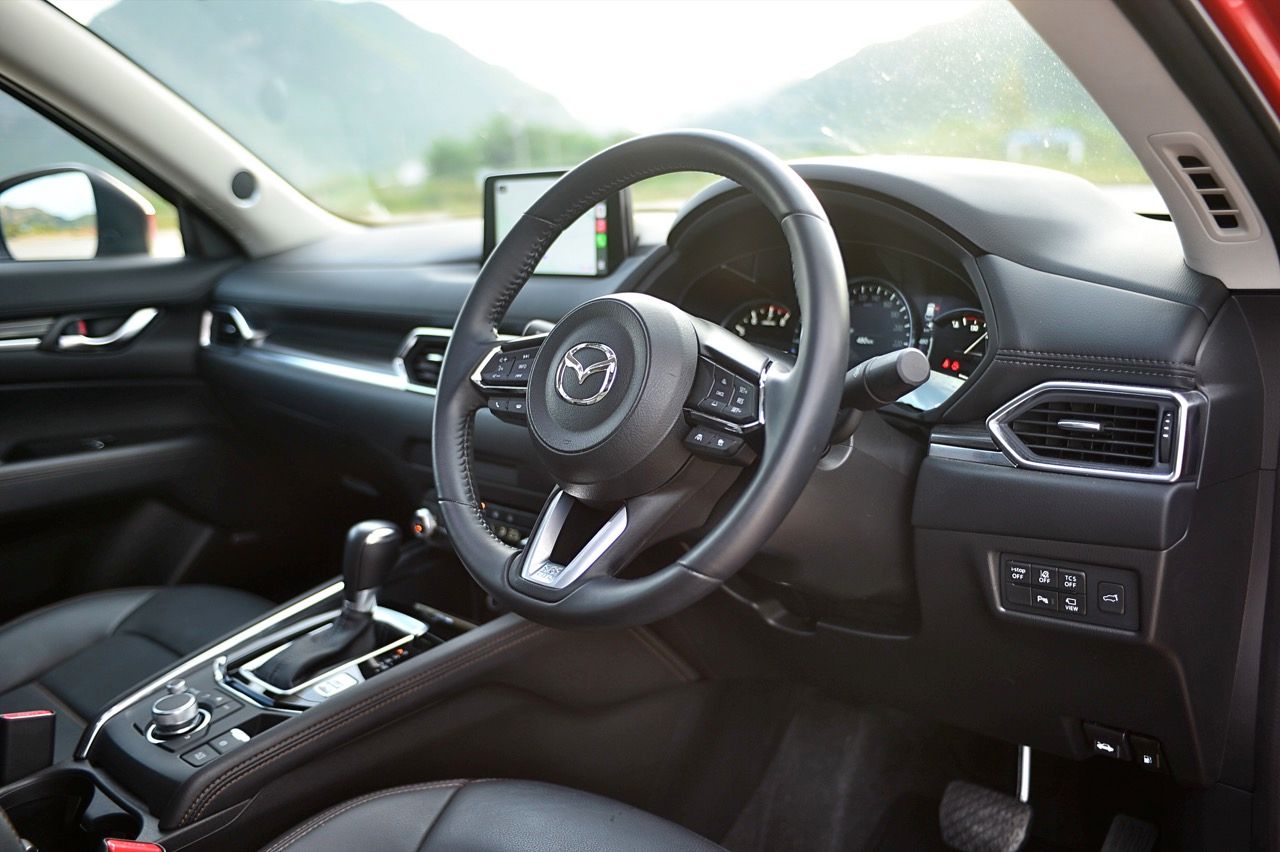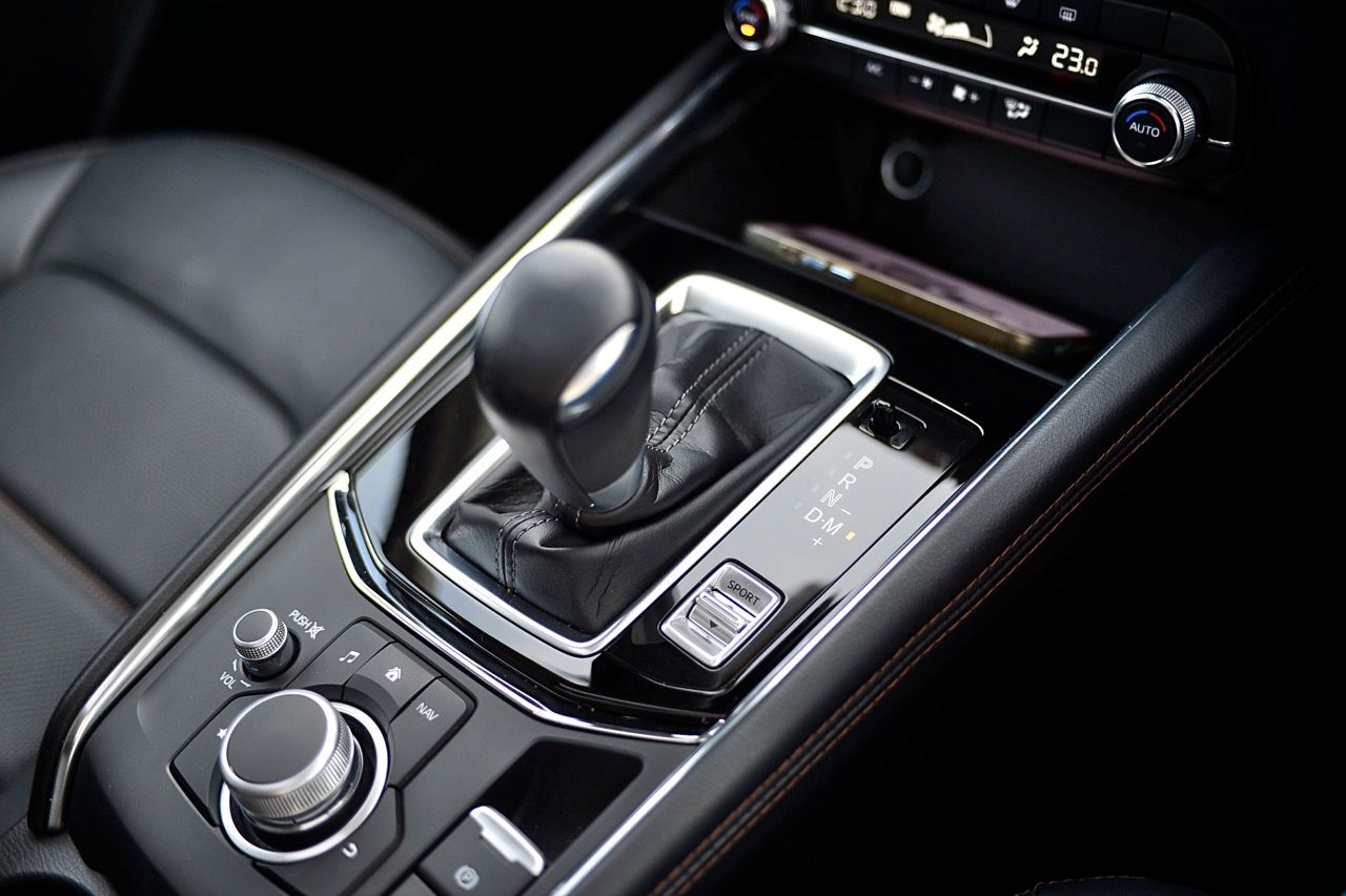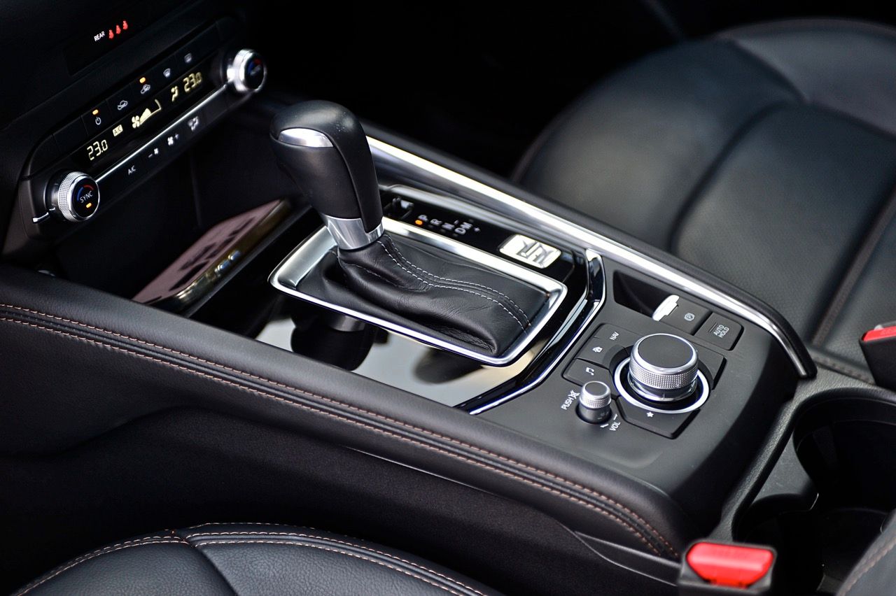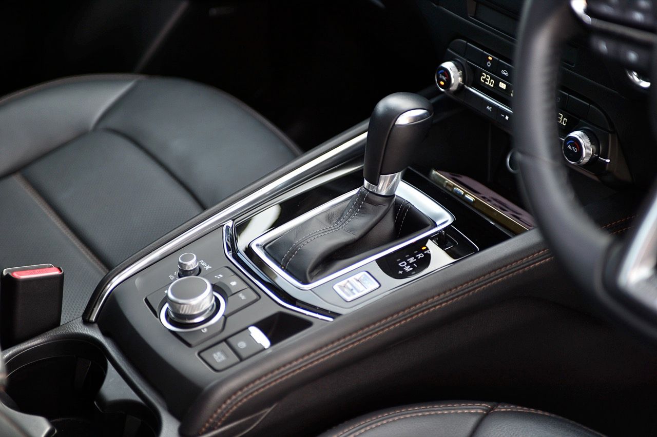 รุ่นปรับโฉมให้ Paddle Shist มาด้วย และเกียร์ออโต้ 6 สปีด Skyactiv transmission ก็เป็นเกียร์อัตโนมัติแบบฟันเฟืองทอร์คคอนเวอร์เตอร์ ที่ปรับอัตราทดให้ครอบคลุมการใช้งาน ช่วยลดรอบเครื่องยนต์เมื่อวิ่งที่ย่านความเร็วเดินทาง สวิตช์ Sport Mode ในรุ่นเบนซินมีการปรับการทำงานของเครื่องยนต์ให้ตอบสนองได้ไวขึ้น การลดหรือเพิ่มอัตราทดมีแป้นเปลี่ยนเกียร์หลังพวงมาลัยมาให้ซะที ซอฟแวร์เกียร์จะปรับความสมดุลของอัตราทดให้เข้ากับความเร็วและสภาพเส้นทาง ผมลองทดสอบการตอบสนองของเกียร์โดยผลักคันเกียร์มาทางขวาเพื่อเข้าสู่โหมดแมนนวลสำหรับการปรับอัตราทดด้วยตัวคนขับเอง เกียร์ทำงานได้รวดเร็วเมื่อชิฟขึ้น-ลงผ่าน Paddle หลังพวงมาลัย เกียร์ตอบสนองไวในการเลือกอัตราทดที่มีความเหมาะสมกับเส้นทาง ให้ความรู้สึกที่ดีกว่าเกียร์ CVT เป็นชุดส่งกำลังที่น่าชื่นชมและเป็นอุปกรณ์ในระบบส่งกำลังของ Mazda ที่มีการปรับจูน ECU ใหม่ ช่วยทำให้ CX-5 ขับสนุกมากยิ่งขึ้น