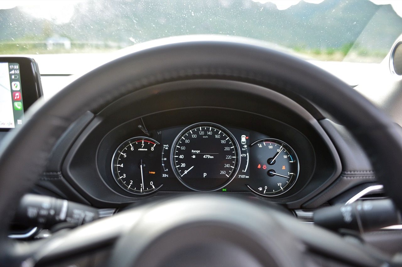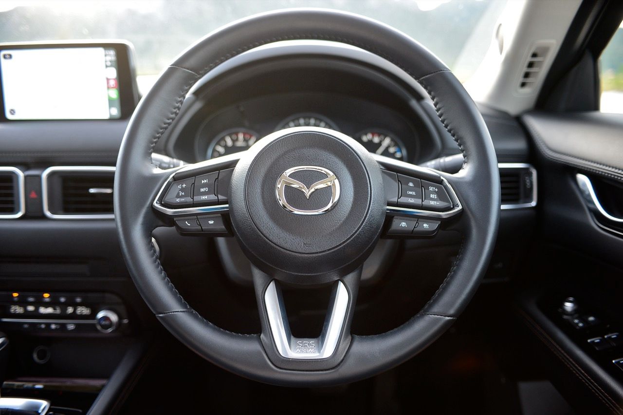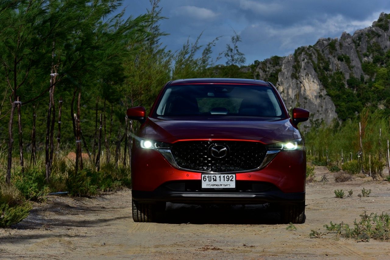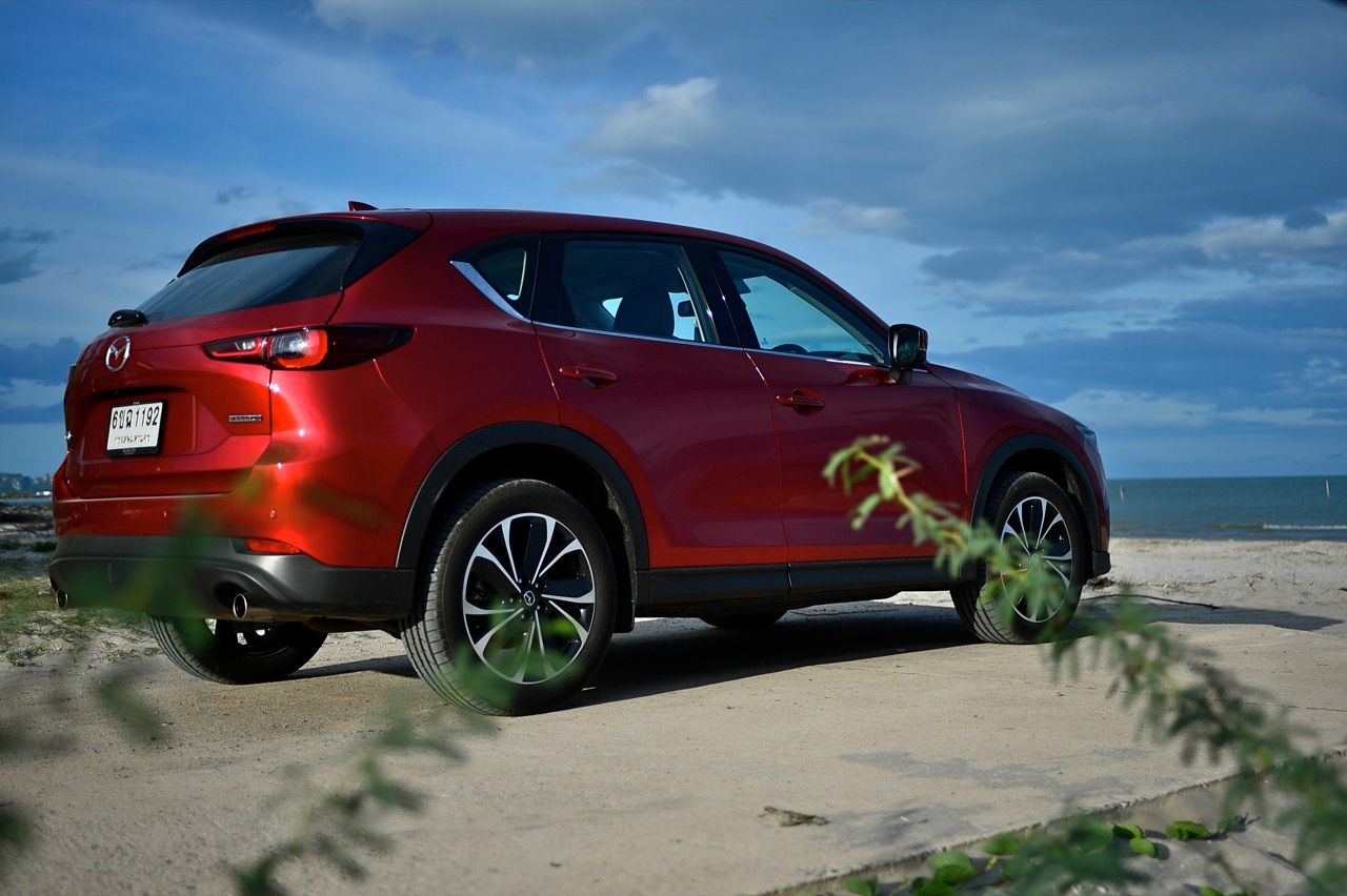 CX-5 รุ่นเบนซิน เป็นรถเอสยูวีไซส์กลางที่มีเสถียรภาพ คล่องตัวและเร็วใช้ได้ กำลังพอท้วมๆ แรงบิดไม่มากเหมือนเครื่องดีเซล แต่สามารถฉุดลากตัวรถหนัก 1,569 กิโลกรัมให้ทะยานไปตามทางขึ้นเนินได้แบบไม่อืด แค่กดให้ลึกมากกว่ารุ่นดีเซล แรงบิดจะหลั่งไหลออกมาจนรู้สึกได้ถึงแรงฉุดลาก การตอบสนองอย่างละเอียดของอุปกรณ์เพิ่มความเสถียรหรือ G-Vectoring Control ทำให้ผมหรือใครก็ตามที่นั่งอยู่หลังพวงมาลัยเกิดความมั่นใจได้มากกว่ารถครอสโอเวอร์คู่แข่ง! พวงมาลัยเบาลงเล็กน้อยคล้ายรุ่นดีเซล ช่วงล่างก็นิ่มขึ้นอีกนิดเพื่อดักทางคุณสุภาพสตรีที่ไม่ชอบความกระด้างสะเทือน แฮนด์ลิ่งของพวงมาลัยไฟฟ้านับว่าดีแม้จะให้ความรู้สึกที่เบากว่ารุ่นแรก เป็นผลมาจากการปรับจูน ECU ที่ใช้ควบคุมพวงมาลัยโดยไม่กระทบกระเทือนกับการใช้ความเร็ว แม้จะดูตามหลังคู่แข่งจากจีนเรื่องเทคโนโลยีอินโฟเทนเมนท์ แต่ไดนามิกของมันทำให้ CX-5 ยังมีความน่าใช้ แม้จะขายมานานจนสมควรจะเปลี่ยนโฉมได้แล้ว..
