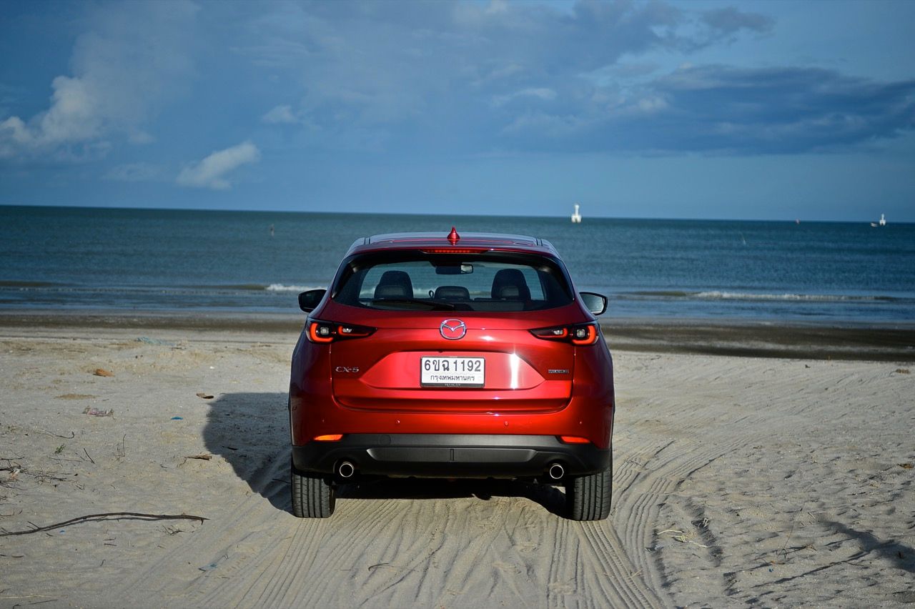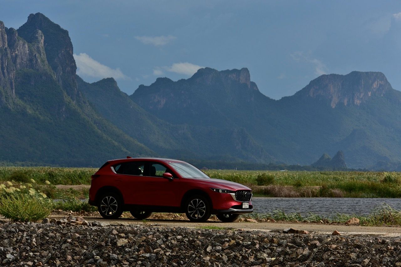 เครื่องยนต์เบนซิน Skyactiv-G ใน CX-5 รุ่น 2.0SP ตัวนี้ ออกมานานเป็นสิบปีแล้ว มีเรี่ยวแรง 121 กิโลวัตต์ หรือ 165 แรงม้า ส่วนแรงบิดสูงสุดอยู่ที่ 210 นิวตันเมตร ที่รอบเครื่องยนต์ 4,000 รอบต่อนาที ดูเหมือนน้อยเกินไปแต่พอขับจริงๆ จังๆ ทั้งในเมืองและออกทางไกล กำลังแค่นี้เพียงพอต่อการใช้งานโดยเฉพาะการนำมันมาวิ่งเต็มสปีดบนเส้นทางภูเขาที่มีเนินสูงชันและมีทางที่คดเคี้ยววกวนอุดมไปด้วยโค้ง มันไม่ใช่รถเอสยูวีแบบฟูลไซส์คันใหญ่ยักษ์ แต่นั่งขับได้สบายเอามากๆ จากตำแหน่งท่านั่งที่ดี รูปลักษณ์ภายนอกสวยงาม ภายในตกแต่งในสไตล์ยุโรปไม่แตกต่างไปจากรุ่นดีเซล เส้นสายอันหล่อเหลาลงตัวของ New CX-5 ต้องยกประโยชน์ให้กับทีมออกแบบของ Mazda เบาะหลังแบบปรับระดับเอียงได้ (นิดหน่อย) ช่วยทำให้นั่งทางไกลได้ดีขึ้น ส่วนกลไกการปรับพับเบาะหลังเพิ่มพื้นที่ขนสัมภาระได้เยอะพอสมควร ยัดจักรยานเสือหมอบไซส์ 54 ได้โดยไม่ต้องถอดล้อแต่ก็ต้องเสียพื้นที่เบาะหลังทั้งหมด