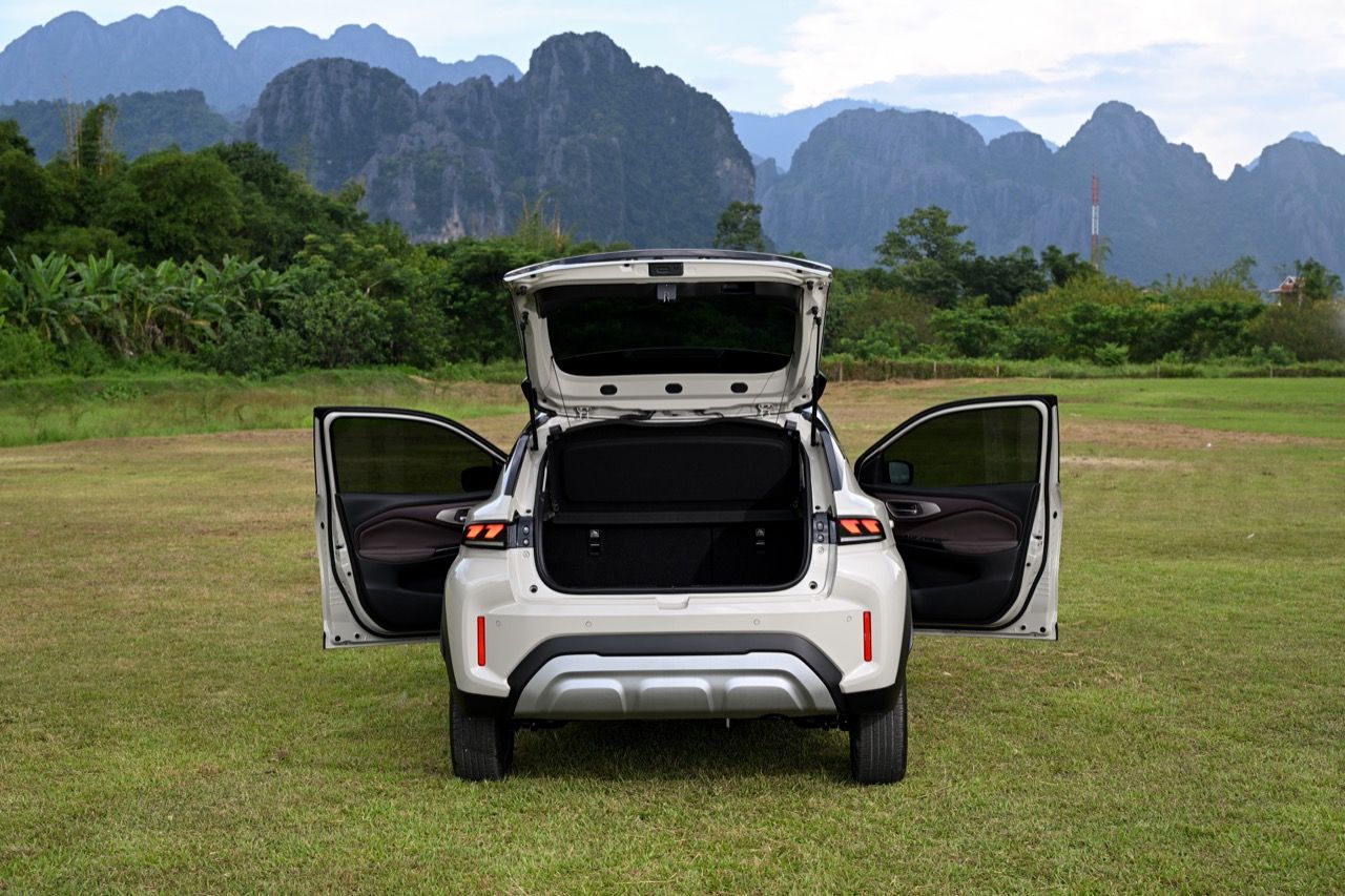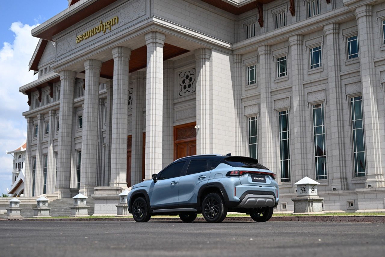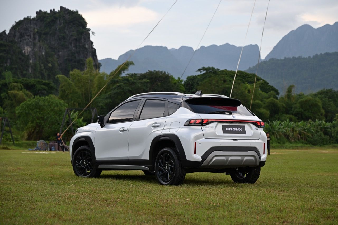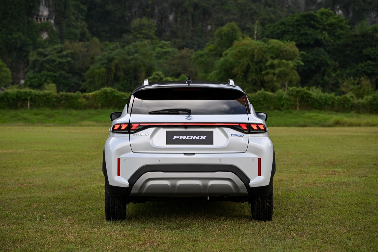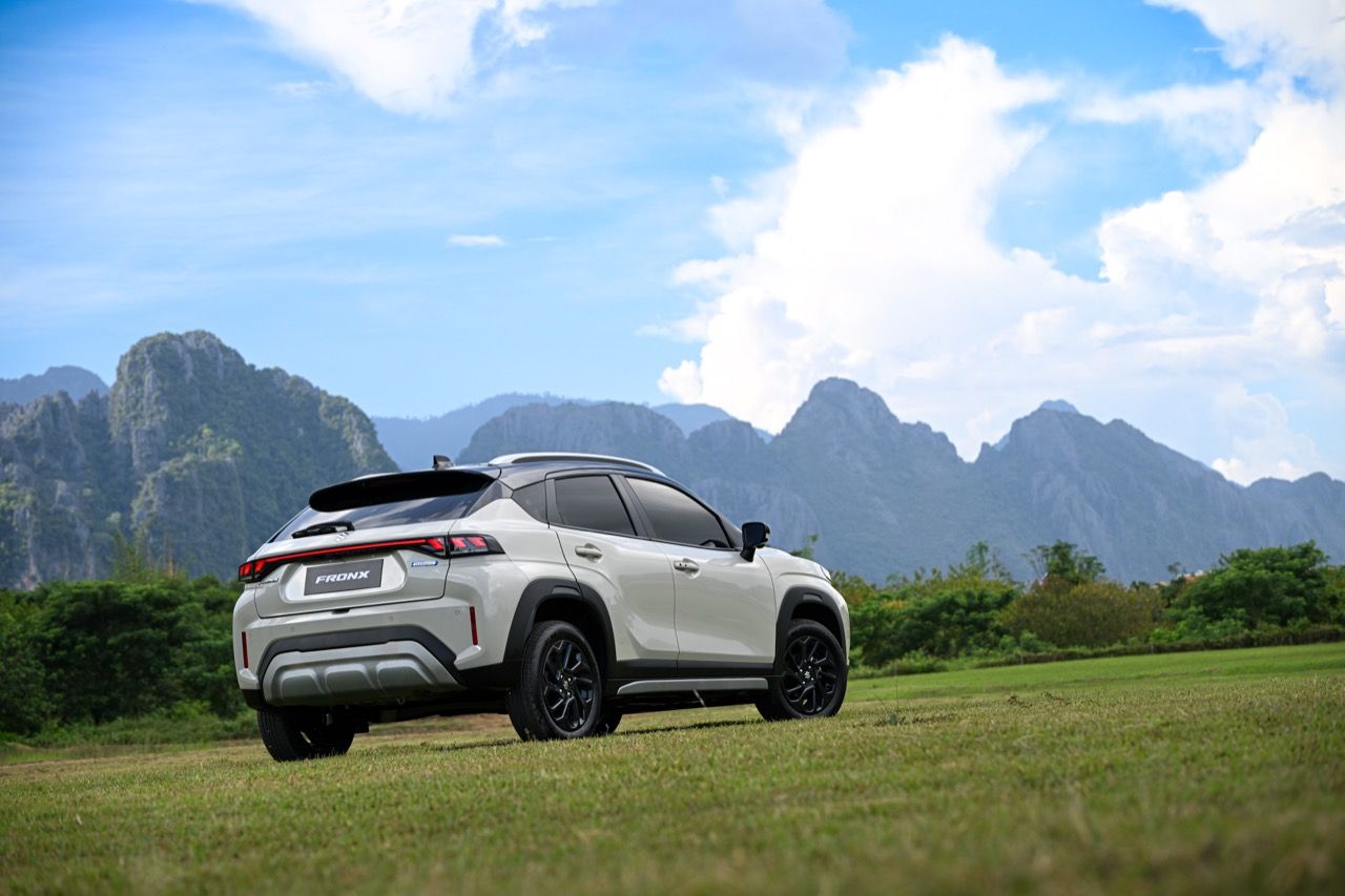 จุดที่ผมชอบก็คือการออกแบบส่วนท้ายของรถ บั้นท้ายของ Fronx ดูเฉียบคมเต็มไปด้วยเหลี่ยมมุม ไฟท้ายทรงยาวมีหลอด LED อยู่ภายใน ทั้งไฟเลี้ยวและไฟถอยหลังก็ใช้หลอด LED ทั้งหมด ส่วนไฟเบรกดวงที่สาม ติดตั้งอยู่ตรงกึ่งกลางของสปอยเลอร์หลัง ใบปัดน้ำฝนหลังมีมาให้เลยไม่ต้องรอรุ่นปรับโฉม กันชนหลังคือจุดสมดุลของมุมมองส่วนบั้นท้าย สอดรับกับชิ้นงานพลาสติกสีเงินที่กรุทับส่วนล่างบริเวณกึ่งกลางของกันชนหลัง พลาสติกสะท้อนแสงมัลติรีเฟคเตอร์ อยู่ตรงมุมด้านข้างทั้งสองฝั่งของกันชนหลัง แทบจะมองไม่เห็นท่อระบายท้าย เพราะรถยนต์ยุคใหม่เน้นการลดมลพิษ ไม่ส่งเสียงดัง ทำให้เกือบทุกแบรนด์พยายามซ่อนท่อไอเสียกันทั้งนั้น จริงๆแล้ว โรงงานประกอบ Suzuki Fronx ใช้มาตรฐานเดียวกันทั่วโลก ไม่ว่าจะเป็นที่ญี่ปุ่น อินเดีย หรืออินโดนีเซีย งานประกอบมีความประณีตใช้ได้ ราคาแค่ 7.9 แสนบาท ประกอบมาขนาดนี้ก็ถือว่าโอเคแล้ว รอยต่อ ตะเข็บตัวถัง การยึดชิ้นส่วนต่างๆ ภายในห้องโดยสาร เมื่อลุยทางขรุขระในวังเวียง สปป ลาว ถือว่าแน่นหนาใช้ได้ ไม่ส่งเสียงรบกวนเมื่อรูดบนทางหินกรวดด้วยความเร็ว 45-60 กิโลเมตรต่อชั่วโมง ลงหลุมลงบ่อบนถนนที่ผุพังในวังเวียง ไม่มีจุดไหนที่ส่งเสียงดังน่ารำคาญออกมา ถือว่าทำได้ตามมาตรฐานของโรงงาน Suzuki ที่มีอยู่ทั่วโลก