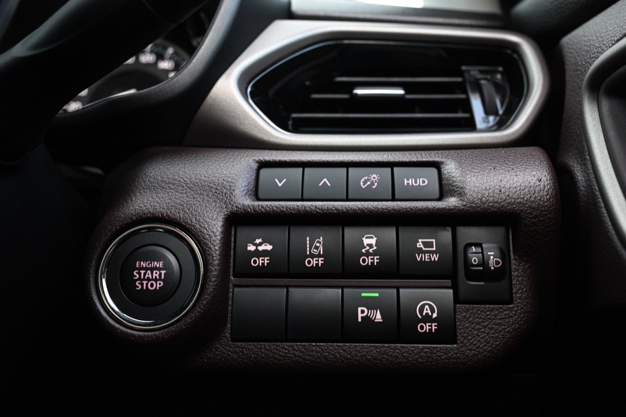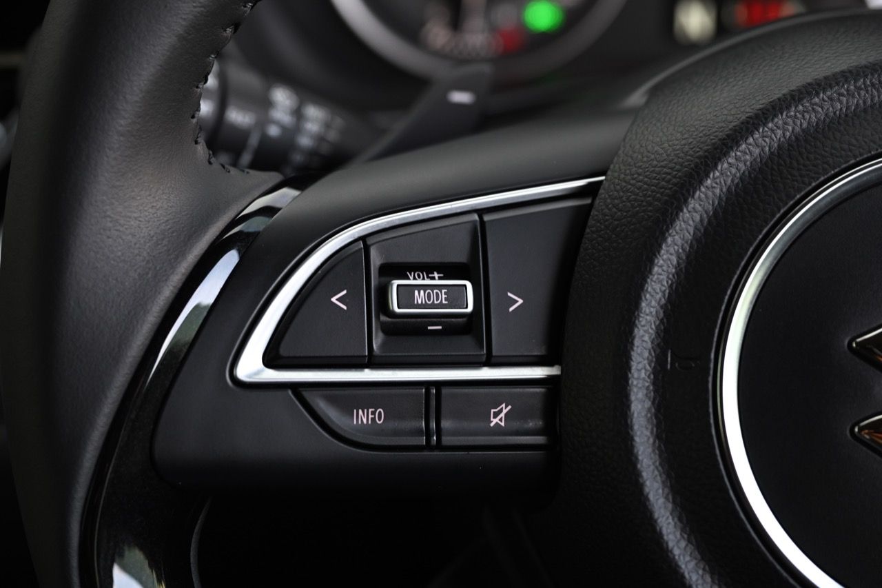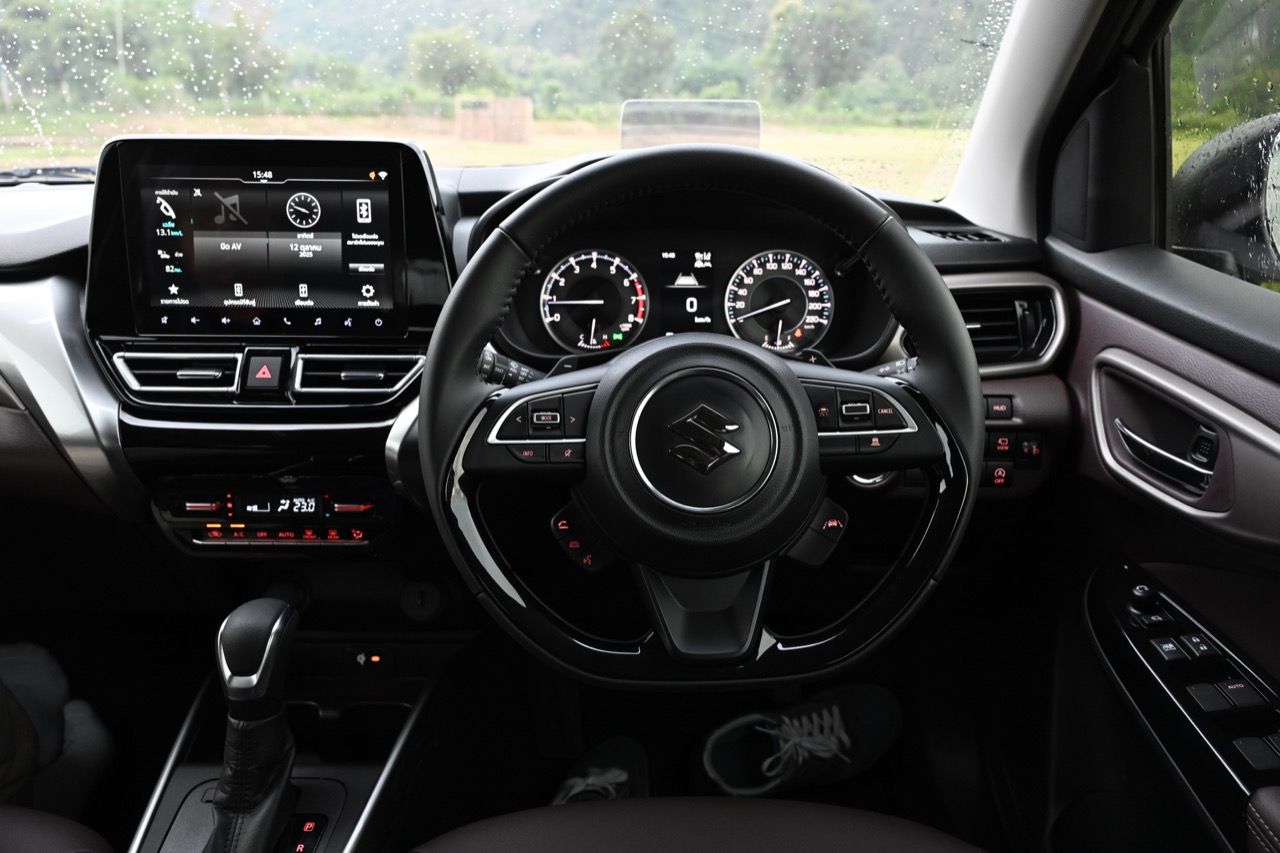 พวงมาลัยหุ้มหนังแท้แบบสามก้านใหม่ล่าสุดของ Suzuki มีแป้นเปลี่ยนตำแหน่งเกียร์หลังวงพวงมาลัย Paddle Shift มาให้ใช้งาน พวงมาลัย ปรับได้ถึง 4 ทิศทาง ดึงออกหรือดันหดกลับ ยกหรือกดลงต่ำได้มากกว่าเดิม อันนี้ถือว่าทำได้ดีเลยดีเดียว ระบบแสดงข้อมูลการขับขี่ Head-up Display หน้าจอ Touchscreen ขนาด 9 นิ้ว รองรับ Apple CarPlay / Android Auto แบบไร้สาย Wireless ช่องเชื่อมต่อ USB Type A / Type C ชาร์จโทรศัพท์แบบไร้สาย Wireless Charger เบาะนั่งหุ้มด้วยหนัง สีทูโทน สีดำ – สีน้ำตาล เบาะนั่งด้านหลัง แยกพับอิสระ 60 : 40 จุดยึดเบาะนั่งเด็ก ISOFIX