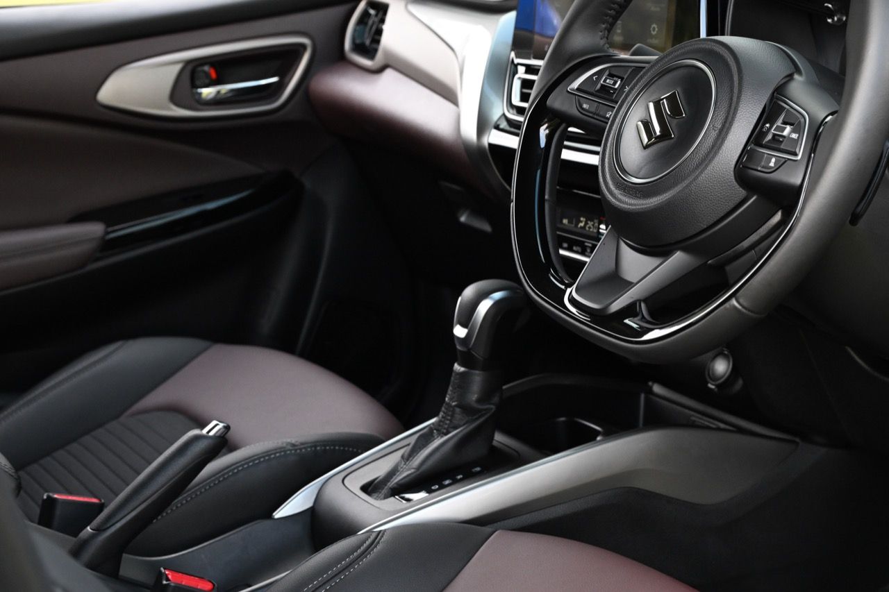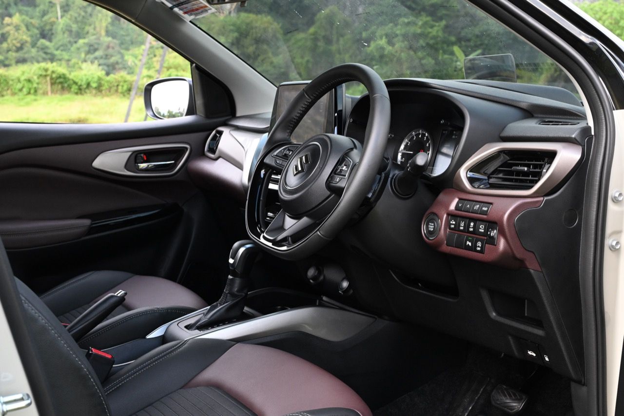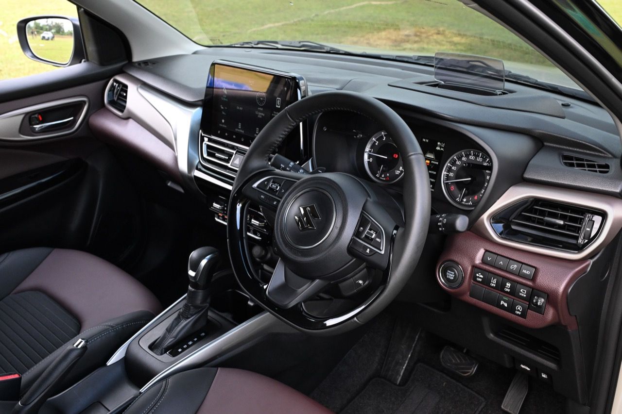 พวงมาลัยหุ้มหนังแท้แบบสามก้านใหม่ล่าสุดของ Suzuki มีแป้นเปลี่ยนตำแหน่งเกียร์หลังวงพวงมาลัย Paddle Shift มาให้ใช้งาน พวงมาลัย ปรับได้ถึง 4 ทิศทาง ดึงออกหรือดันหดกลับ ยกหรือกดลงต่ำได้มากกว่าเดิม อันนี้ถือว่าทำได้ดีเลยดีเดียว ระบบแสดงข้อมูลการขับขี่ Head-up Display หน้าจอ Touchscreen ขนาด 9 นิ้ว รองรับ Apple CarPlay / Android Auto แบบไร้สาย Wireless ช่องเชื่อมต่อ USB Type A / Type C ชาร์จโทรศัพท์แบบไร้สาย Wireless Charger เบาะนั่งหุ้มด้วยหนัง สีทูโทน สีดำ – สีน้ำตาล เบาะนั่งด้านหลัง แยกพับอิสระ 60 : 40 จุดยึดเบาะนั่งเด็ก ISOFIX