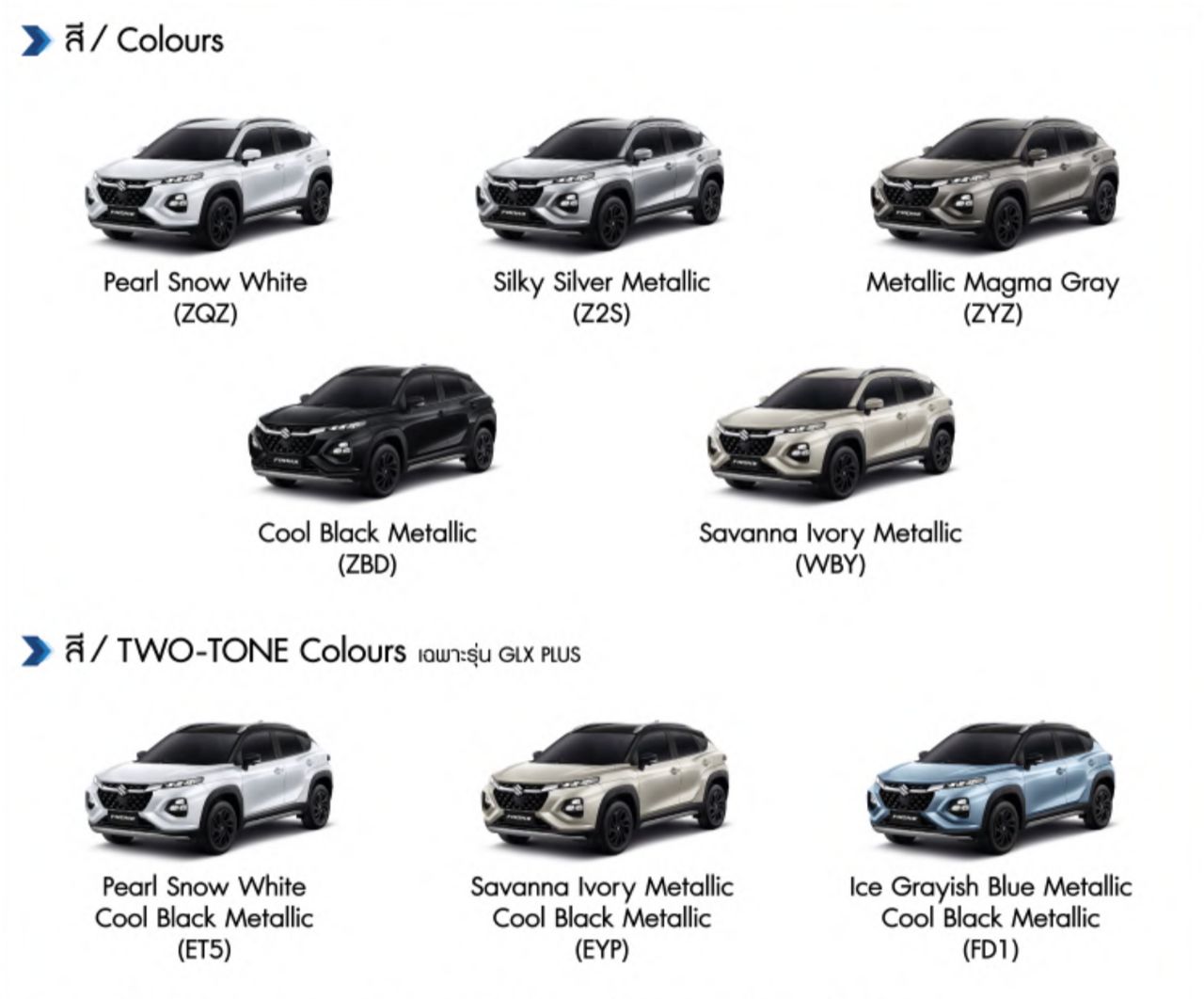 สีพิเศษในรุ่น GLX PLUS แบบ Two-tone 3 สี ได้แก่