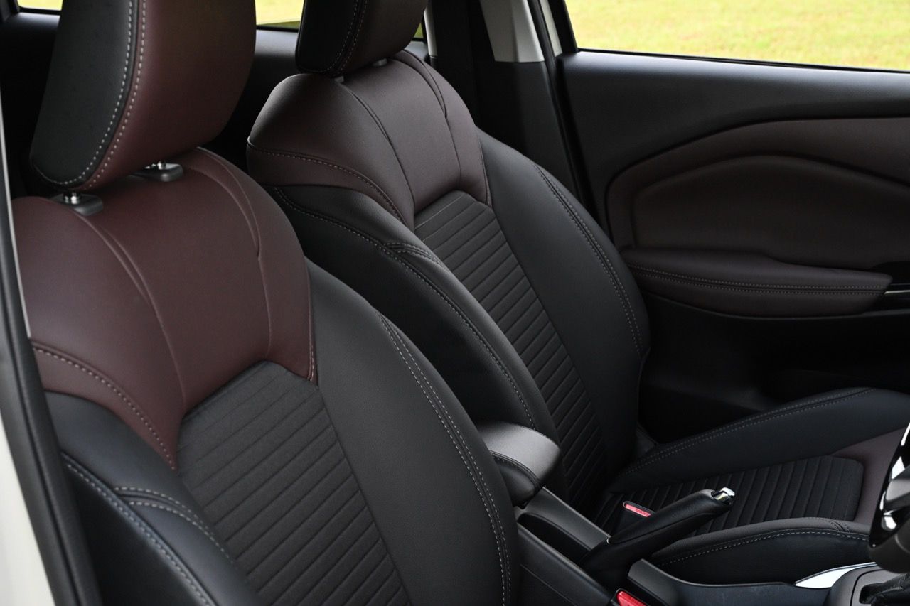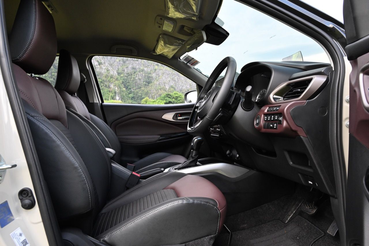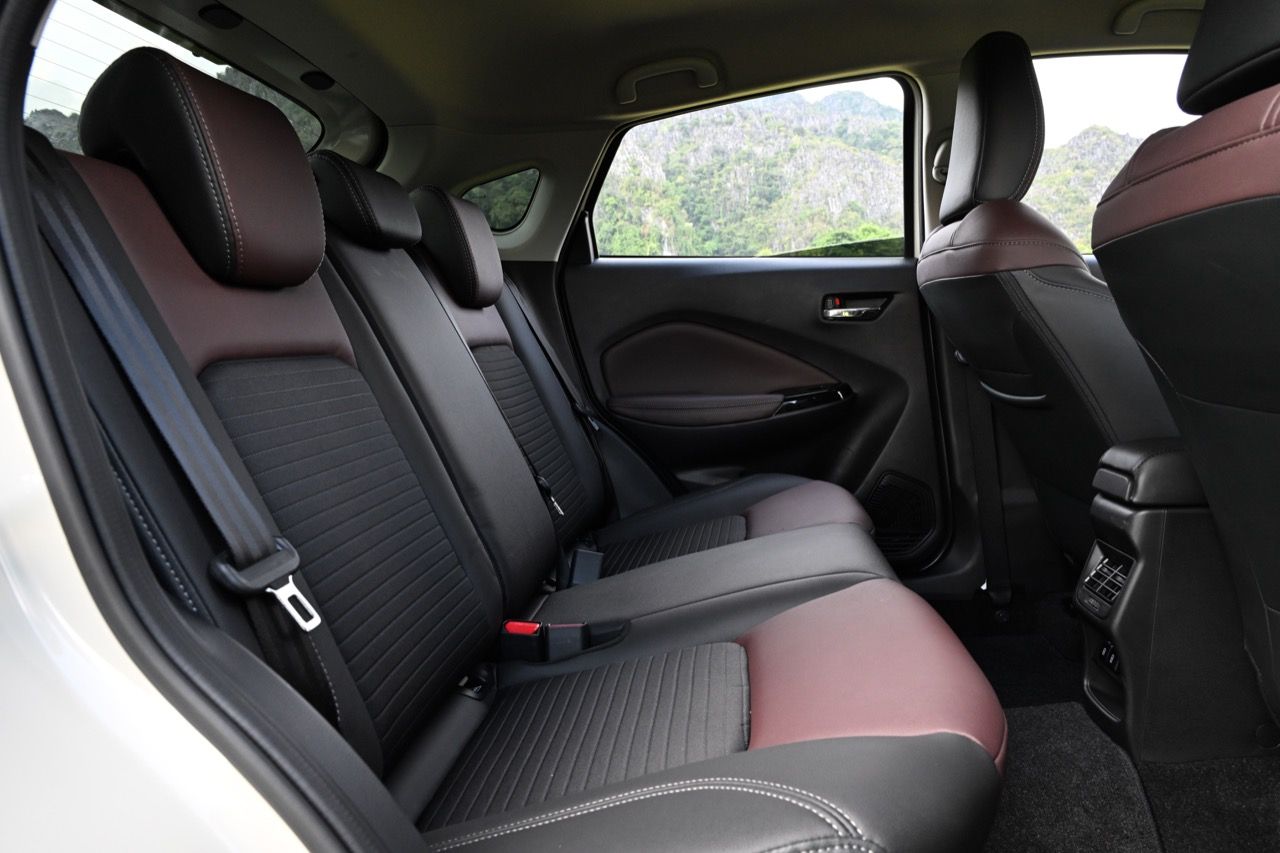 เบาะคู่หน้าปรับอัตโนมือ คือใช้มือยกหรือโยก แต่ก็สามารถปรับน่านั่งได้อย่างครอบคลุม ไม่สะดวกสบายเท่าเบาะปรับไฟฟ้าแต่ใช้งานระยะยาวถืกๆ ทนๆ เบาะหลังมีพื้นที่ไม่มากนัก นั่งสองคนตัวไม่สูงเกิน 175 เซนติเมตร ถือว่ากำลังสบาย แต่ถ้าตัวสูงกว่านั้นให้มานั่งหน้าจะดีกว่า วัสดุหุ้มเบาะนุ่มและนั่งสบายกว่า XL7 การออกแบบตัวเบาะใหม่ทั้งหน้าและหลัง หลังคาที่เทลาดไปยังส่วนท้าย ทำให้พื้นที่เหนือศีรษะของผู้โดยสารเบาะหลังมีไม่มาก ไม่เหมาะกับคนตัวสูง รวมถึงพื้นที่วางขา ด้วยความที่เป็นรถฐานล้อสั้นนั่นเอง
