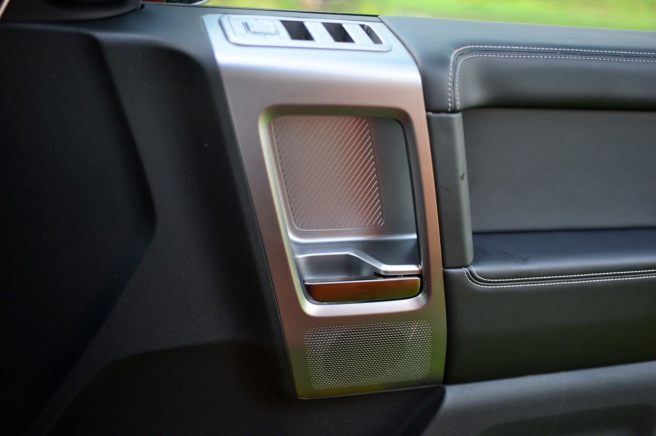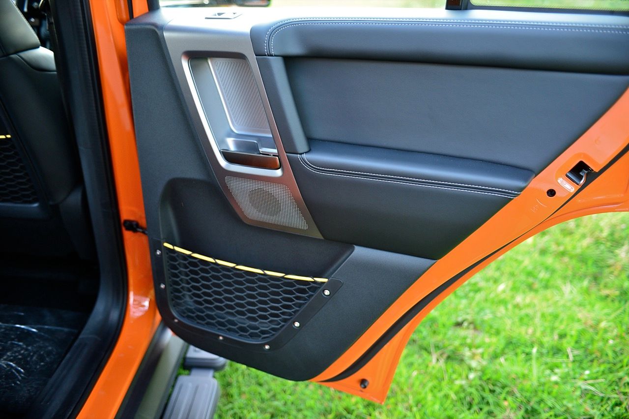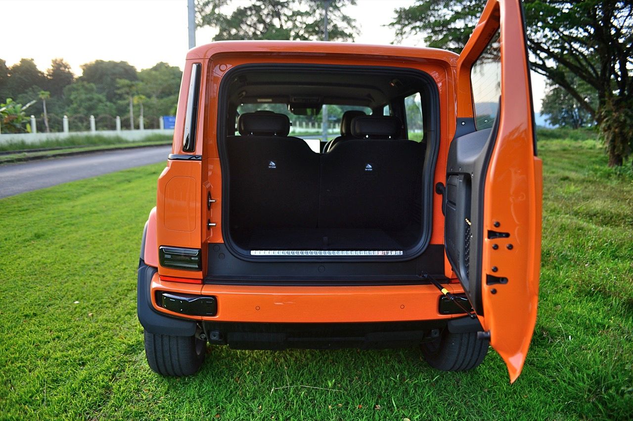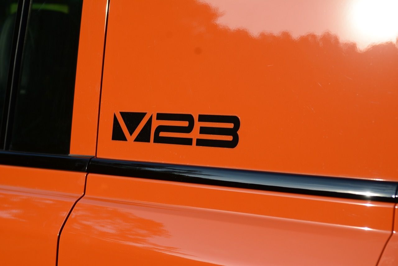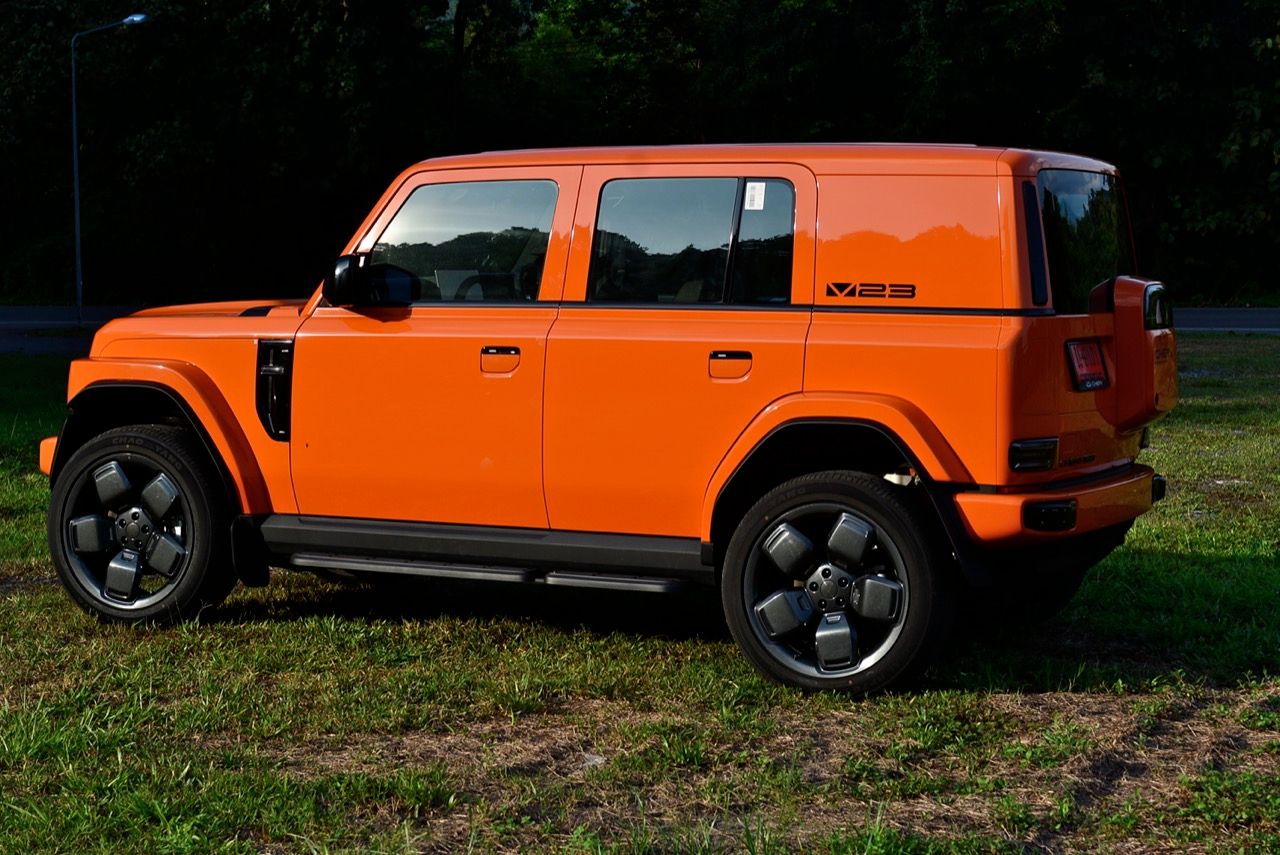 ทรงย้อนเวลาของ V23 มีไฟหน้า LED ทรงกลม ไฟ Daytime Running Light แบบ LED อยู่ภายในเป็นขีดเรืองแสงที่สว่างใช้ได้ในตอนกลางวัน V23 รุ่นท็อป มีระบบไฟหน้า เปิด-ปิด อัตโนมัติ ระบบไฟหน้า Follow-me-home ระบบปรับระดับไฟหน้า สูง-ต่ำ บั้นท้ายตันทึบสไตล์กล่องนม มีไฟท้าย LED ทรงเดียวกับ G-Class ซึ่งทำออกมาได้ดีแม้จะเป็นการลอกเลียนแบบก็ตาม ไฟเบรกดวงที่ 3 LED ปัดน้ำฝนหลังที่บานกระจกฝาท้ายไม่มีมาให้ ฝนตกคงเลอะน่าดูชม ฝาท้ายแน่นอนว่าย้อนเวลาไปจนถึง FJ Cruiser ด้วยฝาท้ายแบบอัตโนมือ เปิดออกด้านข้าง ไม่ต้องออกแรงยกแต่อย่างใดทั้งสิ้น แต่ค้ำโช้คฝาท้ายค่อนข้างแข็งต้องออกแรงเล็กน้อยเพื่อเปิดออก พื้นที่เก็บสัมภาระส่วนท้ายมีพอเพียง ถ้าพับเบาะหลังก็ยิ่งใส่ของชิ้นโตๆได้แต่ก็จะสูญเสียที่นั่งเบาะหลังไปทั้งหมด บั้นท้ายของ V23 ยังติดตั้งไฟตัดหมอกหลัง ส่วนด้านข้าง ขึ้นลงจากรถได้สะดวกด้วยบันไดข้าง มือจับที่เปิดประตูด้านนอก พร้อมไฟส่องสว่างออกแบบให้แนบติดกับตัวถังเพื่อลดแรงต้านทานของกระแสลม กระจกมองข้างทรงเหลี่ยมที่เข้ากับทรงของตัวถัง กระจกหน้าต่างไฟฟ้า 4 บาน แบบ One-Touch กระจกมองข้าง ปรับด้วยไฟฟ้า พับด้วยมือ กระจกมองข้าง พร้อมระบบไล่ฝ้า เรียกว่าให้มาสมควรกับราคาไม่ถึง 9 แสนบาท จะเอาดีกว่านี้ก็ต้องกระโดดไป Land Rover defender ซึ่งน่าจะซื้อ V23 ได้เกินครึ่งโหล!