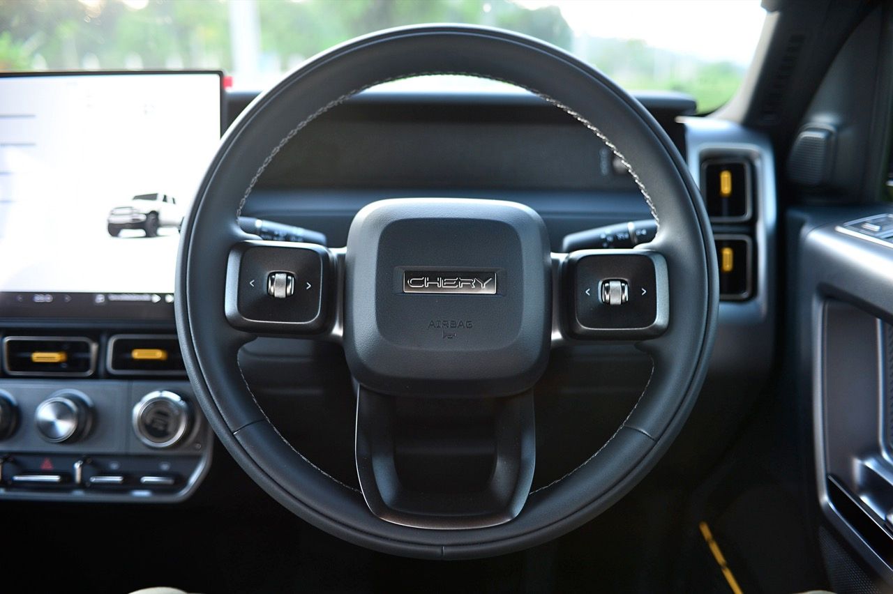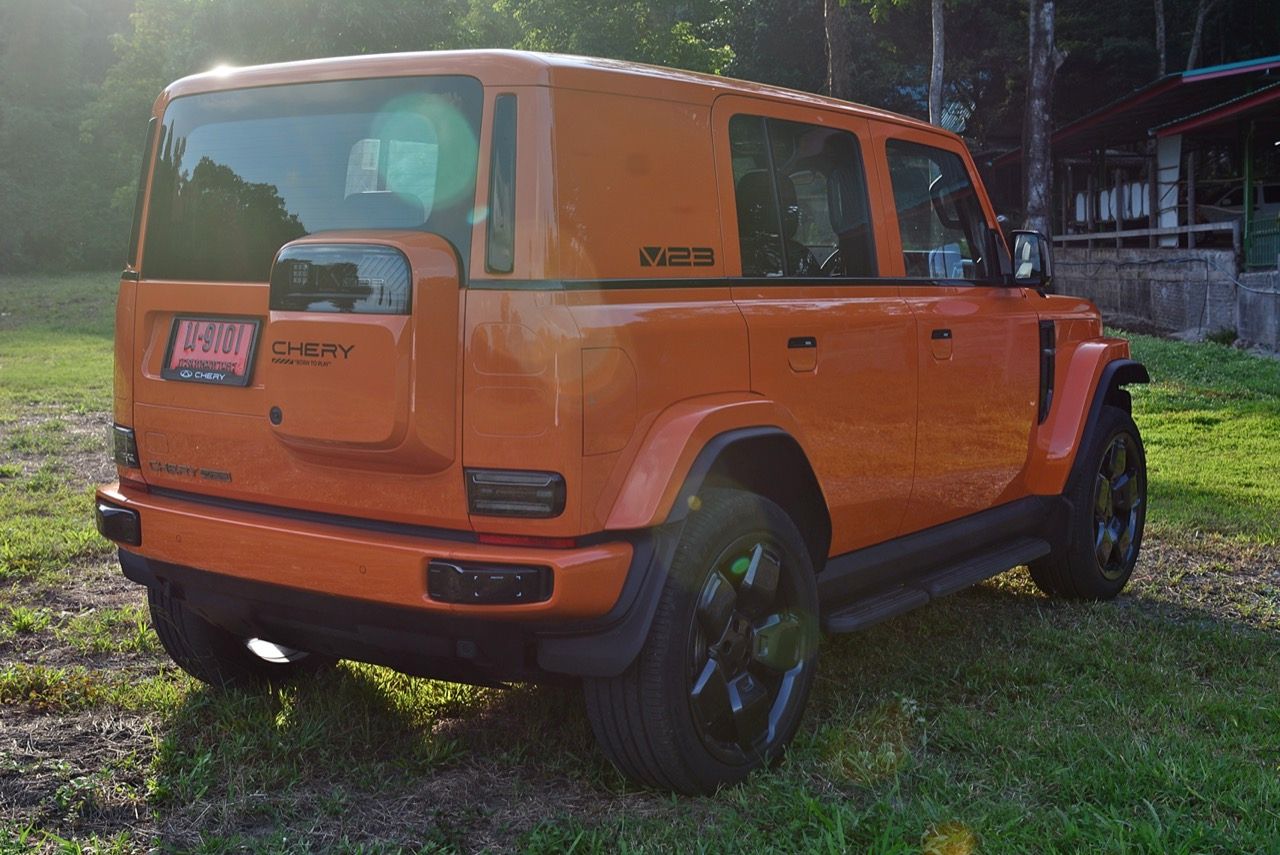 V23 ทรงตัวในย่านความเร็วสูงได้ดีพอประมาณ ดีกว่า Jaecoo 5EV นิดๆ การเก็บเสียงก็ทำได้ดี ยางจีนไม่ได้ส่งเสียงดังอะไรมากมาย จุดที่ผมชอบก็คือทัศนวิสัยมุมมองรอบคันที่ค่อนข้างโป่งโล่ง กระจกบานหน้าตั้งชันสไตล์รถ Jeep ส่วนท้ายทึบๆ ตันๆ กับไฟท้ายของ G-Class ก็ทำให้ V23 ดูลงตัว การผสมจุดเด่นของรถออฟโรดในตำนานทำให้ Chery ประสบความสำเร็จในการสร้างแรงดึงดูดทางสายตา สำหรับคนที่ชอบรถสวยรถแปลก V23 มีทุกอย่างที่คุณต้องการในราคาไม่ถึง 9 แสนบาท พื้นที่ใช้สอยภายในดี ชิ้นส่วน อุปกรณ์ตกแต่ง ดี เบาะคู่หน้านั่งสบาย ขับทางไกลดีไม่เมื่อย แม้จะปรับได้แค่ 6 ทิศทางแต่ดีกว่า 4 ทิศทาง พื้นที่เก็บสัมภาระมีพอเพียงสำหรับคนสองหรือสามคน ไปสี่คนต้องใช้กระเป๋าใบเล็กหน่อยก็ใส่ได้หมด ชาร์จไฟบ้าน ใช้เวลานานเป็นวันๆ กว่าแบตฯจะเต็ม แต่ถ้าชาร์จด่วนก็แค่ 50 นาที แบตเตอรี่ 81 กิโลวัตต์/ชั่วโมง น่าจะไปได้ไกลกว่านี้ ถ้าอยากวิ่งเฉียดๆ 400 กิโลเมตร ก็ต้องรักษาความเร็วเอาไว้ไม่เกิน 80 กิโลเมตรต่อชั่วโมง ห้ามเร่ง ห้ามแซง ไหลไปเรื่อยๆ เหมาะกับการขับกินลมชมวิวท่ามกลางป่าเขาลำเนาไพร วิ่งชิลๆในเมืองก็ดี อย่าไปคิดอะไรมาก รถทรงนี้ไม่ถึง 9 แสน ถือว่าถูกมากแล้วละครับ.