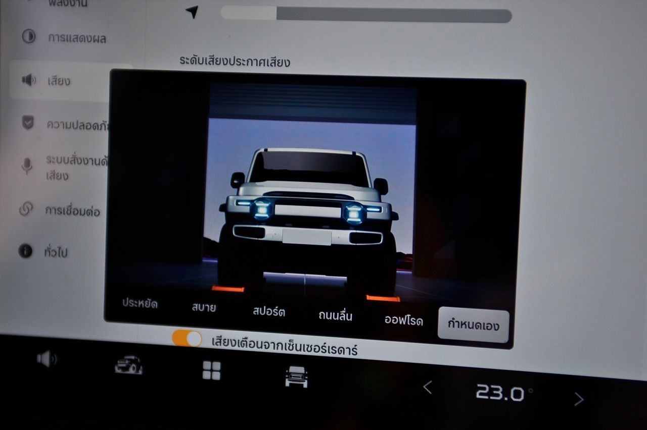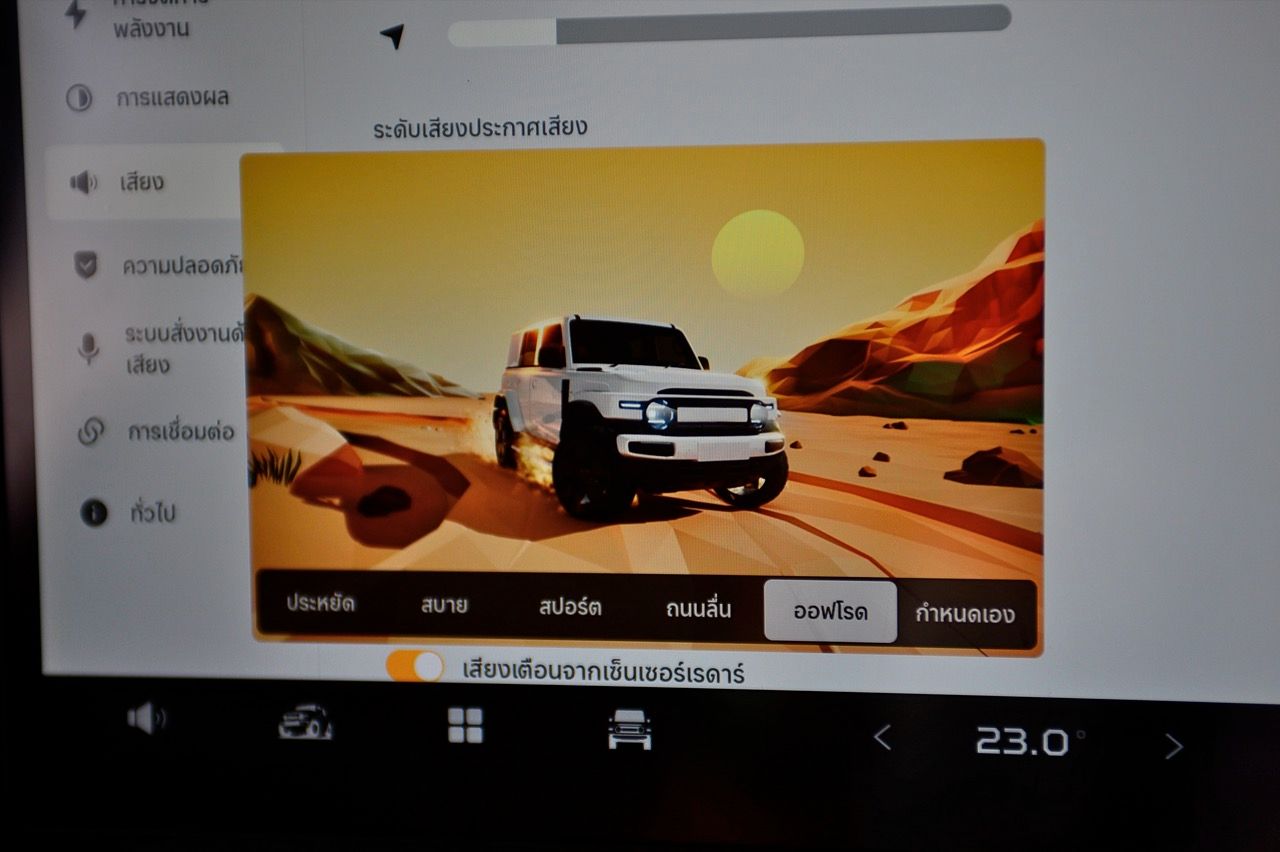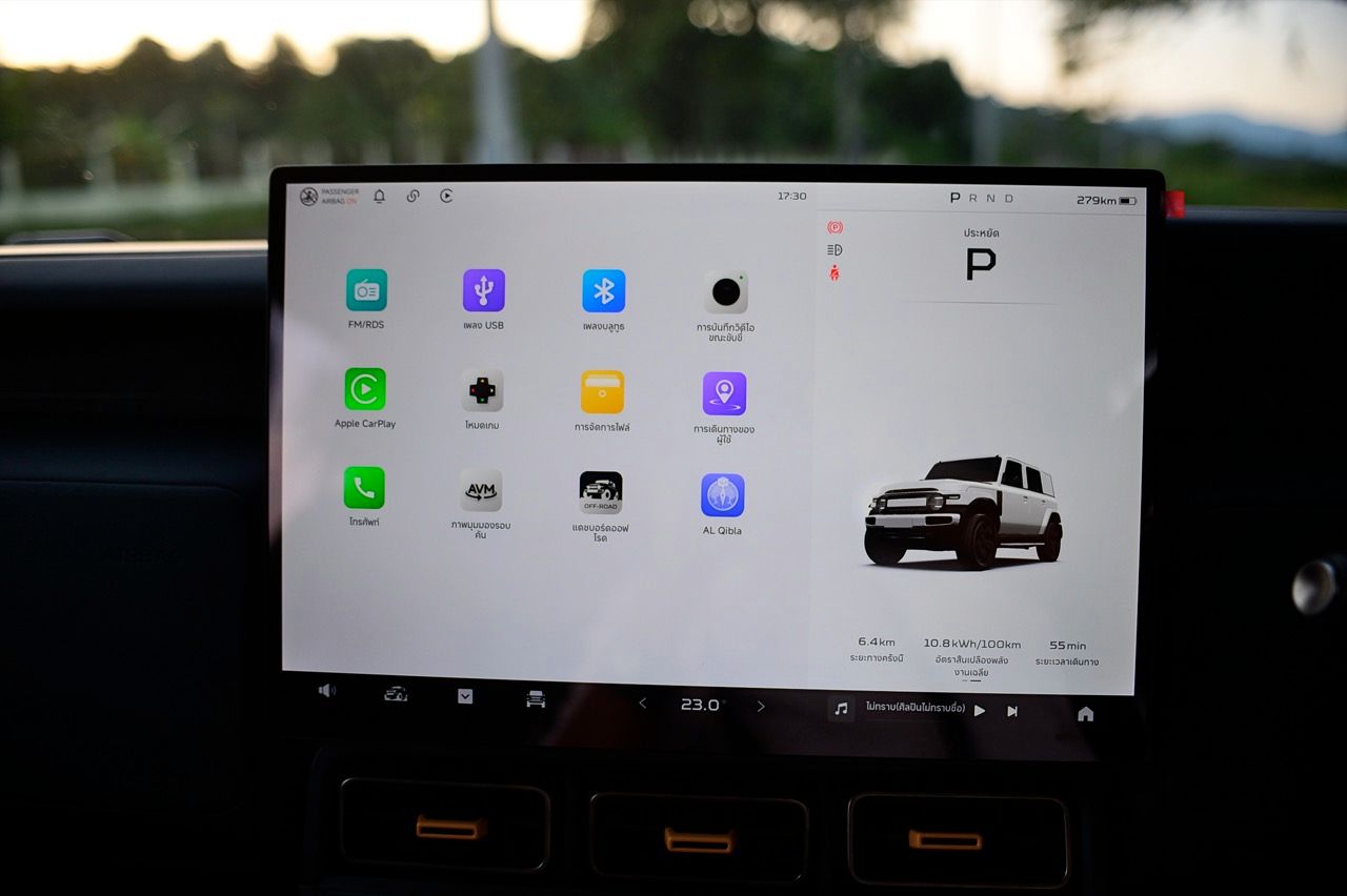 ของที่ระดมใส่มาให้ในรถออฟโรดราคาไม่ถึงล้าน เรียกว่าเกือบจะครบ เช่น ปัดน้ำฝนอัตโนมัติ Rain Sensor เบาะนั่งคนขับปรับไฟฟ้า 6 ทิศทาง พร้อมระบบระบายอากาศ Ventilation Seat เบาะนั่งผู้โดยสารตอนหน้า ปรับไฟฟ้า 4 ทิศทาง พร้อมระบบระบายอากาศ Ventilation Seat เหมือนกับเบาะคนขับแต่ปรับได้น้อยกว่า พื้นที่เบาะนั่งด้านหลังถือว่านั่งสบายพอใช้ได้ ไม่ได้กว้างมาก แต่มีพื้นที่วางขาพอเพียง เบาะหลังปรับพับได้แบบ 50 : 50 ตำแหน่งที่ใช้งานง่ายก็คือ ระบบปรับอากาศแบบอัตโนมัติ แยกสวิชท์สั่งงานแบบทรงกลมมาให้หมุนปรับระดับความแรงของพัดลมแอร์ ไม่ต้องวุ่นวายเข้าไปที่หน้าจอ เพื่อลด หรือเพิ่มพัดลมแอร์ในวันที่อากาศเดี๋ยวร้อนเดี๋ยวหนาว ปุ่มปรับประจกมองข้าง ปุ่มปรับบานกระจกประตู แยกมาให้ครบๆ และอยู่ในตำแหน่งเท่ๆ แต่ใช้งานจริง นิ้วก้อยก็ชอบไปโดนกับกระจกที่กำลังเลื่อนขึ้นลง แอร์ของ V23 มีระบบกรองฝุ่น PM 2.5 ติดตั้งมาให้จากโรงงาน ต้องดูกรองแอร์อีกทีว่าใช้งานได้นานขนาดไหนดเพราะกรองฝุ่นจิ๋วได้ขนาดนั้น