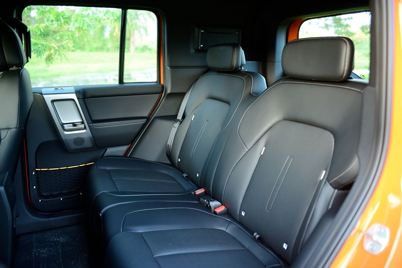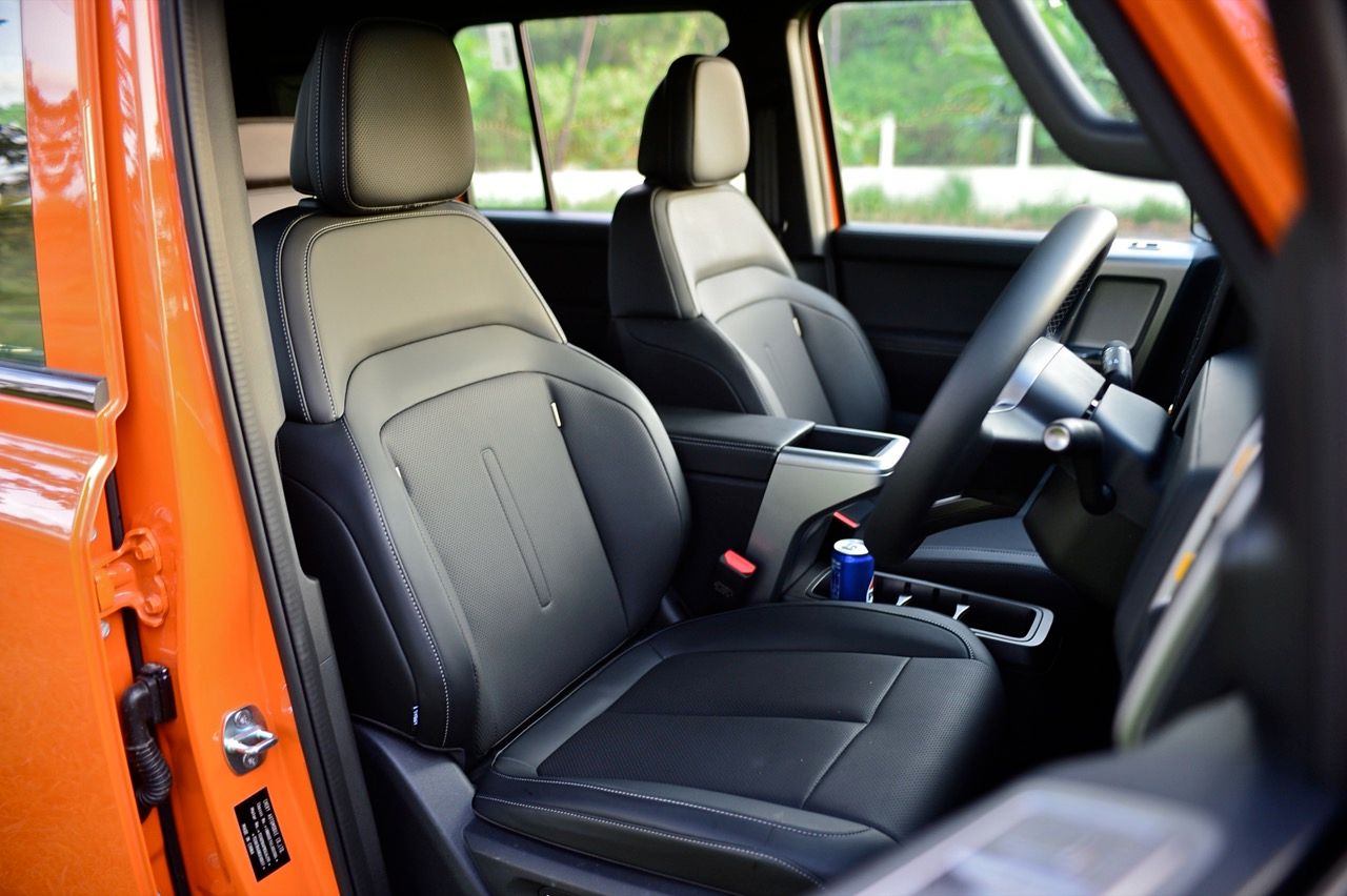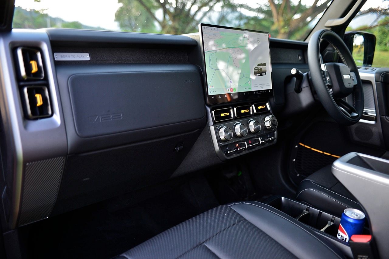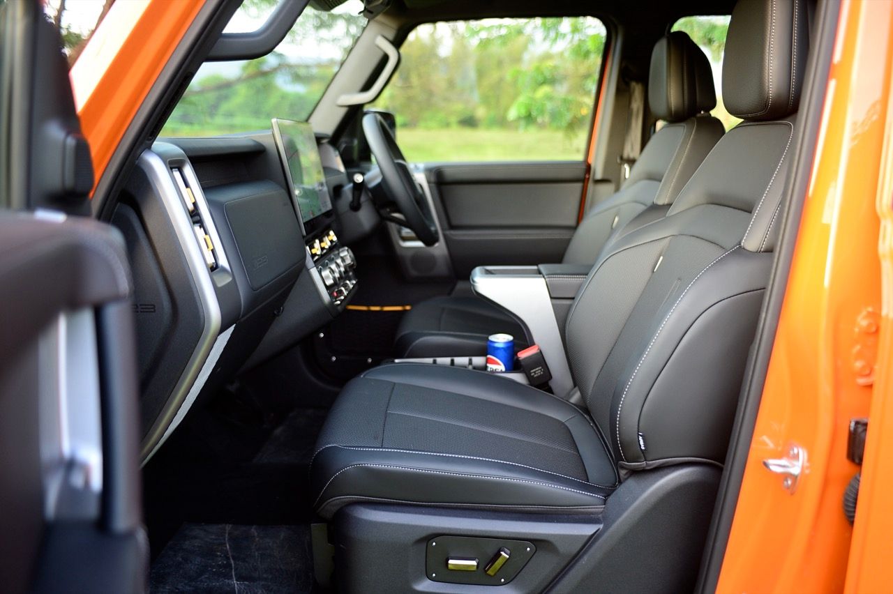 ของที่ระดมใส่มาให้ในรถออฟโรดราคาไม่ถึงล้าน เรียกว่าเกือบจะครบ เช่น ปัดน้ำฝนอัตโนมัติ Rain Sensor เบาะนั่งคนขับปรับไฟฟ้า 6 ทิศทาง พร้อมระบบระบายอากาศ Ventilation Seat เบาะนั่งผู้โดยสารตอนหน้า ปรับไฟฟ้า 4 ทิศทาง พร้อมระบบระบายอากาศ Ventilation Seat เหมือนกับเบาะคนขับแต่ปรับได้น้อยกว่า พื้นที่เบาะนั่งด้านหลังถือว่านั่งสบายพอใช้ได้ ไม่ได้กว้างมาก แต่มีพื้นที่วางขาพอเพียง เบาะหลังปรับพับได้แบบ 50 : 50 ตำแหน่งที่ใช้งานง่ายก็คือ ระบบปรับอากาศแบบอัตโนมัติ แยกสวิชท์สั่งงานแบบทรงกลมมาให้หมุนปรับระดับความแรงของพัดลมแอร์ ไม่ต้องวุ่นวายเข้าไปที่หน้าจอ เพื่อลด หรือเพิ่มพัดลมแอร์ในวันที่อากาศเดี๋ยวร้อนเดี๋ยวหนาว ปุ่มปรับประจกมองข้าง ปุ่มปรับบานกระจกประตู แยกมาให้ครบๆ และอยู่ในตำแหน่งเท่ๆ แต่ใช้งานจริง นิ้วก้อยก็ชอบไปโดนกับกระจกที่กำลังเลื่อนขึ้นลง แอร์ของ V23 มีระบบกรองฝุ่น PM 2.5 ติดตั้งมาให้จากโรงงาน ต้องดูกรองแอร์อีกทีว่าใช้งานได้นานขนาดไหนดเพราะกรองฝุ่นจิ๋วได้ขนาดนั้น