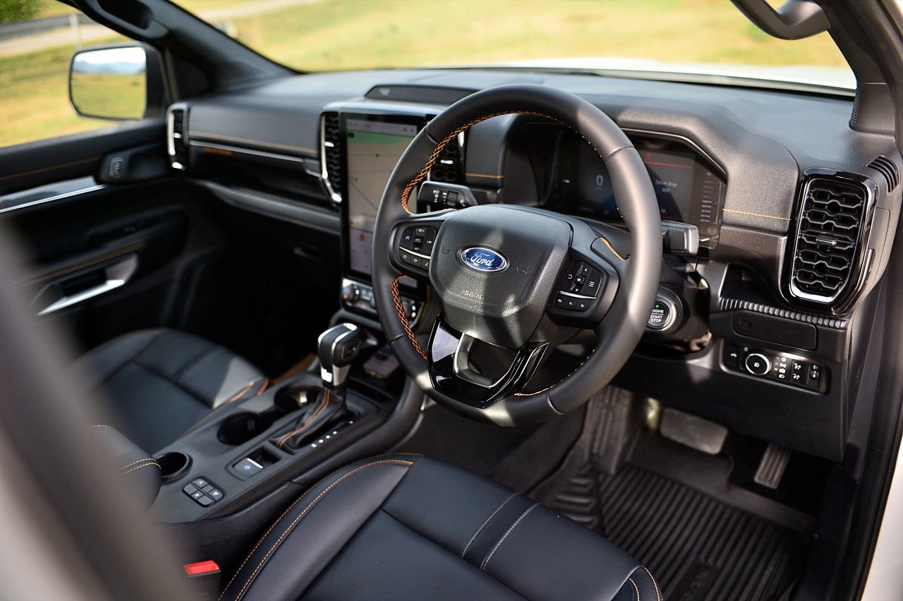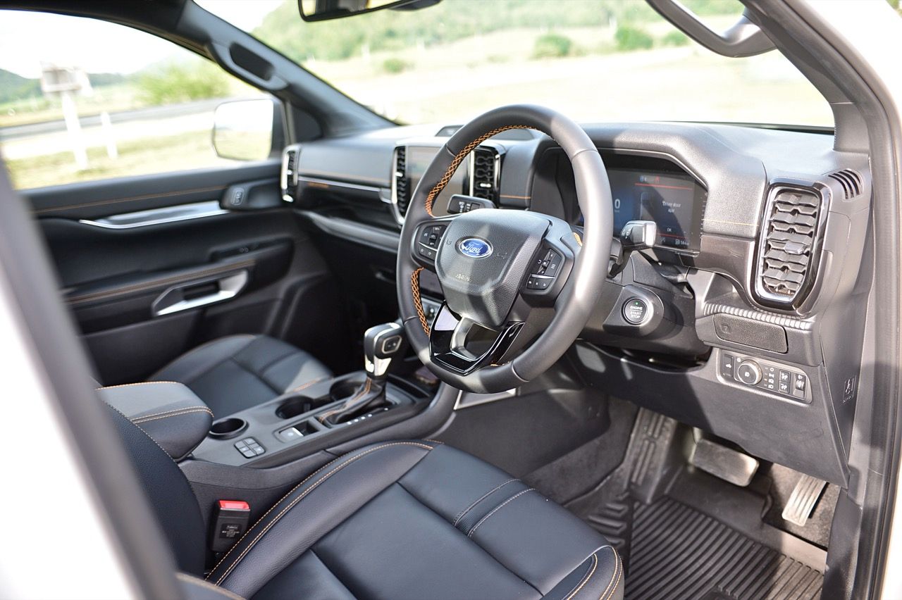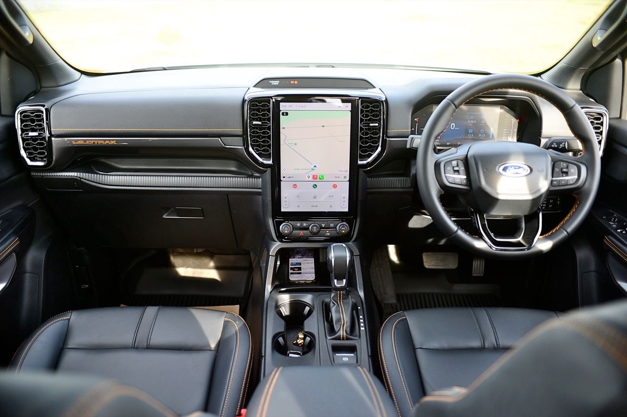งานตกแต่งภายในทำออกมาได้ดี มีความน่าใช้ พลาสติกภายในไม่ได้ใช้ของแพง แต่งานออกแบบชิ้นงานและการเลือกใช้โทนสีตกแต่งภายใน สื่อให้เห็นถึงความตั้งใจของ Ford ในการที่จะเอาชนะรถคู่แข่งเจ้าตลาดทั้ง Isuzu D-MAX และ Hilux REVO สำหรับ New Ranger Wildtrak มีฟังก์ชันใช้งานที่เหนือกว่ารถกระบะคู่แข่ง คนของ Ford พยายามปรับความสามารถในด้านการใช้งานที่หลากหลาย โดยเฉพาะการเชื่อมต่อกับอุปกรณ์ต่างๆ ทั้งโทรศัพท์ไร้สายและเครื่องเล่นเพลงแบบพกพา หรือช่องเชื่อมต่อ USB-C ห้องโดยสารภายในของ New Ranger มีการออกแบบให้รองรับการใช้งานที่ครอบคลุมผู้คนยุคใหม่ ด้วยเทคโนโลยีเชื่อมต่อสื่อสาร ซึ่ง Ford แจ้งว่า เป็นระบบฉลาดที่สุดเท่าที่บริษัทฯ เคยผลิตและใส่ในรถกระบะตระกูล Ranger ระบบเชื่อมต่อสั่งงานผ่านจอภาพขนาด 12 นิ้ว วางในแนวตั้งบริเวณคอนโซลกลาง ออกแบบให้เชื่อมต่อการสื่อสารจากที่บ้าน หรือที่ทำงาน เพื่อความสะดวกสบายในการใช้งาน