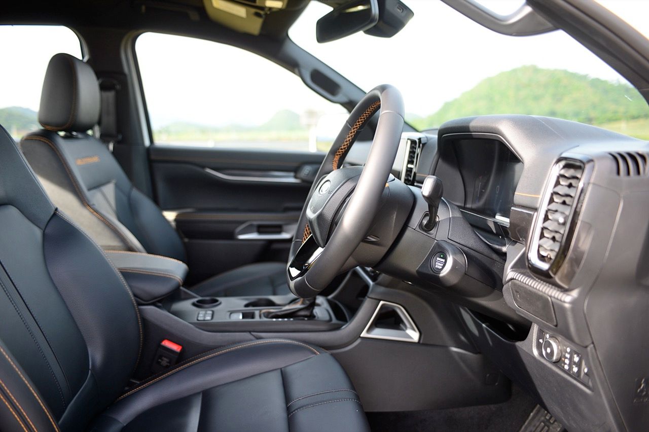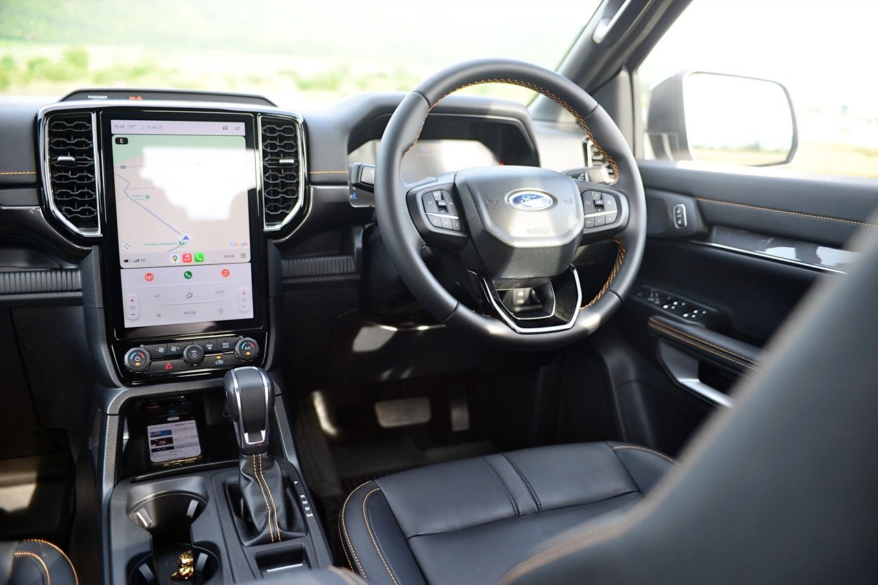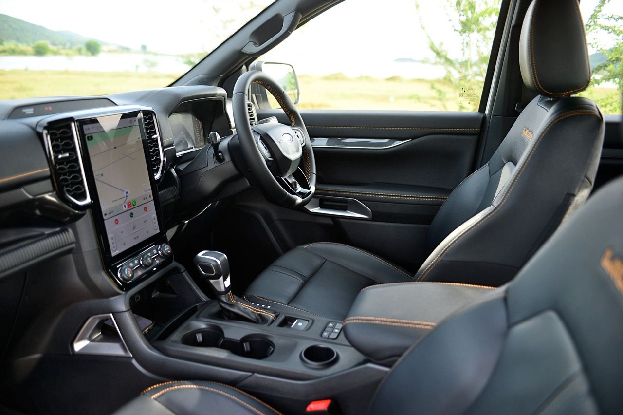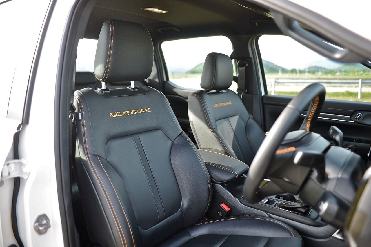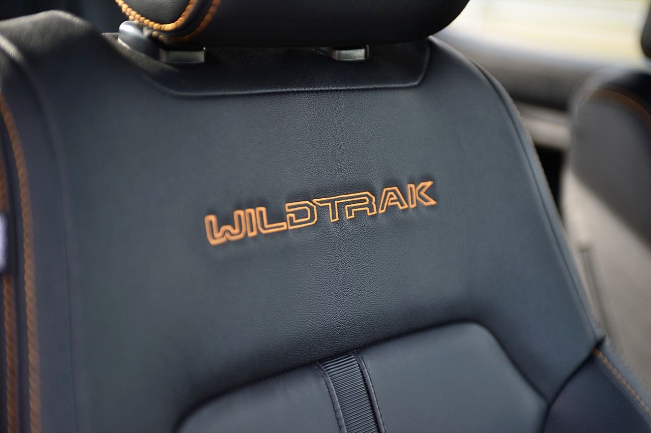 เบาะคู่หน้าปรับไฟฟ้า 8 ทิศทาง หุ้มด้วยหนังสังเคราะห์ เย็บเดินตะเข็บด้วยด้ายสีเหลือง พนักพิงหลังประทับตรา Wildtrak แดชบอร์ดคอนโซลขึ้นรูปด้วยพลาสติกสีเทาดำ แดชบอร์ดตรงหน้าเบาะผู้โดยสารตอนหน้า ออกแบบให้มีช่องเก็บของอยู่ตรงกลาง ด้านบนและล่างเป็นช่องเก็บของแบบมีฝาปิด ช่วยปรับให้ฟังก์ชันการใช้งานในจุดนี้มีความเหนือชั้นกว่ารถคู่แข่ง แดชบอร์ดด้านบนหุ้มด้วยหนังสังเคราะห์เย็บเดินตะเข็บด้วยด้ายสีเหลือง พลาสติกตกแต่งคาดกลางแดชบอร์ดสีดำเงามีตราสัญลักษณ์ Wildtrak พวงมาลัยสามก้านหุ้มหนังแท้เย็บเดินตะเข็บด้วยด้ายสีเหลือง คันเกียร์หน้าตาคล้ายของเดิมเนื่องจากการใช้สวิตช์เปลี่ยนตำแหน่งเกียร์แบบ +/- อยู่ที่หัวเกียร์เหมือนกับรุ่นที่ผ่านมา ซุ้มคันเกียร์หุ้มหนังแท้เย็บด้วยด้ายสีเหลือง ตำแหน่งของเบรกมือไฟฟ้าและแป้นปรับโหมดการขับเคลื่อน ปุ่มควบคุมการขับขี่ออฟโรดและช่องวางแก้วสองตำแหน่ง แผงประตูออกแบบใหม่ให้มือจับที่เปิดประตูด้านในอยู่ใกล้กับมือมากยิ่งขึ้น ที่เปิดประตูแบบใหม่ใช้แนวคิดย้อนยุคแต่ใช้งานได้ดี แผงประตูหุ้มด้วยหนังสังเคราะห์พร้อมวัสดุที่ให้ผิวสัมผัสนุ่มนวล