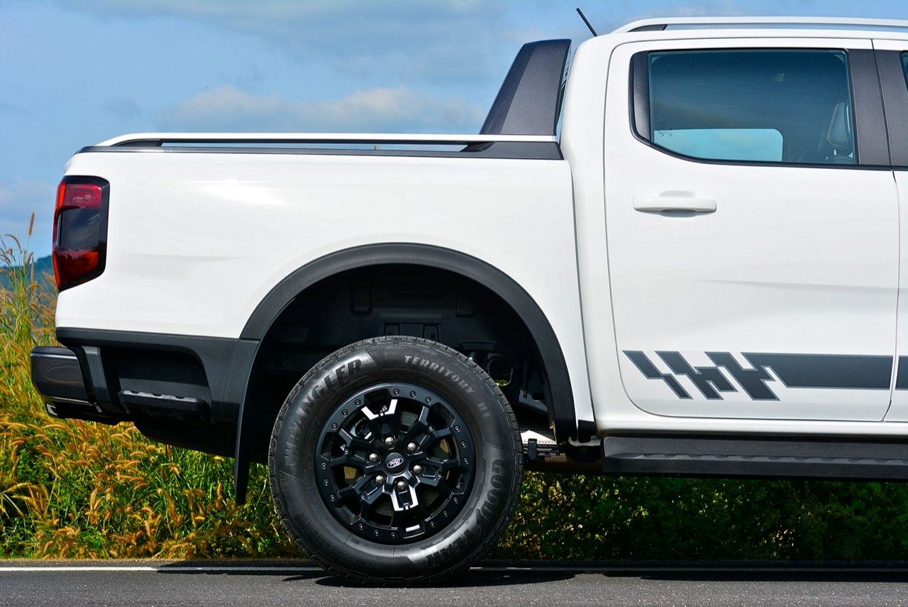 มิติตัวถัง มีขนาดความยาว 5,370 มิลลิเมตร กว้าง 1,918 มิลลิเมตร สูง 1,884 มิลลิเมตร ความสูงจากพื้นถึงใต้ท้องรถปรับใหม่เป็น 235 มิลลิเมตร เพื่อทำให้ลุยน้ำได้ลึกถึง 80 เซนติเมตร ความยาวฐานล้อเพิ่มเป็น 3,220 มิลลิเมตร น้ำหนัก 2,150 กิโลกรัม ด้านข้างบริเวณแก้มข้างติดตั้งพลาสติกตกแต่งสีดำพร้อมตัวอักษร Turbo กระจกมองข้างพร้อมไฟเลี้ยวในตัวกรอบสีดำ มือจับประตูสีเดียวกับตัวถัง แรคหลังคาสีเงิน ชุดแต่งสปอร์ตบาร์สีเทา-ดำ ขอบของกระบะมีราวแรคเพื่อการยึดกับสัมภาระต่างๆ ซุ้มล้อหุ้มพลาสติกสีดำ ล้ออัลลอยลายใหม่สีเทาดำขอบ 18 นิ้ว ห่อรัดด้วยยาง goodyear wrangler territory ht ไซส์ 255/65R18 ฝาท้าย ตำแหน่งไฟเบรกดวงที่สามอยู่ที่แถบของมือจับที่เปิดฝาท้าย ตัวอักษร Ranger และ Wildtrak ไฟท้ายแบบ LED ที่มีรูปทรงสีสันสวยงามเสริมให้ส่วนท้ายดูดีกว่าเดิม จุดที่ใช้งานได้ดีก็คือ กันชนหลังออกแบบให้เป็นที่เหยียบขึ้นไปบนกระบะหรือใช้การเหยียบที่ช่องบันไดด้านข้างที่อยู่ใกล้กับบริเวณใต้ไฟท้าย ฝาท้ายมีกลไกผ่อนแรงเปิด-ปิด ขอบของฝาท้ายออกแบบให้มีช่องที่สามารถติดตั้งเครื่องมือช่างสำหรับการทำงานภาคสนาม ด้านในของกระบะที่ห่อหุ้มด้วยพลาสติกกันกระแทกพวกไลเนอร์ มีช่องเสียบเพื่อจ่ายกระแสไฟฟ้าสองช่องทั้งแบบ 12V และ 230V ที่ต้องติดเครื่องยนต์หากใช้งาน เหมาะสำหรับการใช้ชีวิตกลางแจ้งแบบแคมป์เต็นท์ เนื่องจากตัวจ่ายกระแสไฟฟ้าใช้งานได้ง่ายกับอุปกรณ์ไฟฟ้าที่หลากหลาย ทั้งหลอดไฟส่องสว่าง หรืออุปกรณ์เตาแคมปิ้งไฟฟ้า