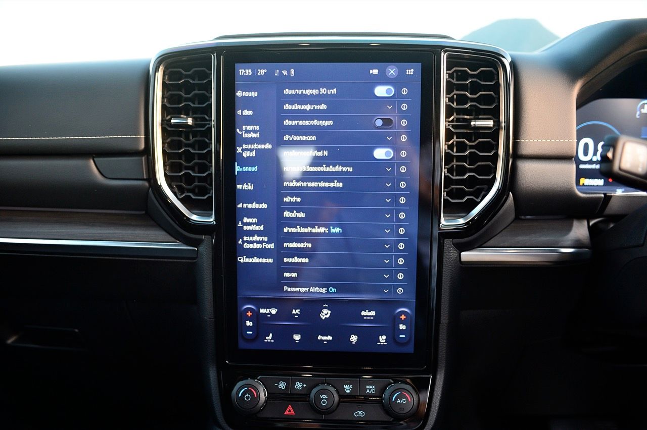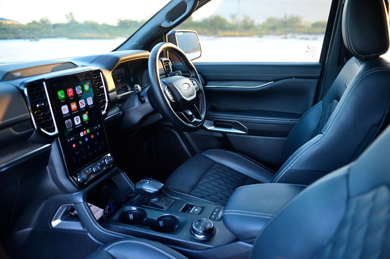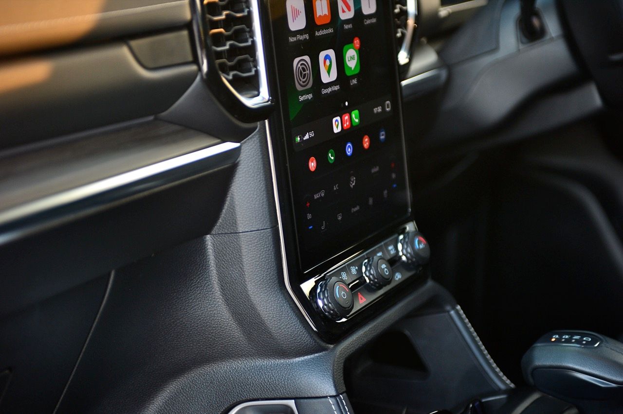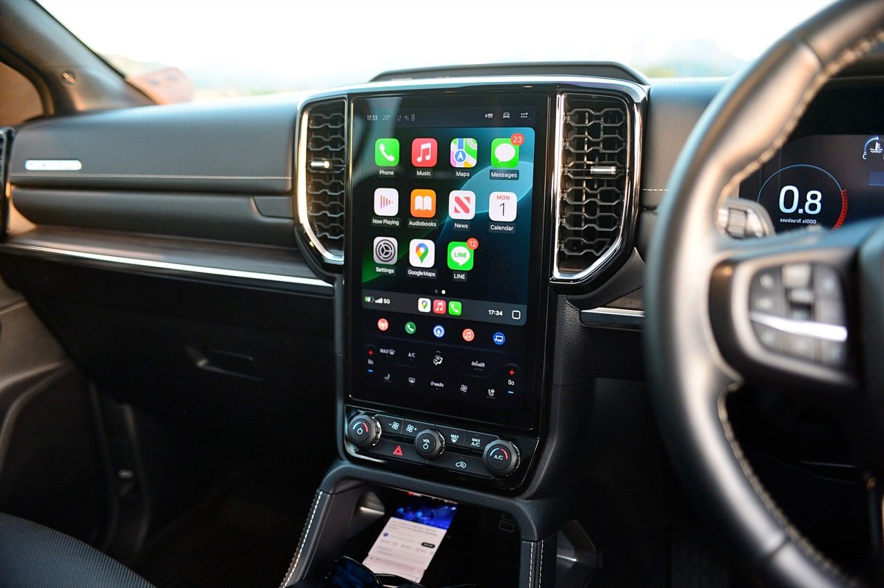 อุปกรณ์ภายในจัดเต็มตามราคาค่าตัวในกลุ่ม New Everest V6 กระจกหลังคาไฟฟ้า Panoramic Roof พร้อมม่านบังแดดไฟฟ้า แท่นชาร์จโทรศัพท์ไร้สาย หน้าจอภาพมาตรวัดบนหน้าปัดแบบสีขนาด 12.4 นิ้ว หน้าจอแสดงผลจอสีแบบสัมผัส Multi-Touch ขนาด 12 นิ้ว รองรับ Wireless Apple Carplay และ Android Auto SYNC® 4A ภาษาไทย พร้อมการเชื่อมต่อ Bluetooth ช่องต่อ USB 4 ตำแหน่ง ลำโพง B&O 12 ตำแหน่ง พร้อมซัฟวูฟเฟอร์ ระบบปรับอากาศดูอัลโซน กล้องมองภาพรอบคัน กล้องในโหมดออฟโรด ที่ทำออกมาให้สะดวกในการใช้งานก็คือ Wireless Apple Carplay หรือเชื่อมต่อผ่าน USB ที่มีมาให้ทั้ง Type A และ C
