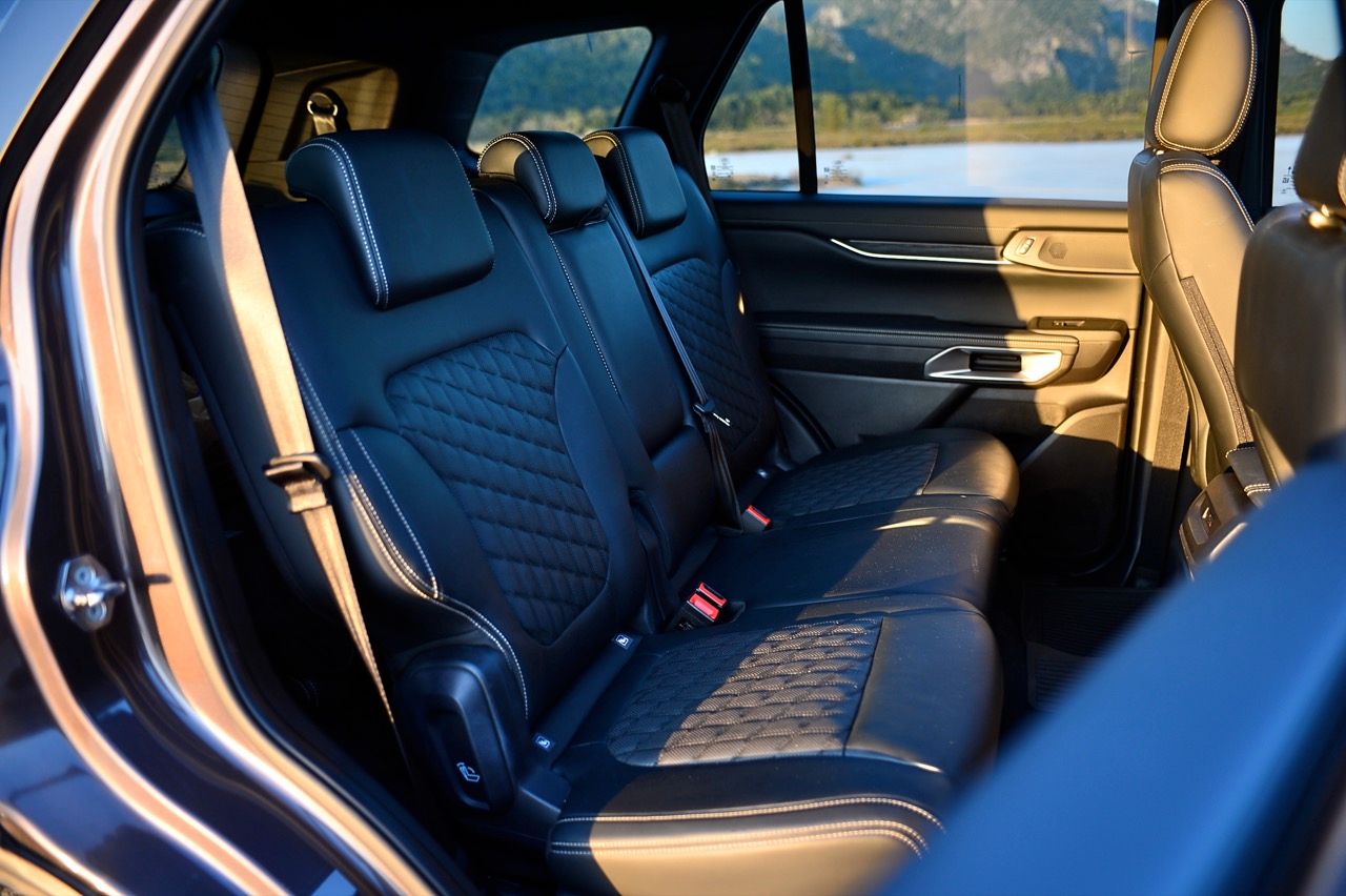 แดชบอร์ดมีขนาดใหญ่ทำจากพลาสติกคอนโซลกลางตกแต่งด้วยพลาสติกปั๊มขึ้นรูป โดยใช้รูปทรงที่เต็มไปด้วยเหลี่ยมมุมเพื่อเน้นความแข็งแกร่งที่เชื่อมโยงสอดรับกันทั่วทั้งคัน แดชบอร์ดคอนโซลสีเทาดำเพื่อลดการสะท้อนแสง เฉพาะเบาะคนขับและคนนั่งหน้าปรับด้วยไฟฟ้า 8 ตำแหน่ง เบาะผู้โดยสารตอนกลางแบบ 3 ที่นั่งออกแบบให้มีพื้นที่ของการนั่งยาวๆ ด้วยพื้นที่ของการวางเท้าและพื้นที่เหนือศีรษะที่ให้ความรู้สึกโปร่งโล่งไม่อึดอัด ซึ่งเป็นสไตล์การออกแบบภายในจาก Ford เบาะแถวกลางยังสามารถเลื่อนหรือพับได้เพื่อเปิดพื้นที่ให้กับเบาะผู้โดยสารแถวหลังสุด ซึ่งมีเบาะอีก 2 ที่นั่งเผื่อมาไว้ให้สำหรับครอบครัวที่มีสมาชิกร่วมเดินทางหลายคน เบาะแถวสุดท้ายมีพื้นที่ไม่มากนักสำหรับการวางเท้า คนที่มีรูปร่างสูงโย่งจึงไม่เหมาะที่จะนั่งโดยสารในตำแหน่งแถวหลังสุด เบาะแถวหลังจึงเหมาะกับเด็กๆ ที่มีรูปร่างเล็กมากกว่าจะให้คนที่มีเรือนร่างอวบอ้วนหรือสูงโย่งเข้าไปนั่ง เบาะแถวหลังสุดหรือแถวที่ 3 เมื่อปรับพับราบลงกับพื้นด้วยระบบไฟฟ้า เพื่อเพิ่มพื้นที่เก็บสัมภาระ