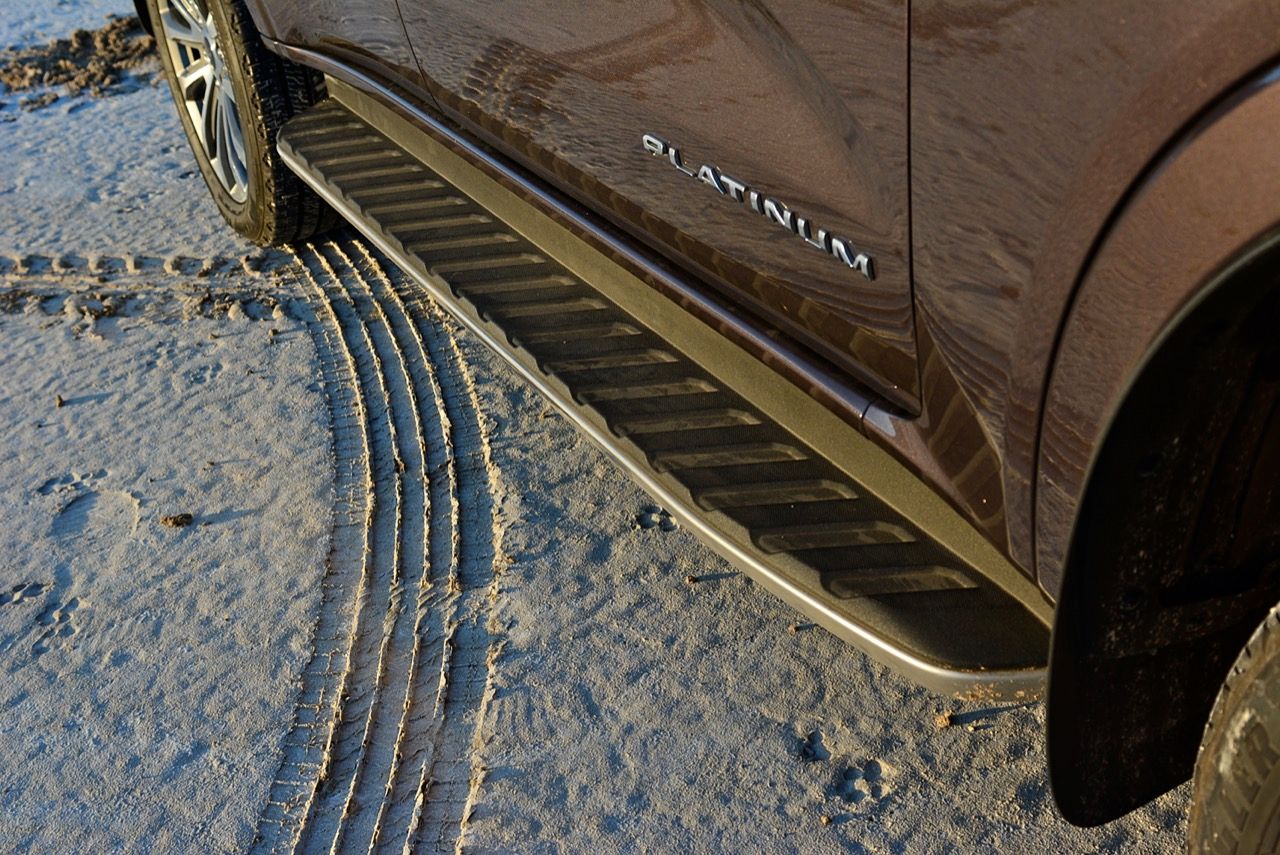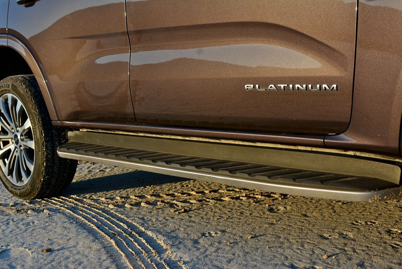 กระจังหน้าใหม่ทำจากพลาสติกสีเงินมีชิ้นงานกระจังสีดำอยู่ด้านใน ซุ้มล้อสีเดียวกับตัวถังที่ทำให้ดูคล้ายกับรถสเตชั่นแวกอนคันโตมากกว่าจะเป็นออฟโรดอเนกประสงค์สายลุย, ช่องระบายอากาศด้านข้างติดตั้งสัญลักษณ์ V6 เพื่อบ่งบอกถึงความสุด, ฝาครอบกระจกมองข้างสีเดียวกับตัวถัง กันชนหน้าแบ่งออกเป็นสองส่วน ปิดทับส่วนหน้าของรถทั้งหมด ส่วนล่างของกันชนหน้ามีชิ้นงานกันกระแทกทำจากพลาสติกสีเงิน ออกแบบให้มีช่องรับอากาศตรงกึ่งกลาง ไฟตัดหมอก LED ที่มุมด้านข้างของกันชนหน้า มีตำแหน่งของการติดตั้งที่ต่ำลงมา ช่วยเสริมให้มุมมองด้านหน้าของรถดูดุดัน รุ่น Platinum V6 3.0L มีอุปกรณ์ทั้งภายนอกและภายในที่ให้มาครบๆ ราวหลังคาแบบยกสูงสีเงิน รองรับการบรรทุกสัมภาระ 100 กิโลกรัม ขณะรถเคลื่อนที่ หลังคากระจก Panoramic Moonroof ไฟหน้าแบบ Matrix LED พร้อมระบบปรับมุมลำแสงไฟอัตโนมัติ และระบบป้องกันไฟแยงตา และระบบเปิด-ปิดไฟหน้า Matrix ทำงานอัตโนมัติแบบ Adaptive LED ระบบไฟอัตโนมัติที่ตอบสนองต่อแสงบนถนนรอบตัว ทำงานเร็วและมีกำลังในการส่องสว่างสูง ยกไฟสูงหรือเบี่ยงเบนลำแสงไม่ให้ไปรบกวนรถที่แล่นสวนมาหรือรถที่อยู่ด้านหน้า ไฟหรี่กลางวันและไฟเลี้ยวหลอด LED ไฟหน้ายังมีระบบ Active cornering light ไฟส่องสว่างด้านข้างทำงานตามองศาของพวงมาลัย เปิดมุมมองด้านข้างเมื่อต้องการจะเลี้ยวในที่มืด ทำงานควบคู่ไปกับไฟหน้าเวลาขับขี่ตอนกลางคืน ฝากระโปรงหน้าหนักอึ้งปราศจากโช้คผ่อนแรงเปิด