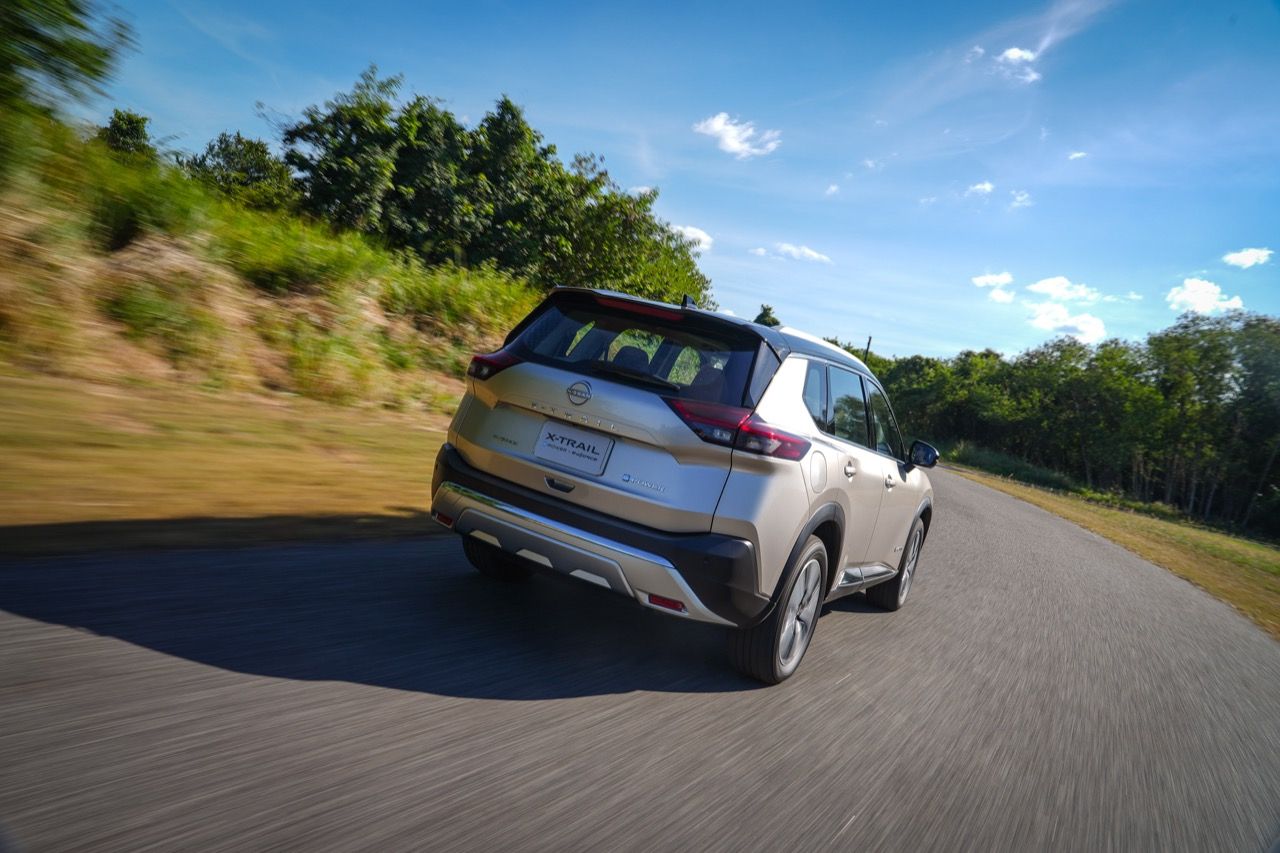 X-Trail e-Power พร้อมระบบ e-4orce สร้างความประทับใจแรกพบที่ดี มันเงียบและนุ่มนวลในย่านความเร็วต่ำ วิ่งด้วยมอเตอร์เพียวๆ ได้สองหรือสามกิโลเมตร หรือมากกว่านั้นนิดหน่อย ในย่านความเร็วต่ำ มอเตอร์ไฟฟ้าก็ไม่ได้ต้องการพลังไฟเพื่อป้อนให้กับมอเตอร์ขับเคลื่อน เครื่องยนต์สันดาปภายในจึงไม่จำเป็นต้องเร่งรอบสูงต่อเนื่อง X-Trail ใหม่ ยังติดตั้งระบบ ANC (ระบบตัดเสียงรบกวนแบบแอคทีฟ) ทำให้เสียงเครื่องยนต์สันดาปภายในเงียบกว่าปกติ และแทบจะไม่ได้ยินเสียงการทำงานของเครื่องยนต์เมื่อไม่ได้เร่งรอบ แต่.....การออกตัวจากจุดหยุดนิ่ง ไม่ได้อยู่ในระดับเดียวกับรถยนต์ไฟฟ้ามอเตอร์คู่ ทั้งแรงดึงหนักๆ และการตอบสนองที่ว่องไวของรถยนต์ไฟฟ้ามอเตอร์คู่ เนื่องจากเครื่องยนต์สันดาปภายใน ต้องใช้เวลาในการเร่งรอบจนถึงระดับที่สร้างพลังงานสูงสุดได้ ระบบ e-Power ตอบสนองได้เร็วขึ้นเมื่อขับด้วยความเร็วปานกลางถึงสูง เหยียบคันเร่งจนสุด ทำให้ระดับเสียงจากห้องเครื่องยนต์ดังขึ้นกว่าเดิมไม่มากนัก เทคโนโลยี e-4orce ดูเหมือนจะมีประสิทธิภาพในการควบคุมเรือนร่างขณะขับเคลื่อน เพราะ X-Trail ไม่กดหัวรถลงเมื่อเบรกอย่างรุนแรง และไม่ย้วยเมื่อเร่งความเร็วอย่างต่อเนื่องในโค้งสลับซ้าย-ขวา