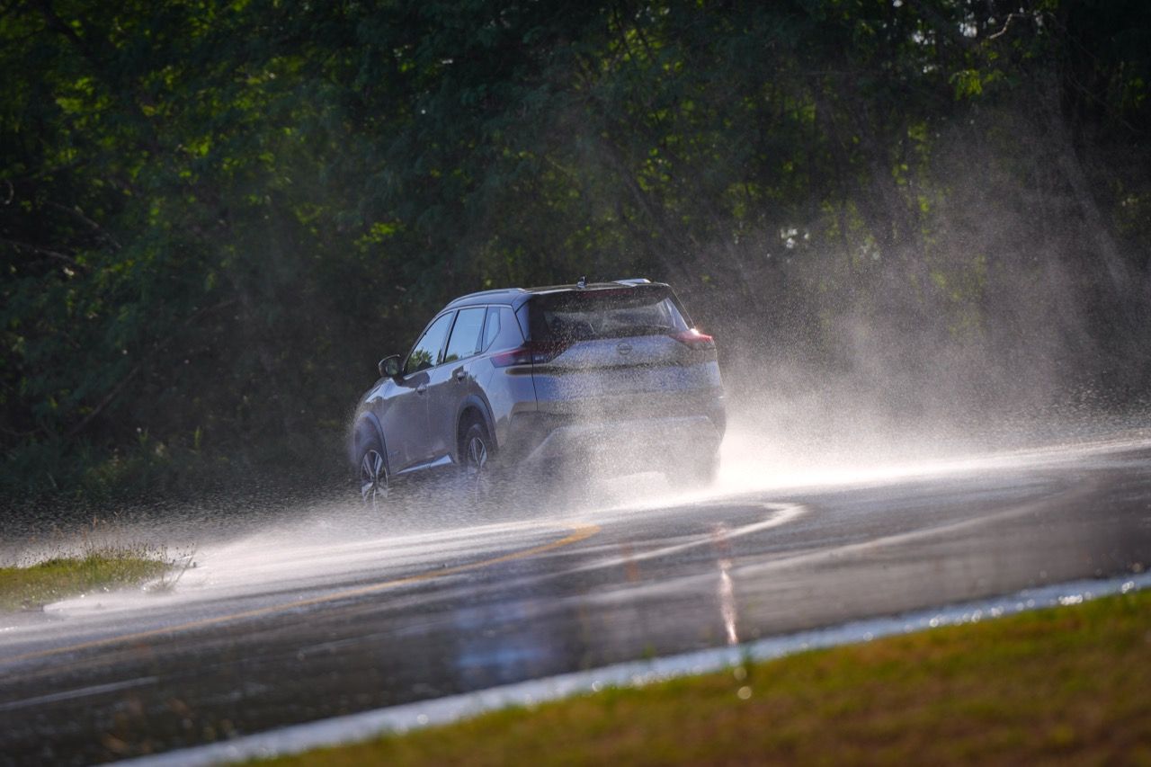 การขับขี่ควบคุม และสมรรถนะโดยรวมนั้นถือว่าดีเลยทีเดียว X-Trail e-4orce ขับขี่ได้อย่างราบรื่นและมั่นใจบนถนนลาดยางที่มีโค้งวกไปวนมา e-4ORCE ทำงานได้ดี ช่วยให้ X-Trail มุ่งไปในทิศทางที่ต้องการอย่างแม่นยำ สร้างความมั่นใจแม้ขับเร็วบนถนนลาดยางที่เปียกชื้นเจิ่งนองไปด้วยน้ำ ความสามารถในการส่งกำลังจากด้านหน้าไปด้านหลังหรือจากด้านข้างไปอีกข้างหนึ่งได้อย่างรวดเร็วเกือบจะในทันที ช่วยให้รถยึดเกาะถนนได้ดีและเสถียรภาพ