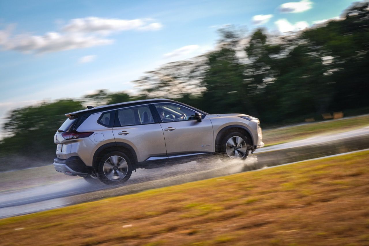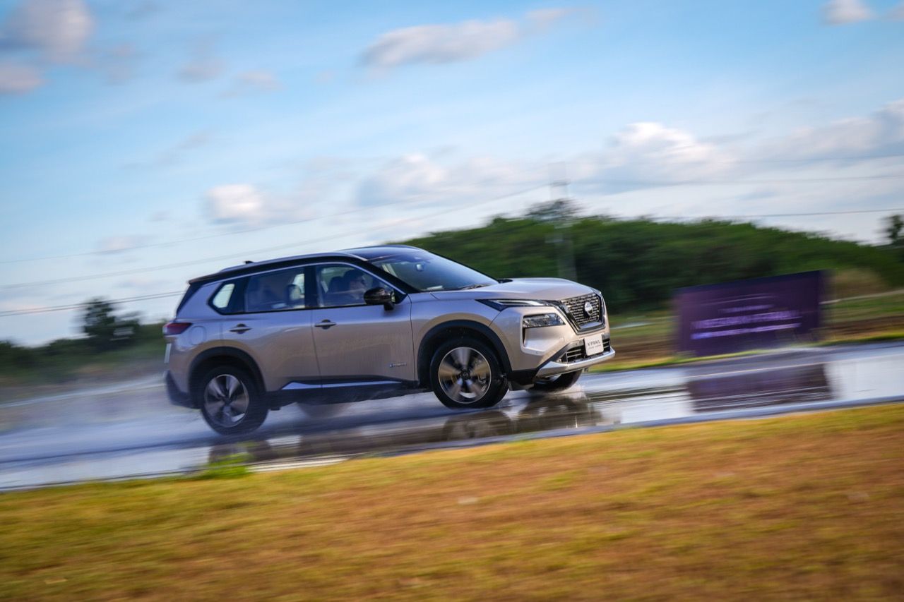 การขับทดสอบสั้นๆ ในสนามทดสอบ Yokohama แถบระยอง ซึ่งมีทั้งทางลาดยางขึ้นลงเนินเตี้ยๆ สลับโค้งสารพัดรูปแบบ ต้องยอมรับว่าสนามทดสอบยางแห่งนี้มีโค้งเยอะกว่าสนามแข่งแบบเทียบกันไม่ติด ระบบขับเคลื่อนสี่ล้อ e-4orce กับช่วงล่างและชุดบังคับเลี้ยวไฟฟ้านั้นทำให้รู้สึกประทับใจ เมื่อขับเร็วขึ้นในรอบท้ายๆ ทุกระบบตอบสนองรวดเร็วและทำงานประสานกันได้อย่างไหลลื่น Yokohama มีเส้นทางเป็นถนนบนภูเขาที่คดเคี้ยว ไปจนถึงสนามทดสอบความเร็วสูงบนผิวถนนลาดยางโดยเฉพาะ ทุกอย่างก็รู้สึกง่ายดายอย่างเหลือเชื่อแม้ขณะวิ่งผ่านสถานีที่มีน้ำเจิ่งนองอยู่บนพื้นผิว ไม่ต้องสงสัยเลยว่าทุกเส้นทางของสนามทดสอบแห่งนี้ ถูกออกแบบมามาเพื่อเน้นจุดแข็งของรถ ให้โผล่ออกมา โดยเฉพาะการยึดเกาะของยางเกาหลี hankook ventus s1 evo3 SUV ยางสมรรถนะสูงพิเศษ (UHP) สำหรับรถ SUV ที่เน้นการยึดเกาะถนนดีเยี่ยมทั้งบนถนนเปียกและแห้ง ควบคุมพวงมาลัย บังคับทิศทางมุดเข้าออกโค้งในสนามทดสอบอย่างแม่นยำ ให้ความนุ่มนวลและประหยัดน้ำมัน เทคโนโลยี ProMileage และ HSSC Silica compound เหมาะกับรถ SUV ที่ต้องการสมรรถนะสปอร์ตและความสบาย Ventus S1 evo3 SUV (K127) ใช้เป็นยางติดรถสำหรับแบรนด์ยุโรปดัง ซึ่งก็ทำหน้าที่ได้ดีและเข้ากันกับช่วงล่างหนึบๆ โดยภาพรวม X-Trail ไม่ใช่รถอเนกประสงค์ทรงสปอร์ตหรือรถเอสยูวีออฟโรดสายลุย แต่เป็นรถครอสโอเวอร์ครอบครัวที่สามารถใช้งานได้อย่างสมดุลในทุกสภาพอากาศและทุกสภาพภูมิประเทศ