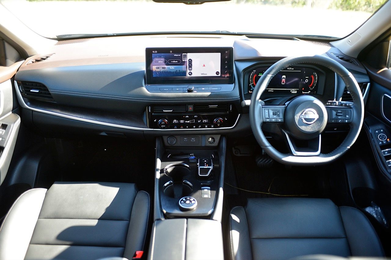 X-Trail มีห้องโดยสารที่หรูหราพอใช้ได้ งานประกอบและคุณภาพของวัสดุในรถคันทดสอบที่ได้ลองขับนั้นถือว่าทำออกมาได้ดี การออกแบบห้องโดยสาร ผสมผสานเทคโนโลยีและการใช้งานจริงได้อย่างลงตัว จอแสดงผลกลางและจอภาพมาตรวัดแบบดิจิทัลมาครบ จอแสดงผลมาตรวัดและระบบอินโฟเทนเมนท์ที่คอยให้ความบันเทิง มีขนาด 12.3 นิ้วทั้งสองจอ รวมถึงจอแสดงผล Head-Up Display ขนาดใหญ่ที่ Nissan อ้างว่าให้พื้นที่มุมมอง 35.5 นิ้ว