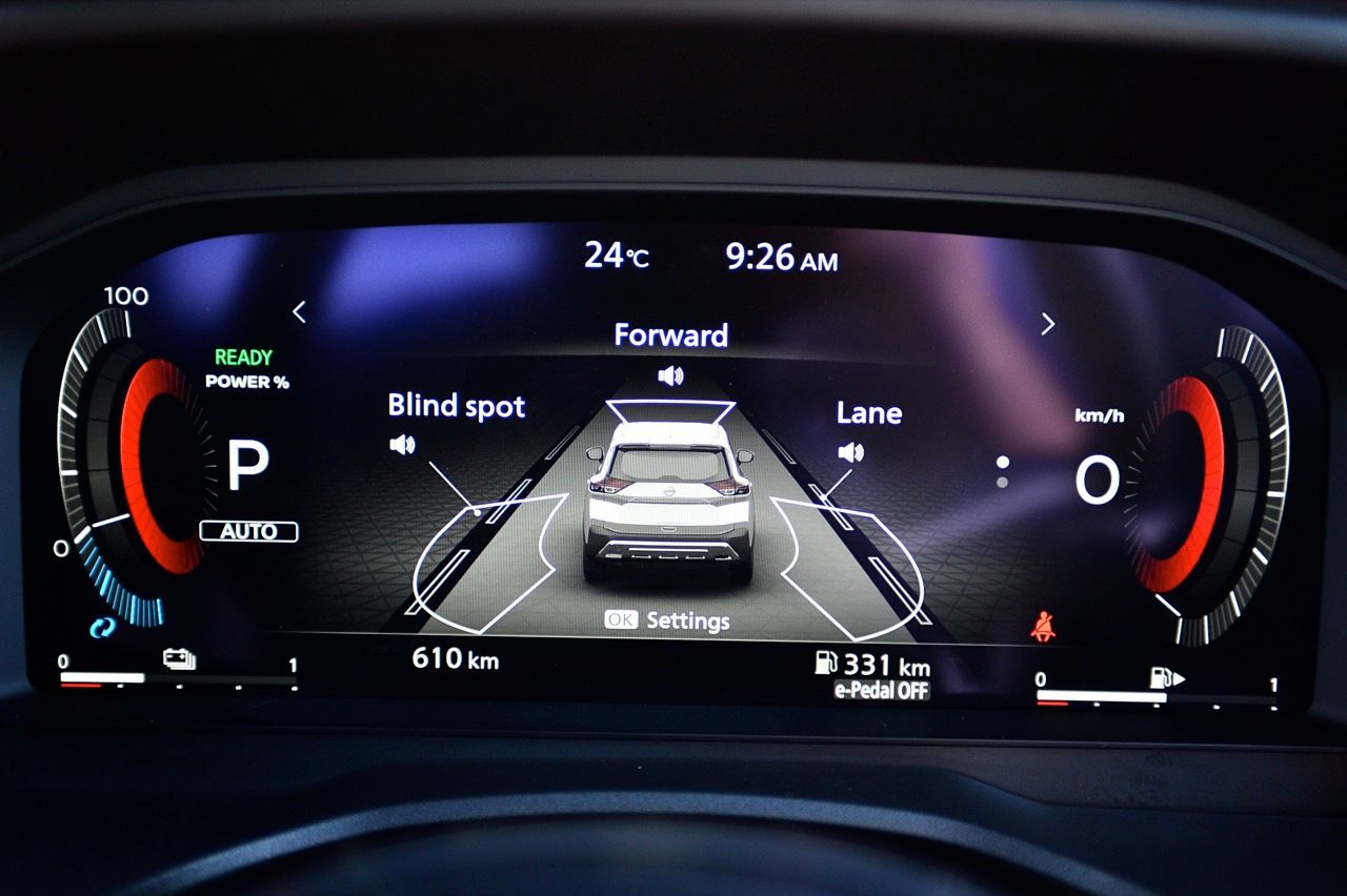 คุณภาพของหน้าจอยังไม่สามารต่อสู้กับความคมชัดของจอภาพในรถยนต์ไฟฟ้าบางรุ่นของจีน จอภาพของ X-Trail ไม่คมหรือสดใสเท่ารถคู่แข่ง ในระดับราคาเดียวกัน แต่ New X-Trail มีพื้นที่เก็บของเพียบ เบาะหลังที่ปรับเปลี่ยนการพับได้ ทั้งเลื่อนและปรับเอน เมื่อเลือกใช้แบบ 6 ที่นั่ง นอกจากนี้ยังมีระบบพับเบาะแบบ 40/20/40 ที่ใช้งานได้สะดวก ทำให้การขนขอชิ้นยาวๆ เป็นเรื่องง่าย เบาะแถวสามมีพื้นที่วางขาไม่มากนัก เหมาะกับเด็ก หรือหมาแมวมากกว่าจะให้คนตัวสูงๆ ลงไปนั่ง