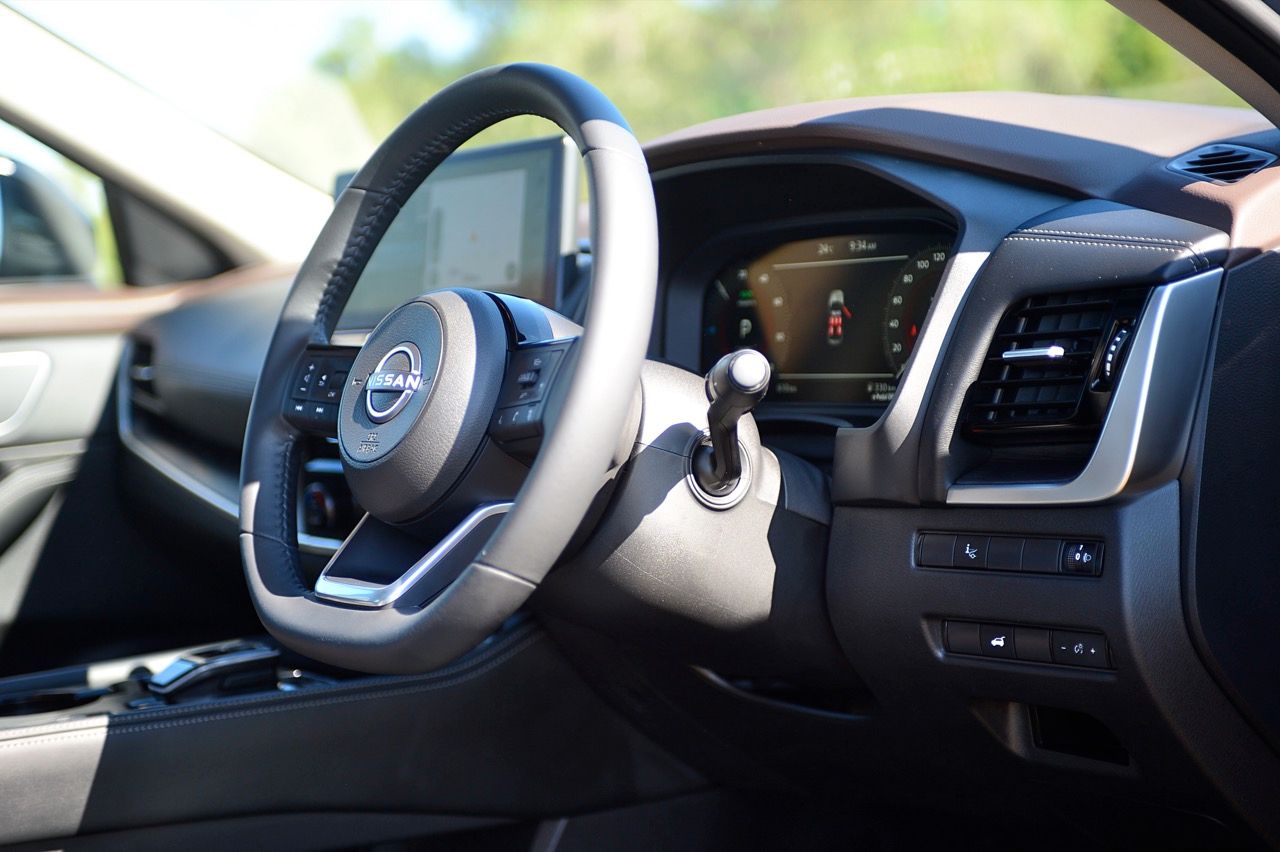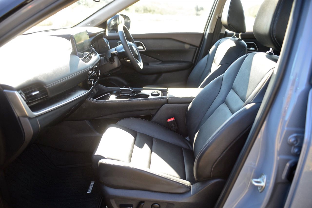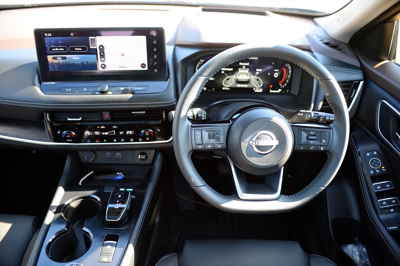 จริงๆแล้ว X-Trail ไม่ควรถูกมองว่าเป็นรถเจ็ดที่นั่ง แต่เป็นรถห้าที่นั่งมากกว่า โดยมีเบาะเสริมอีกสองตัวในบริเวณส่วนท้าย หากจะนั่งโดยสาร ต้องเลื่อนเบาะแถวกลางไปข้างหน้าพอสมควร เพื่อเปิดพื้นที่วางขาสำหรับเบาะแถวที่สาม ระบบปรับอากาศแบบสามโซนพร้อมการควบคุมอุณหภูมิอิสระ ม่านบังแดดที่ประตูหลังแบบในตัว พื้นที่เก็บสัมภาระท้าย 575 ลิตร เป็นหนึ่งในรถที่มีพื้นที่เก็บสัมภาระมากสุดในประเภทเดียวกัน ระบบจัดเก็บสัมภาระ Divide-n-Hide เพิ่มความอเนกประสงค์ ด้วยเบาะหลังแบบพับได้และฝาท้ายไฟฟ้า หลังคาซันรูฟพาโนรามา จอสัมผัสขนาด 12.3 นิ้ว พร้อมระบบนำทาง จอแสดงผล HUD บนกระจกหน้ารถขนาด 10.8 นิ้ว ระบบชาร์จโทรศัพท์ไร้สาย เชื่อมต่อ Apple CarPlay แบบไร้สาย จอภาพมาตรวัดดิจิทัล TFT ขนาด 12.3 นิ้ว ปรับการแสดงผลได้สองแบบ