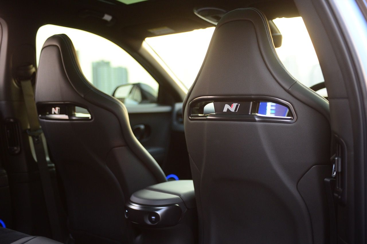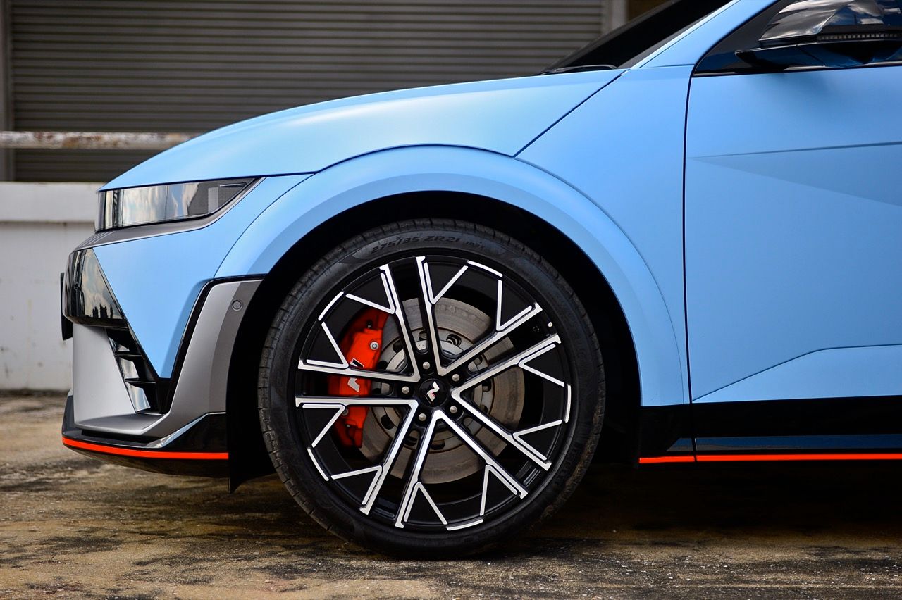 เพลาขับอิสระ ได้รับแรงบันดาลใจจากรถแข่ง World Rally Championship ของ Hyundai มีการเสริมความแข็งแรงของโครงสร้าง เพื่อให้ทนทานต่อแรงบิดมหาศาลของมอเตอร์ไฟฟ้า ในขณะที่น้ำหนักของชุดเพลาขับก็ลดลง มีการเสริมความแข็งแกร่งให้กับคอพวงมาลัยเพื่อการตอบสนองและการตอบรับจากล้อที่ดีขึ้น ในขณะที่พวงมาลัยพาวเวอร์มีอัตราการบังคับเลี้ยวที่สูงขึ้น การตอบสนองแรงบิดที่เพิ่มขึ้น N Pedal ได้รับการติดตั้งเพื่อปรับปรุงการตอบสนองของคันเร่งและความไวในการรับน้ำหนักของรถ การใช้ i-Pedal ซึ่งใช้การเบรกแบบ regenerative braking เพื่อชะลอความเร็วและจ่ายพลังงานกลับเข้าไปในแบตเตอรี่ ช่วยในการถ่ายเทน้ำหนักและเข้าโค้งได้คมชัดยิ่งขึ้น เครื่องมือเพิ่มประสิทธิภาพการดริฟต์และการตั้งค่า 11 รูปแบบสำหรับการกระจายแรงบิดบนเพลาหน้า-หลัง เฟืองท้ายลิมิเต็ดสลิปแบบอิเล็กทรอนิกส์ช่วยเพิ่มประสิทธิภาพการเข้าโค้ง
