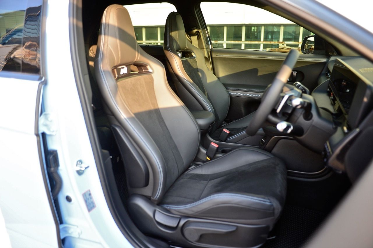 ioniq 5 N หนัก 2.1 ตัน แต่เปลี่ยนทิศทางได้อย่างรวดเร็ว มันเป็นรถไฟฟ้าที่มีฝีเท้าจัดจ้าน เร่งความเร็วพรวดๆ บนทางตรงยาวได้เร็วมาก ตัวเลข 0-100 ของ Ioniq 5 N แซงขึ้นหน้า BMW M2 CS เมื่อออกตัวไปพร้อมๆ กัน การบังคับเลี้ยวนั้นชัดเจนว่าเบากว่า AMG GT-R รถสันดาปภายในพลัง 600 แรงม้าที่ผมเคยขับในสนามแข่งที่บุรีรัมย์ น้ำหนักของรถที่หนักอึ้งไม่ได้สร้างปัญหาในการเลี้ยวเร็วๆ ที่โค้งมุมแคบต่อเนื่อง จากโค้ง 10 ไปจนถึงโค้ง 18 สนามแข่งโคเรียนอินเตอร์เนชันแนลสปีดเวย์มีโค้งที่เจ้าเล่ห์ดักอยู่เต็มไปหมด แต่ระบบเฉลี่ยแรงบิดในชุดขับเคลื่อนสี่ล้อทำให้การยึดเกาะอยู่ในเกณฑ์ที่ยอดเยี่ยม ความรู้สึกในโค้งเหมือนกับ Audi RS 3 Quattro ที่โคตรเกาะและมีกำลังเพิ่มขึ้นมาอีกหนึ่งเท่า ระบบรักษาเสถียรภาพทำหน้าที่ควบคุมมวลน้ำหนักของรถได้ดี เลี้ยวได้อย่างเฉียบคมและโคตรเร็ว ฟีลลิ่งตอนเลี้ยวให้ความรู้สึกเบากว่าที่ควรจะเป็น การขับในเมือง คันเร่งตอบสนองทันทีทันควันและรุนแรงมากจนต้องเพิ่มความระวังให้มาก แต่ความสนุกที่แท้จริงเกิดมาจากการใช้เวลาทำความเข้าใจโหมดการขับขี่ทั้งหมด จากนั้นก็เปิดใช้งานไปทีละโหมด แล้วขับทดสอบในสนามแข่งเพื่อจับความรู้สึก และเรียนรู้เพื่อเข้าใจการทำงานทั้งหมดของรถ