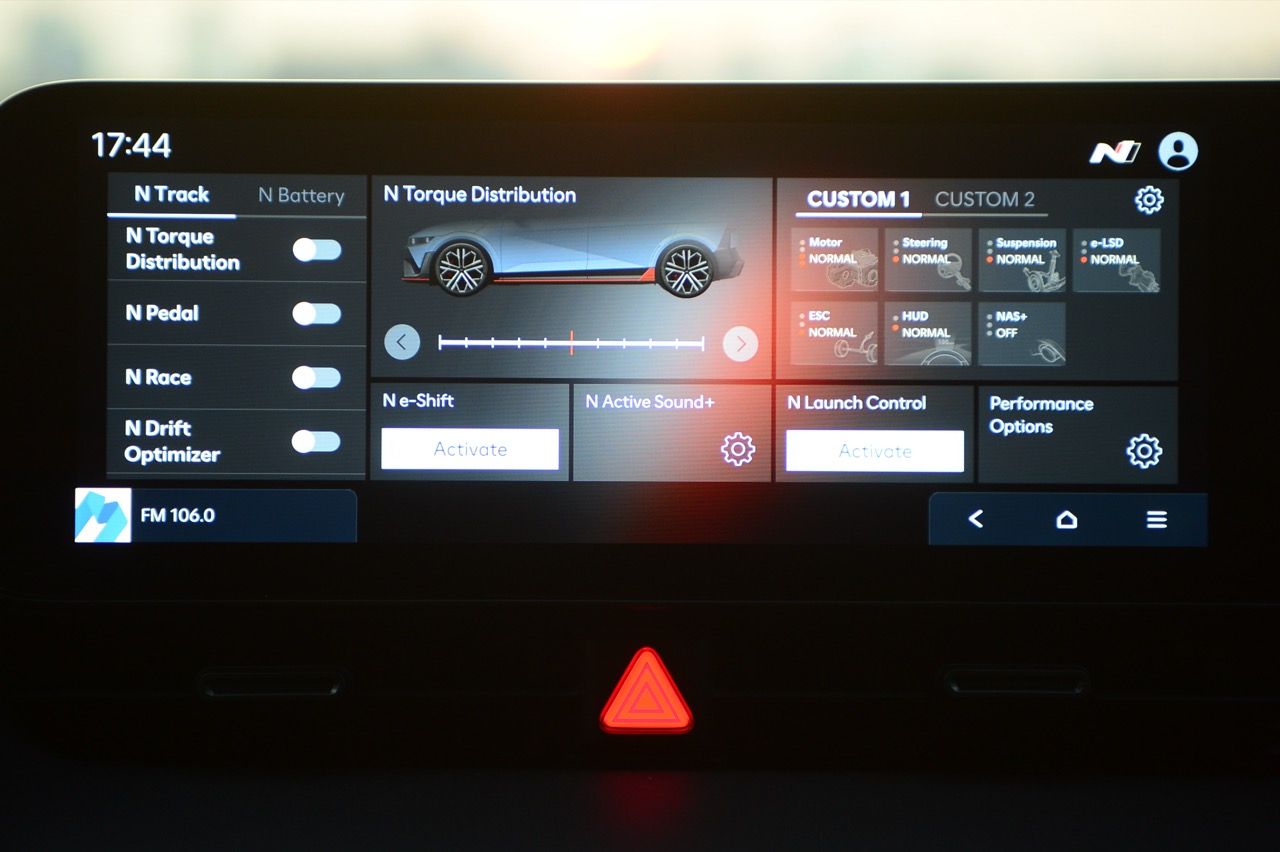 IONIQ 5 N มีระบบปรับการกระจายแรงบิด ซึ่งทำงานได้ทั้งในโหมด AUTO และให้คนขับกำหนดเอง ซึ่งคุณสามารถถ่ายแรงบิดไปข้างหน้า 100% (ปิดการทำงานมอเตอร์หลัง) ก็ได้ ถ่ายแรงบิดไปข้างหลัง 100% ก็ได้ หรือสามารถกำหนดอัตราส่วนผกผันระหว่างหน้ากับหลังเองก็ได้ (ถ้าจำไม่ผิดอันที่จริง Tesla Model 3 Performance ก็ทำได้) ลองคิดดูในแง่ของคนที่จ่ายเงินซื้อรถมาคันหนึ่ง เพื่อฝึกฝนทักษะในการขับ จะดีแค่ไหน ถ้าคุณซื้อรถคันเดียว แล้วสามารถให้คุณฝึกควบคุม อาการหน้าสะบัดยามออกตัวของรถขับหน้า ฝึกดริฟต์กวาดท้ายแบบรถขับหลัง ฝึกการโยนหลอกก่อนเข้าโค้ง (Scandinavian Flick) แบบแรลลี่บนพื้นลื่นๆ อย่างที่ต้องทำในรถขับสี่ หรือเอาอาการขับแบบกึ่งสมดุล ท้ายสาดน้อย ไม่ต้องหักสวนเคาน์เตอร์สเตียร์ แล้วออกโค้งได้ไว แบบพวกที่ถ่ายกำลังหน้า 40% หลัง 60% คุณทำทั้งหมดนี้ได้ โดยการถูนิ้วบนหน้าจอเมื่อไรก็ได้ที่ต้องการ