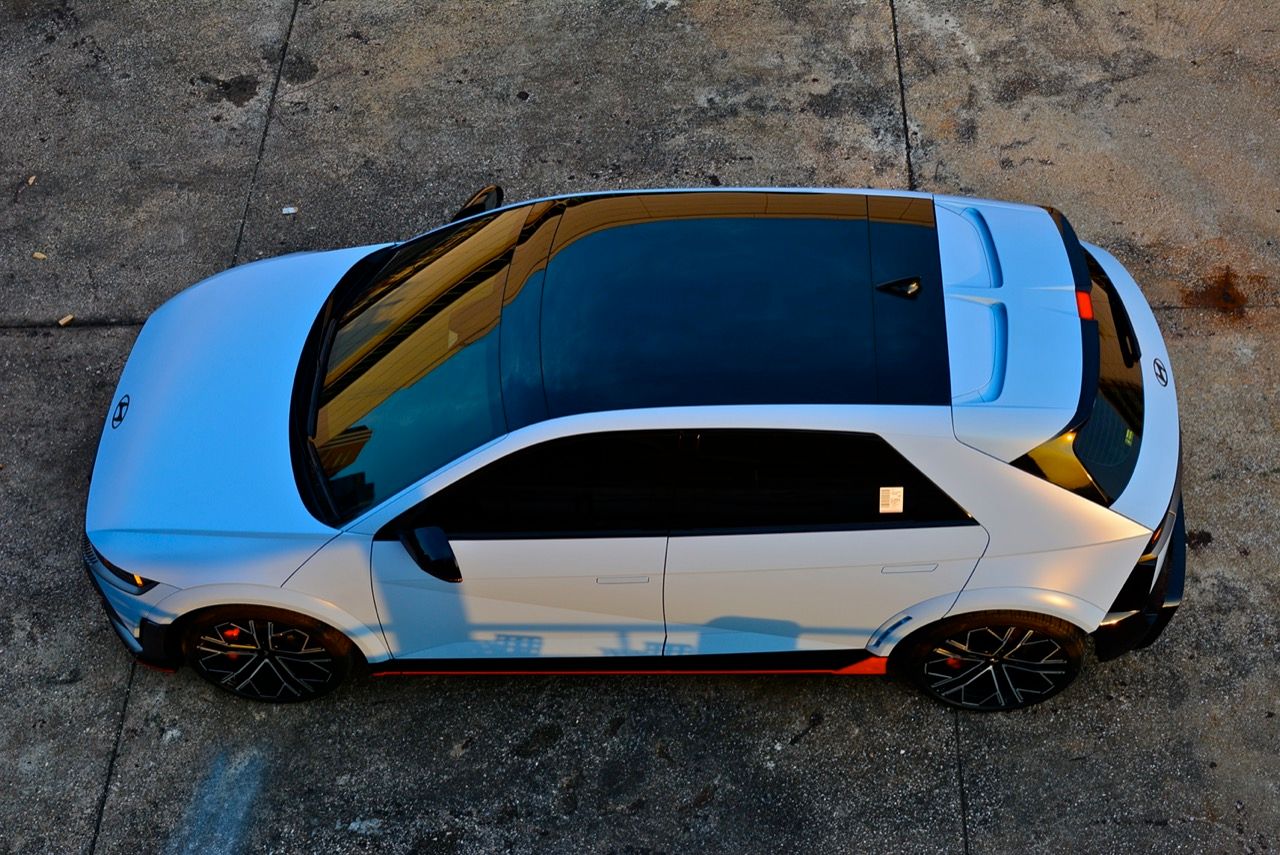 แผนก N ของ Hyundai เหมือนกับ BMW M / Mercedes-AMG / Audi Sport / Nissan Nismo / Toyota GR Sport แนวคิดในการนำ Ioniq 5 รถยนต์ EV ขับเคลื่อนสี่ล้อรูปทรงแฮตช์แบ็กมาปรับแต่งใหม่ ใส่พลังงานให้กับมอเตอร์ขับเคลื่อนที่สามารถสร้างเรี่ยวแรงได้มากกว่า 600 แรงม้า ปุ่มโหมด N Grin Boost บนพวงมาลัยสำหรับการระเบิดพลังงานอย่างต่อเนื่อง นาน 10 วินาที มีฟังก์ชั่นควบคุมการออกตัว 0-100 กิโลเมตรต่อชั่วโมงใน 3.4 วินาที นั่นคือตัวเลขการเร่งความเร็วของ Ferrari 458 ด้วยอัตราเร่งขนาดนั้นทำให้ Ioniq 5 N ออกตัวและทิ้ง Honda Prelude รุ่นใหม่ ราคาสามล้านแบบไม่เห็นฝุ่น ความเร็วสูงสุดของ Ioniq 5 N อยู่ที่ 260 กิโลเมตรต่อชั่วโมง ทำให้เป็นรถยนต์ไฟฟ้าที่มีความเร็วปลายจัดจ้านติดอันดับโลก การเร่งความเร็วเป็นแนวตรง ควบคุมได้ง่ายด้วยซอฟแวร์กระจายแรงบิดที่สามารถปรับเฉลี่ยแรงบิดว่าจะให้เท่ากันทั้งหน้าและหลัง หรือเทไปหลัง 100% เพื่อสาดท้ายเล่นก็ได้ เพียงแค่ใช้นิ้วรูด ระบบเฉลี่ยแรงบิดใน Ioniq 5 N ก็จะทำงานตามต้องการ แรงบิด 700 นิวตันเมตรที่เทลงล้อหลังเต็มเหนี่ยวอาจทำให้ยางแหกเอาง่ายๆ ไม่เชื่อก็ไปถามอู๋สปิน 9 ได้เลย