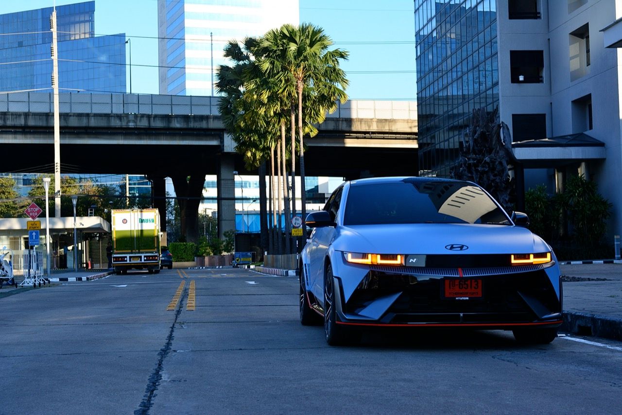 ด้วยเทคโนโลยีทั้งหมดที่บรรจุอยู่ใน Ioniq 5 N คนขับจะสัมผัสได้อย่างชัดเจนว่า 5 N นั้นเป็น EV ระดับบนที่แรงมุทะลุดุดัน แรงบิด 740 นิวตันเมตร อย่างฉับพลันทันทีปราศจากอาการรอรอบ ทำให้รถพุ่งออกตัวราวกับลูกธูน น้ำหนัก 2.2 ตันไม่สร้างปัญหาเมื่อเลี้ยวเร็วๆในโค้งมุมแคบ การปรับแต่งระบบกันสะเทือน และการกระจายกำลังอย่างชาญฉลาด ทำให้รถ Ioniq 5 N ยังคงควบคุมได้ดีแม้จะใส่มาแรง ในโหมดขับเคลื่อนสี่ล้อ N ไฟฟ้าเกาะหนึบ ไม่มีเสียอาการเมื่อถูกอัดจนใกล้ถึงขีดจำกัด ไม่มีการสูญเสียกำลังใดๆ เป็นเรื่องยากที่จะประเมินความสามารถที่แท้จริงของ Ioniq 5 N บนถนนสาธารณะ ในความเป็นจริง ถ้าอยากจะสนุกอย่างเต็มที่ สนามแข่งมาตรฐานที่มีรันออฟเยอะๆ อย่างสนามช้าง ดูจะเหมาะสมกับการทำความเร็วของ Ioniq 5 N มากกว่า