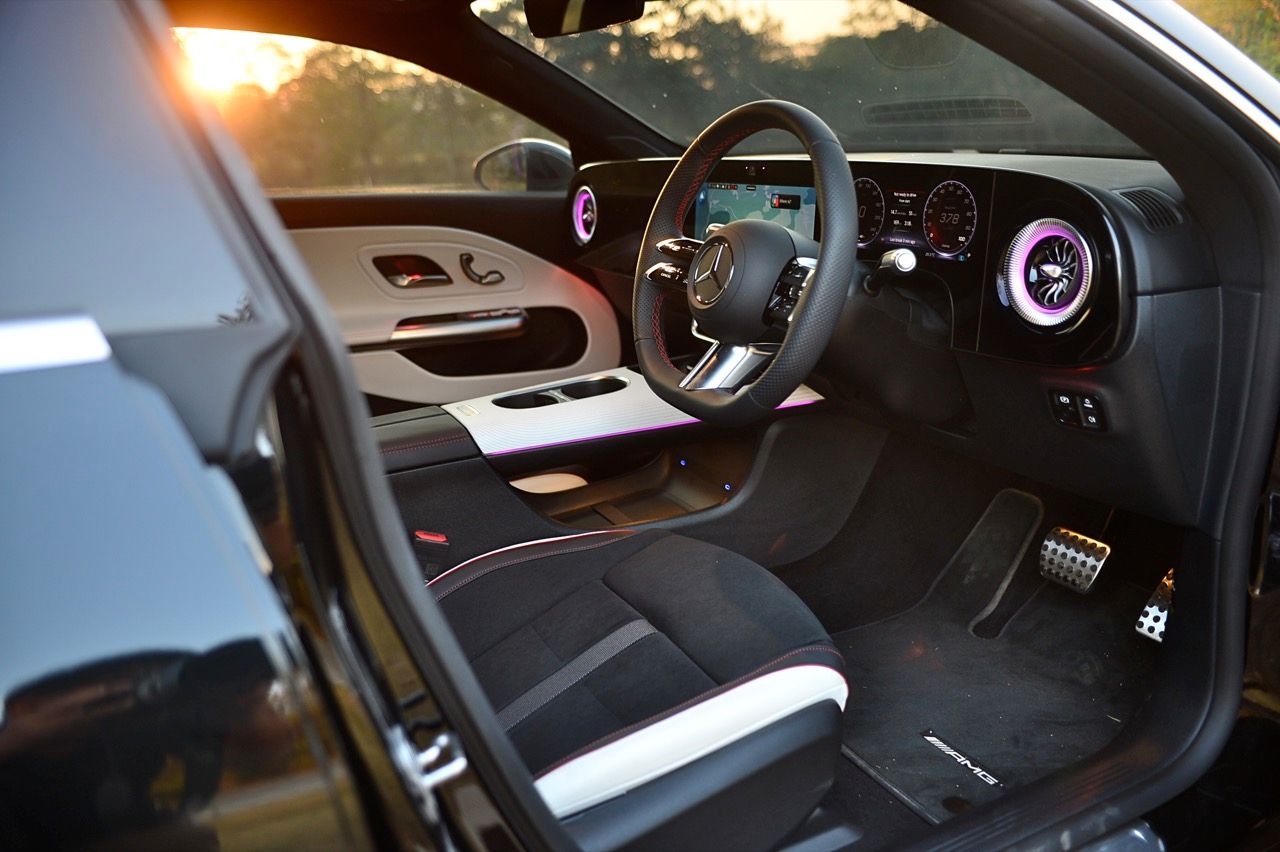 CLA มาพร้อมกับหน้าจอ Superscreen ของ Mercedes-Benz ซึ่งครอบคลุมความกว้างของแดชบอร์ดเกือบทั้งหมด นอกจากจอภาพมาตรวัดของผู้ขับ ขนาด 10.3 นิ้วแล้ว ยังมีหน้าจออินโฟเทนเมนต์ขนาด 14.0 นิ้ว และหน้าจอเสริมขนาด 14.0 นิ้วอีกจอหนึ่งสำหรับผู้โดยสารตอนหน้าเอาไว้ดูหนังฟังเพลง ในตำแหน่งผู้ขับขี่ คนขับจะมองเห็นหน้าจอสำหรับผู้โดยสารได้เฉพาะเมื่อรถหยุดนิ่งเท่านั้น หากผู้ขับพยายามรับชมหน้าจอสำหรับผู้โดยสาร ภาพจะหายไปทั้งสองจอเพื่อความปลอดภัยขณะขับเคลื่อน อุปกรณ์ไฮเอนด์และอุปกรณ์มาตรฐานเพิ่มขึ้นหลายจุด หนึ่งในนั้นคือกระจกหลังที่เลื่อนลงได้เพียงครึ่งเดียว Mercedes-Benz แจ้งว่า การติดตั้งช่องระบายอากาศในแถวที่สองทำให้แทบจะไม่สามารถเลื่อนกระจกบานประตูหลังลงได้ กลไกมอเตอร์ของกระจกจะกินพื้นที่บริเวณไหล่ ผู้โดยสารด้านหลังมีช่องเสียบ USB แต่ไม่มีหน้าจอ มีพื้นที่วางขาและเหนือศีรษะกว้างมากพอและเหมาะสมกับขนาดของรถ พื้นที่เก็บสัมภาระส่วนท้ายรถใหญ่ใช้ได้ จุกระเป๋าเดินทางได้สองใบ ส่วนฝากระโปรงหน้ามีพื้นที่เก็บสัมภาระให้ใช้งานเล็กน้อย