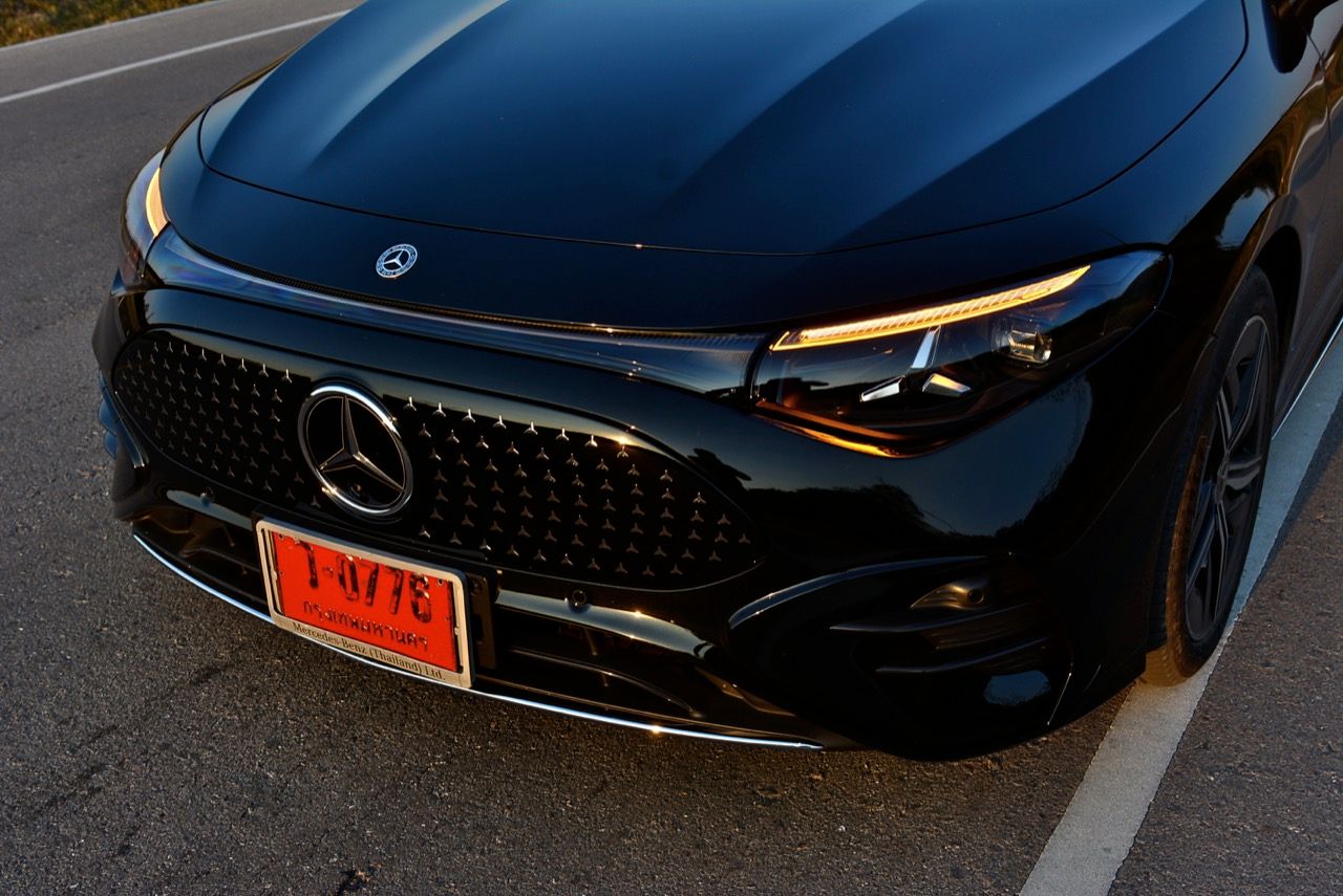 ตัวถังของ CLA โค้งมนขึ้น เป็นจุดประสงค์หลักของการออกแบบยานยนต์ไฟฟ้ารุ่นใหม่ที่ต้องลู่ลมมากเป็นพิเศษ Mercedes-Benz นำเสนอการเปลี่ยนแปลงจากโมเดลที่สอง ไปสู่โมเดลที่สามโดยไม่ทำให้กลุ่มคนหัวอนุรักษ์นิยมแบบผมรู้สึกหวาดกลัวเหมือนหน้าตาของ BMW บางรุ่น รถซีดานขนาดกลางสี่ประตูคันนี้ ดูดีและมีสัดส่วนลงตัว ดวงดาวเล็กๆ ประดับอยู่บนกระจังหน้า และส่องแสงเป็นประกายแวววาวในตอนกลางคืน มองดูให้ดีๆ จะเห็นดาวกระจายตัวอยู่ทุกที่บนกระจัง ไฟหน้า LED Adaptive Highbeam Assist Plus มีไฟ Daytime รูปดาว ไฟท้ายก็เป็นรูปดาว ลืมบอกไปว่า กระจังหน้าของ CLA ไฟฟ้า มีดาว 142 ดวง ทำให้เจ้าของรถรู้สึกเหมือนอยู่ในดูไบยามค่ำคืน....