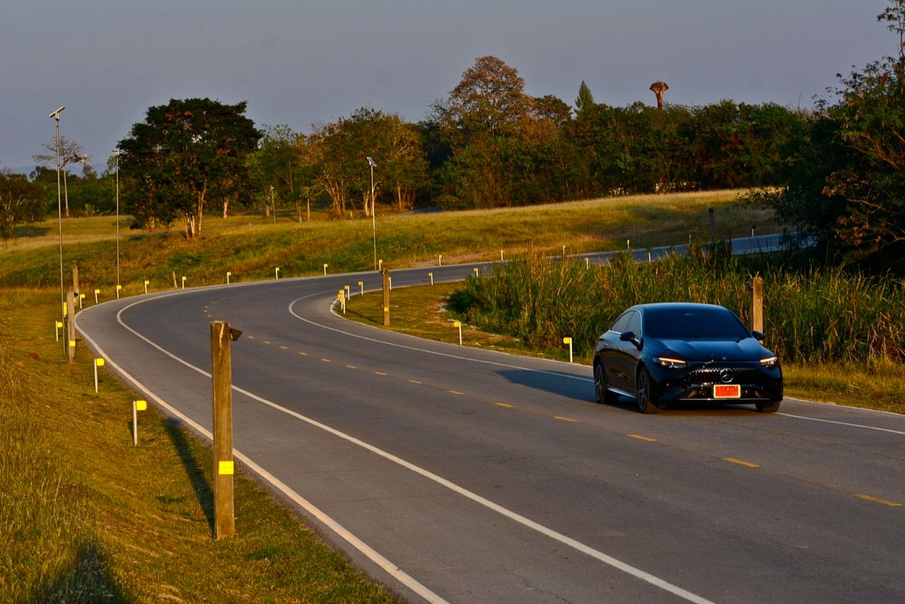 การขับขี่ทางไกลบนทางหลวงชนบทจากหมูสีไปยังวังน้ำเขียวนั้นยอดเยี่ยม ลดความเครียดด้วยการควบคุมที่ค่อนข้างผ่อนคลายแบบเงียบและชาญฉลาด พร้อมฟังก์ชั่นการใช้งานที่ล้ำจนต้องใช้เวลาศึกษาการทำงาน ระบบเหล่านี้ออกแบบมาเพื่อให้คุณรู้สึกสบายและตื่นตัว รถเบนท์ลีย์ก็ทำแบบนี้เหมือนกัน แต่ส่วนใหญ่แล้วจะเป็นเพื่อผู้โดยสารด้านหลัง พร้อมราคาที่สูงกว่าถึงสิบเท่า CLA เงียบ ขับขี่ได้ดี และทรงตัวได้อย่างมั่นคงในโค้ง มอเตอร์ที่ติดตั้งด้านหลังของ CLA 250+ ทำให้รู้สึกเหมือนเป็นรถขับเคลื่อนล้อหลัง ซึ่งไม่ใช่เรื่องปกติในรถระดับนี้ มันมีความโดดเด่นมากกว่าคู่แข่งที่ขับเคลื่อนล้อหน้า ซึ่งดูสมเหตุสมผลมากกว่า และเกือบจะสนุกเท่ากับ MINI JCW Electric