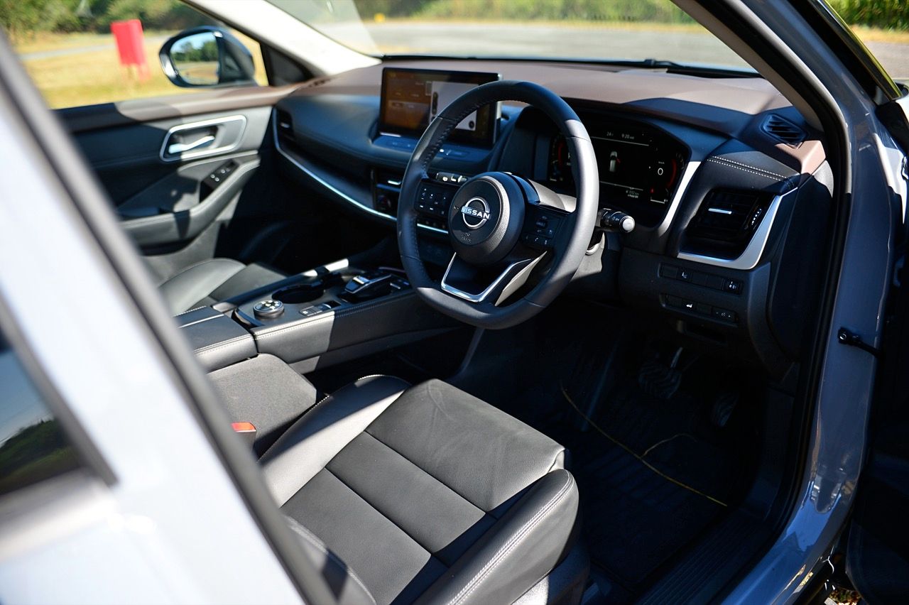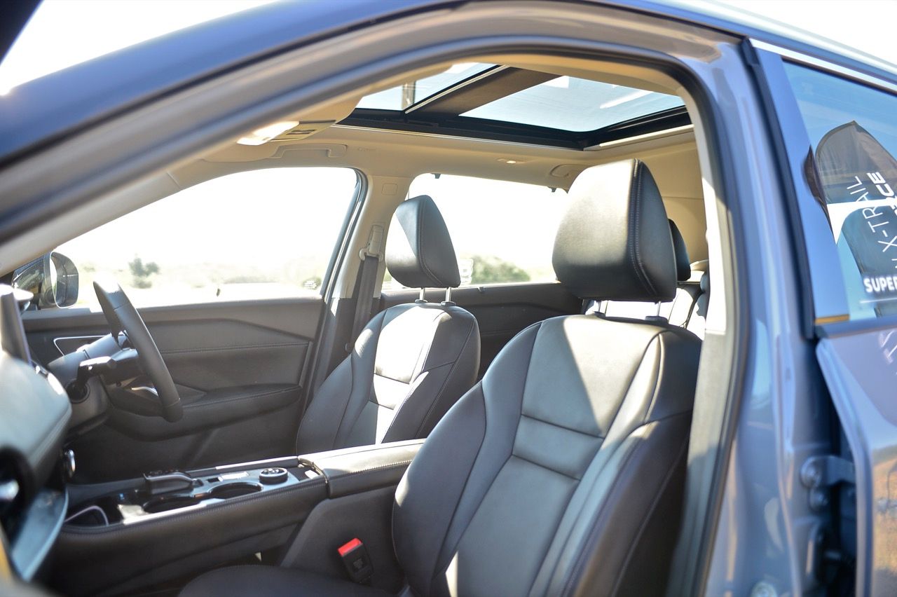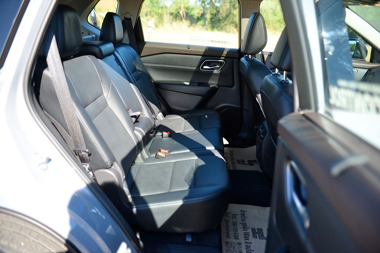 ในความเป็นจริง X-Trail ไม่ควรถูกมองว่าเป็นรถเจ็ดที่นั่ง แต่เป็นรถห้าที่นั่งมากกว่า โดยมีเบาะเสริมอีกสองตัวในบริเวณส่วนท้าย หากจะนั่งโดยสาร ต้องเลื่อนเบาะแถวกลางไปข้างหน้าพอสมควร เพื่อเปิดพื้นที่วางขาสำหรับเบาะแถวที่สาม ระบบปรับอากาศแบบสามโซนพร้อมการควบคุมอุณหภูมิอิสระ ม่านบังแดดที่ประตูหลังแบบในตัว พื้นที่เก็บสัมภาระท้าย 575 ลิตร เป็นหนึ่งในรถที่มีพื้นที่เก็บสัมภาระมากสุดในประเภทเดียวกัน ระบบจัดเก็บสัมภาระ Divide-n-Hide เพิ่มความอเนกประสงค์ ด้วยเบาะหลังแบบพับได้และฝาท้ายไฟฟ้า หลังคาซันรูฟพาโนรามา จอสัมผัสขนาด 12.3 นิ้ว พร้อมระบบนำทาง จอแสดงผล HUD บนกระจกหน้ารถขนาด 10.8 นิ้ว ระบบชาร์จโทรศัพท์ไร้สาย เชื่อมต่อ Apple CarPlay แบบไร้สาย จอภาพมาตรวัดดิจิทัล TFT ขนาด 12.3 นิ้ว ปรับการแสดงผลได้สองแบบ