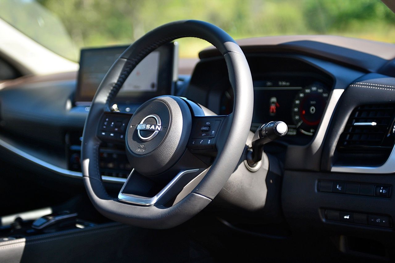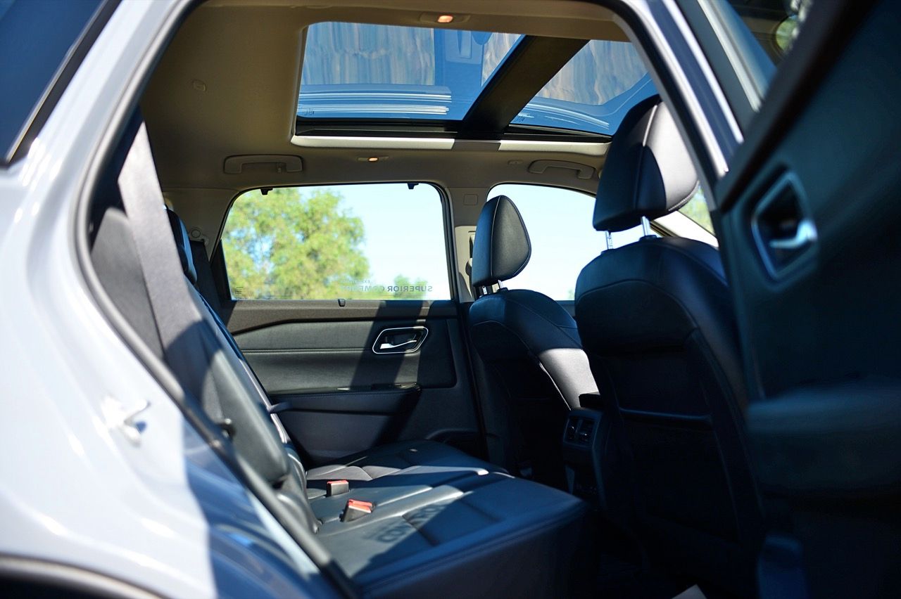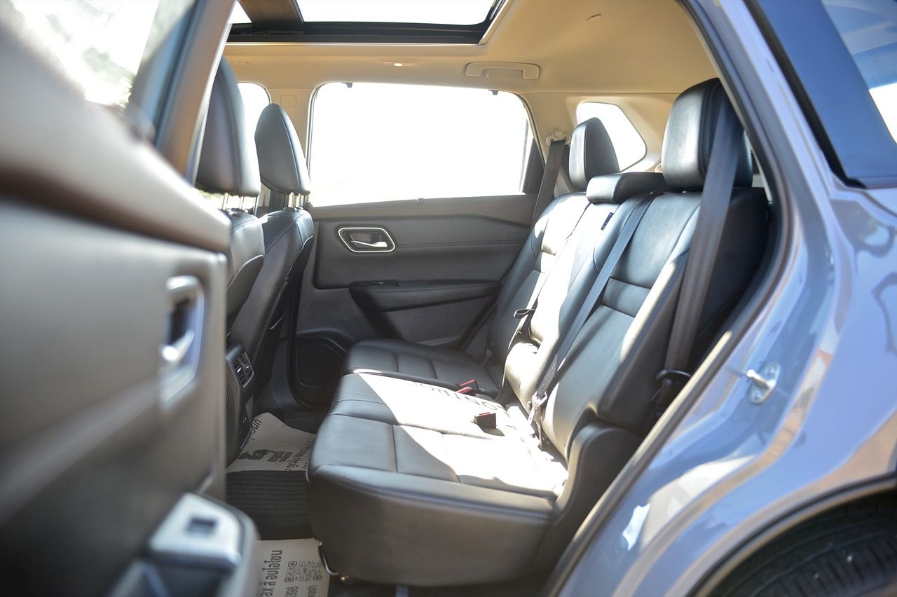 ในความเป็นจริง X-Trail ไม่ควรถูกมองว่าเป็นรถเจ็ดที่นั่ง แต่เป็นรถห้าที่นั่งมากกว่า โดยมีเบาะเสริมอีกสองตัวในบริเวณส่วนท้าย หากจะนั่งโดยสาร ต้องเลื่อนเบาะแถวกลางไปข้างหน้าพอสมควร เพื่อเปิดพื้นที่วางขาสำหรับเบาะแถวที่สาม ระบบปรับอากาศแบบสามโซนพร้อมการควบคุมอุณหภูมิอิสระ ม่านบังแดดที่ประตูหลังแบบในตัว พื้นที่เก็บสัมภาระท้าย 575 ลิตร เป็นหนึ่งในรถที่มีพื้นที่เก็บสัมภาระมากสุดในประเภทเดียวกัน ระบบจัดเก็บสัมภาระ Divide-n-Hide เพิ่มความอเนกประสงค์ ด้วยเบาะหลังแบบพับได้และฝาท้ายไฟฟ้า หลังคาซันรูฟพาโนรามา จอสัมผัสขนาด 12.3 นิ้ว พร้อมระบบนำทาง จอแสดงผล HUD บนกระจกหน้ารถขนาด 10.8 นิ้ว ระบบชาร์จโทรศัพท์ไร้สาย เชื่อมต่อ Apple CarPlay แบบไร้สาย จอภาพมาตรวัดดิจิทัล TFT ขนาด 12.3 นิ้ว ปรับการแสดงผลได้สองแบบ